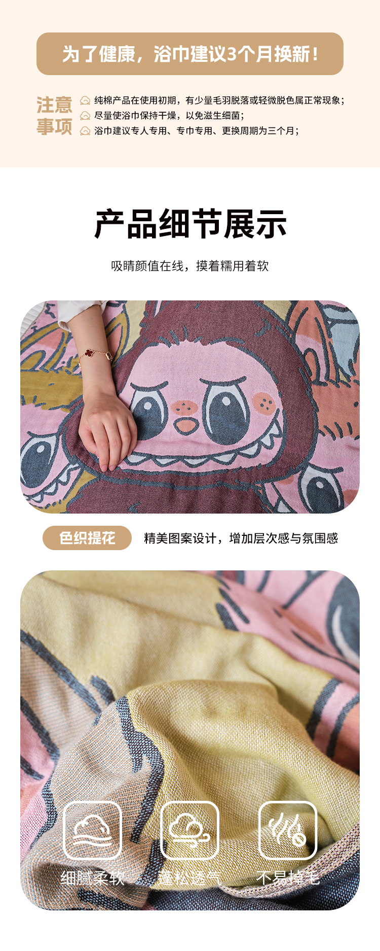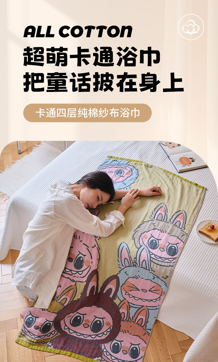 当前位置: 91家纺网 > 商品网购 > 居家日用 > 毛巾/浴巾/浴袍 > 浴巾 > 沐瑟家纺 2025新款卡通A类全棉四层纱布浴巾加大毛巾-第四组 兔兔家族 150*75cm
