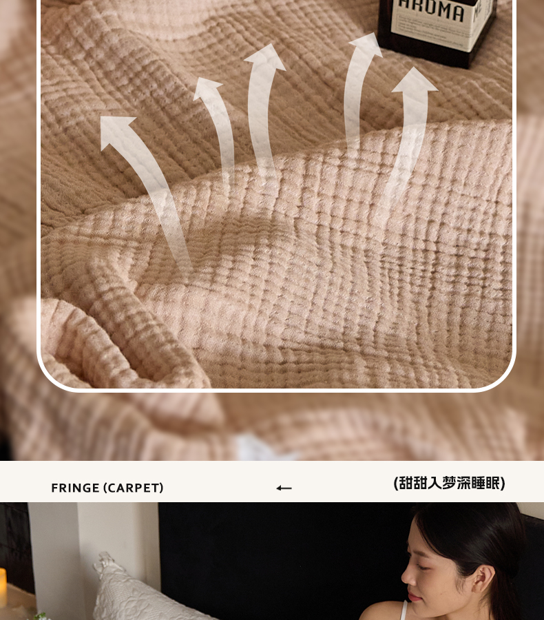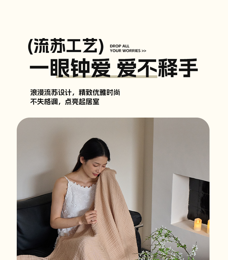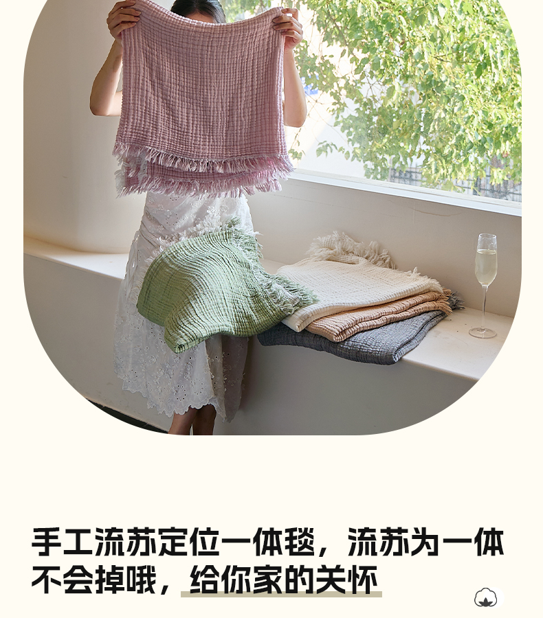 沐瑟家纺 2025新款四层全棉纱布流苏毯系列-浪漫 浪漫-焦糖色