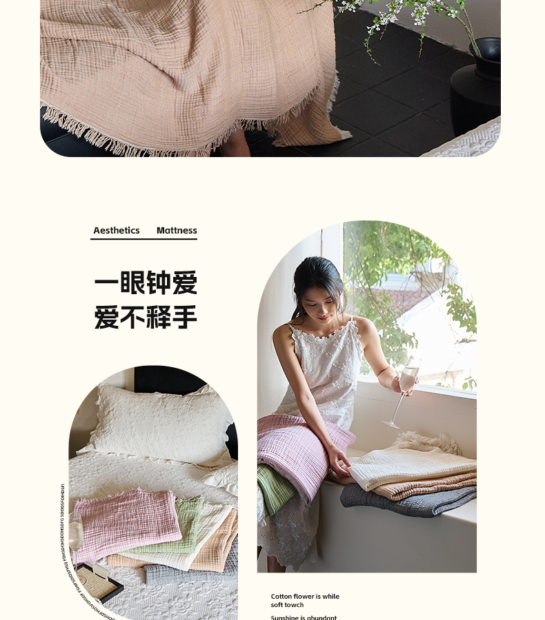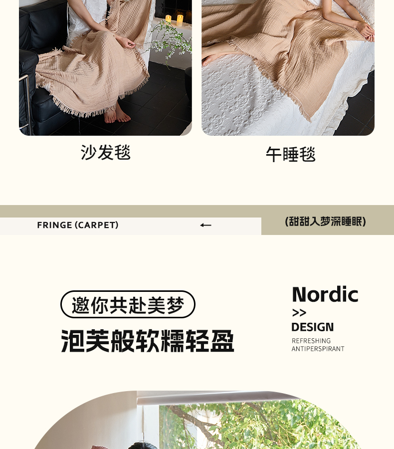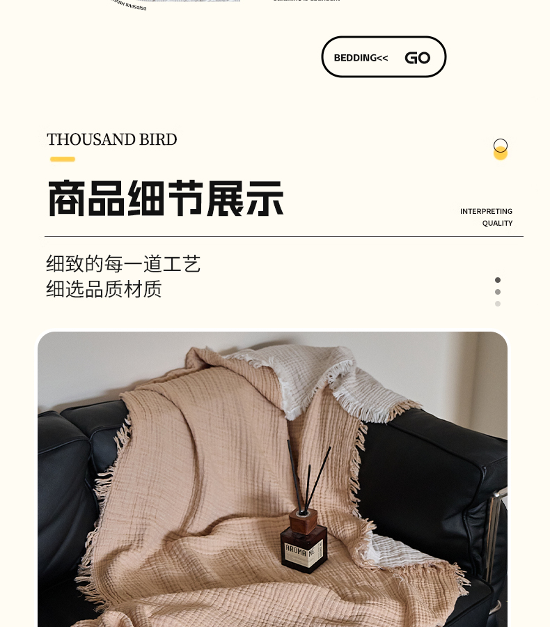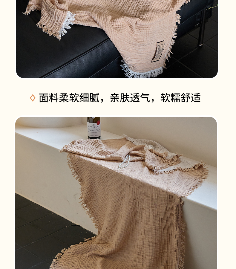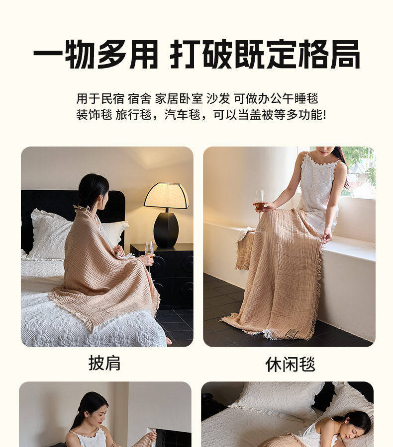 (总)沐瑟家纺 2025新款简约风多功能纱布盖毯纱布毯子毛巾被床盖沙发巾单毯枕巾枕套三件套,H本色,H橙色,H咖色,大马士革本色