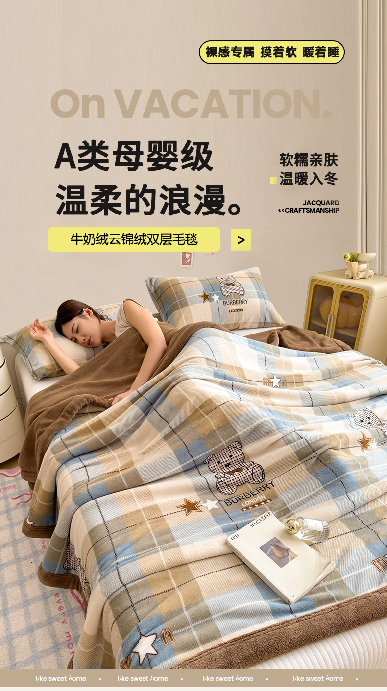 当前位置: 91家纺网 > 商品网购 > 毛毯休闲毯绒毯 > 毛毯 > 慕木家纺 2025新款高克重印花牛奶绒云锦绒双层毛毯毛毯毯子(可供跨境提供买家秀) 双层毛毯-绿格熊+咖