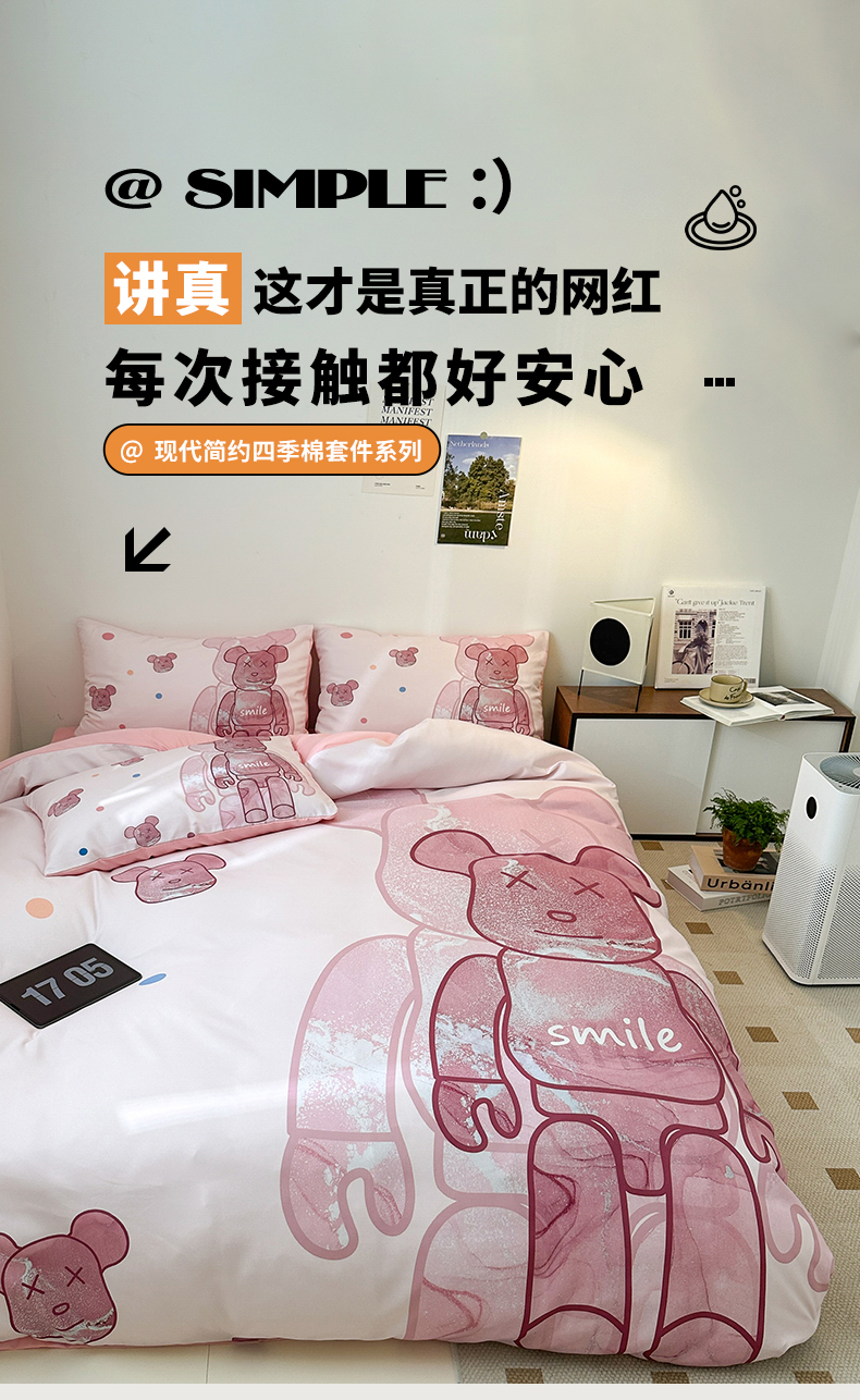 (总)色鬼布艺高端家居主号 2025新款现代简约网红款四季棉四件套,电击熊,多巴胺,黑白迪,机器熊,咔芬,流沙,萌迪,萌熊队长,七彩熊,棋盘格公仔,太阳花粉,涂鸦熊,星空,熊头白,熊仔白,熊仔桔,熊仔咖