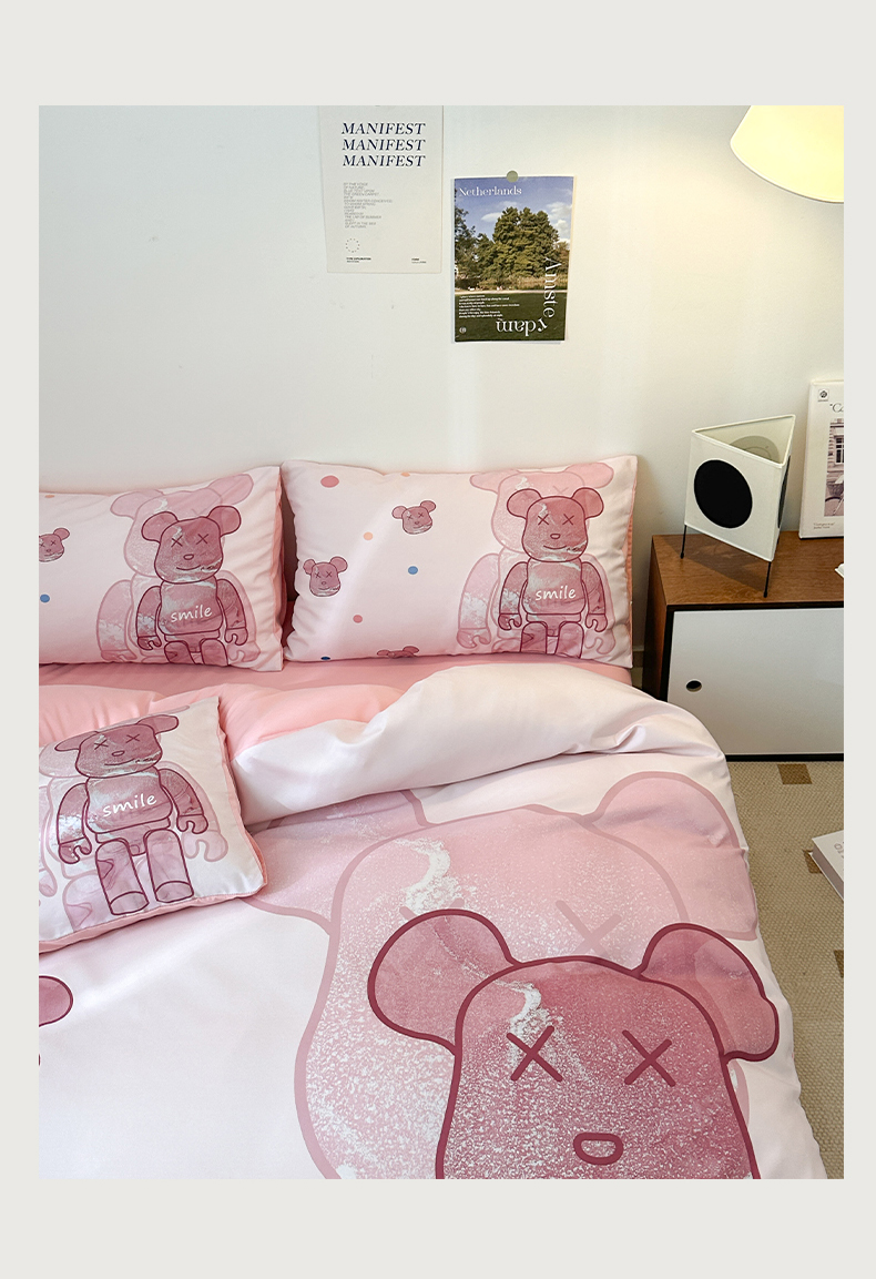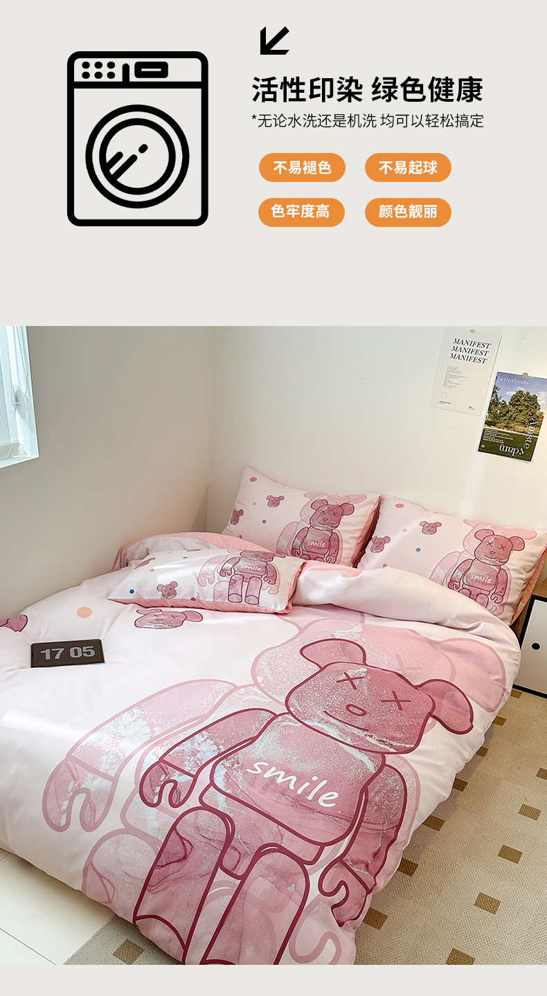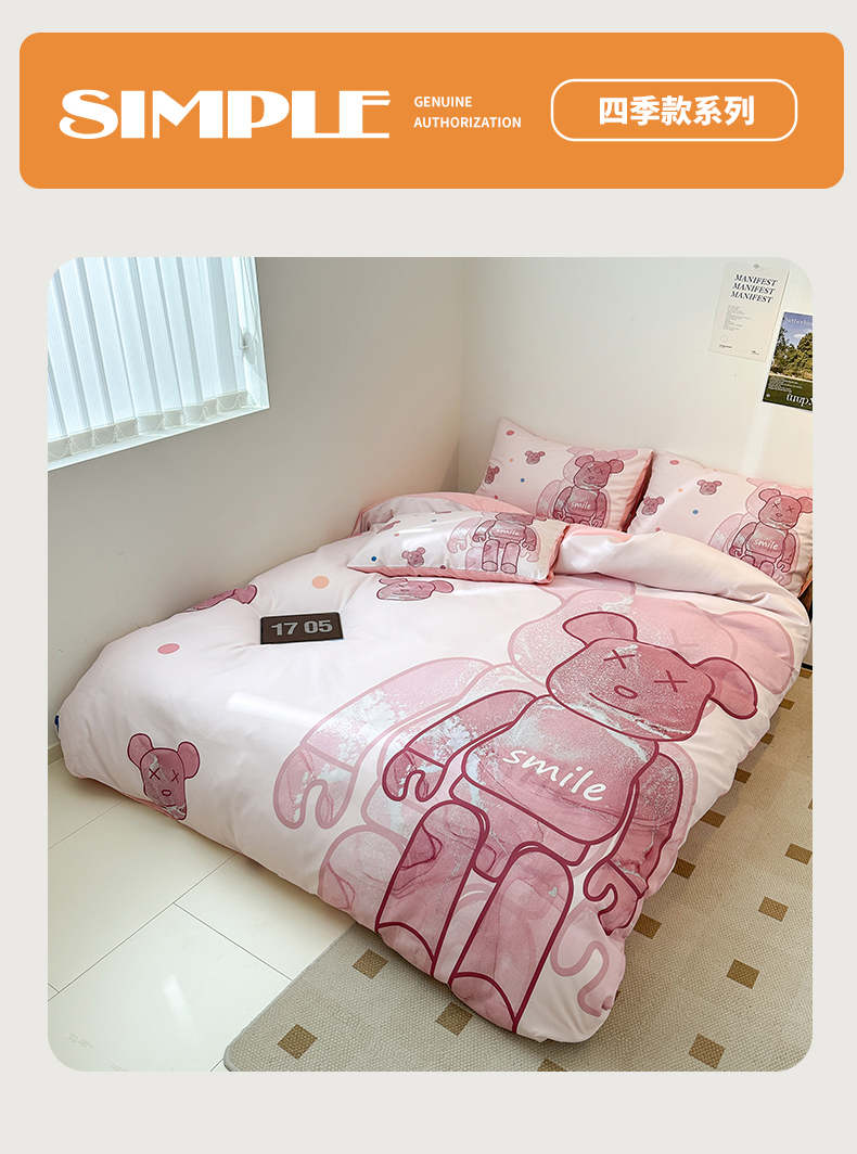 (总)色鬼布艺高端家居主号 2025秋冬新款网红款水洗棉四季款四件套,豹纹熊-粉,豹纹熊-绿,彩虹兔,格子熊,公仔蓝,梦幻粉,梦幻蓝,棋盘格公仔,太阳花粉,天使熊-粉,天使熊-咖,小熊头,熊头白,熊头橙,熊头咖,熊仔白