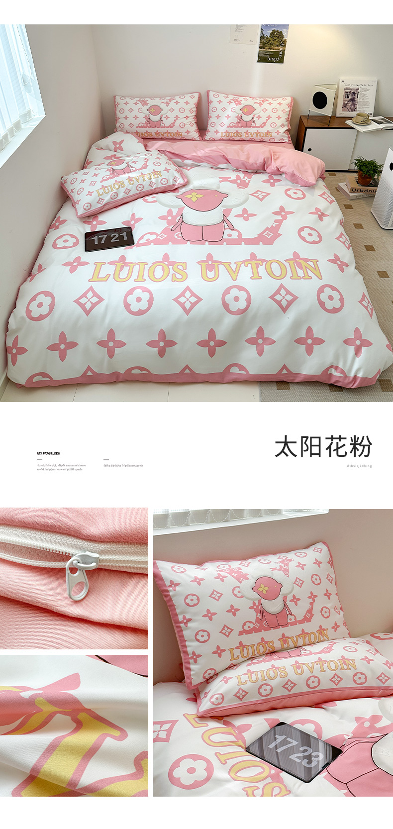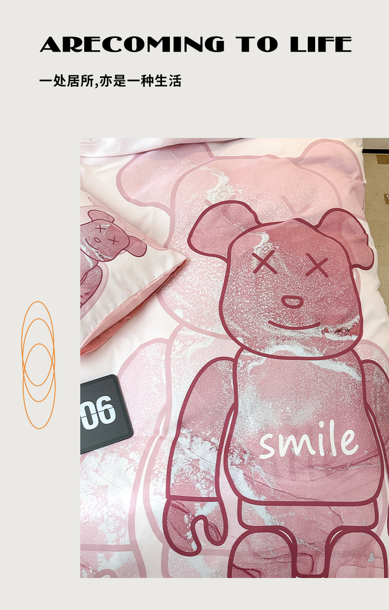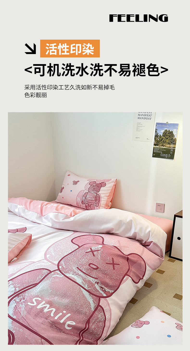 (总)色鬼布艺高端家居主号 2025秋冬新款网红款水洗棉四季款四件套,豹纹熊-粉,豹纹熊-绿,彩虹兔,格子熊,公仔蓝,梦幻粉,梦幻蓝,棋盘格公仔,太阳花粉,天使熊-粉,天使熊-咖,小熊头,熊头白,熊头橙,熊头咖,熊仔白
