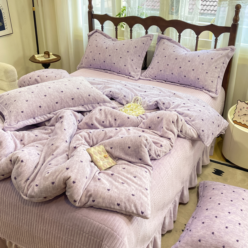 典曼家纺 2025新款亲肤舒适双面牛奶绒床盖款四件套 胭脂