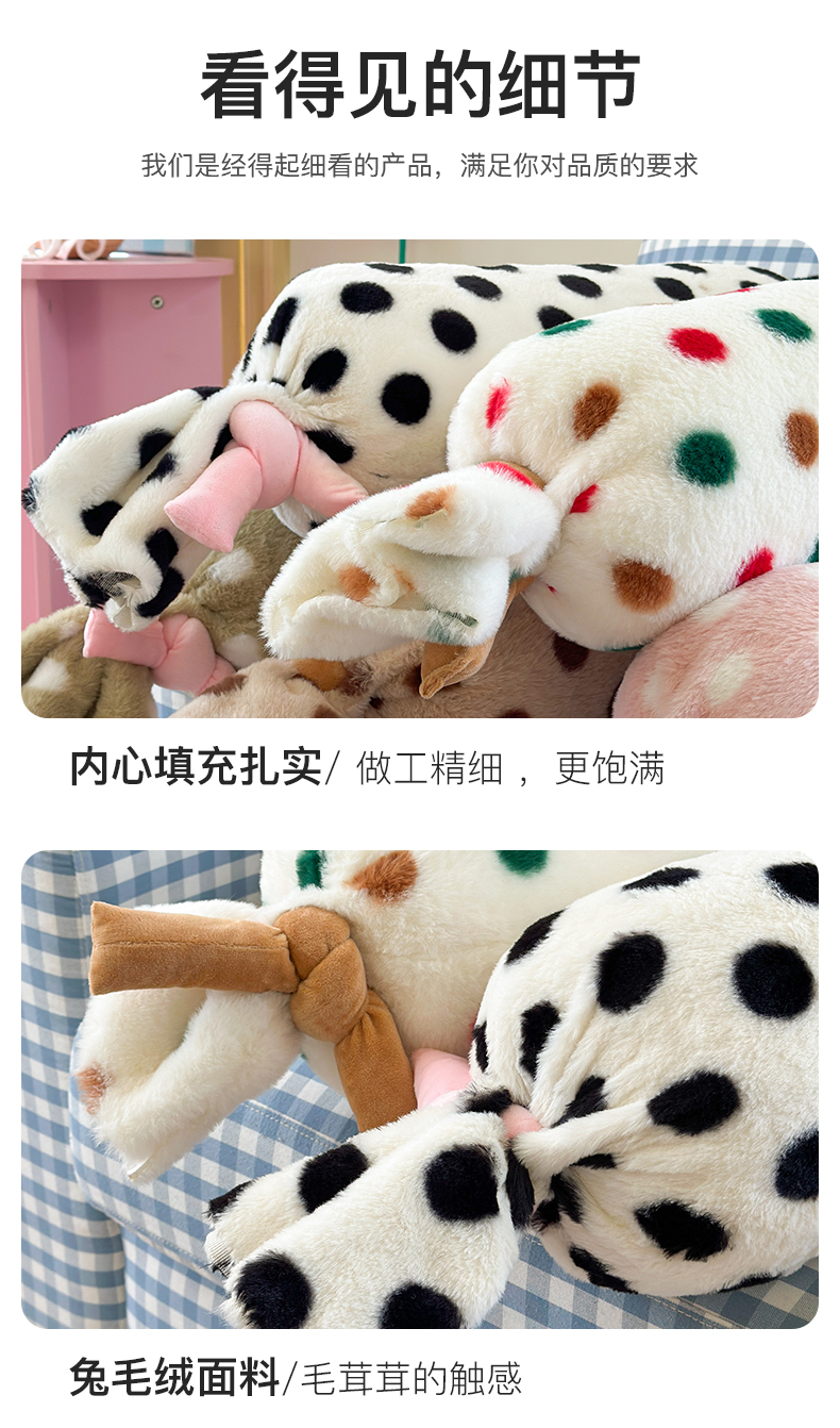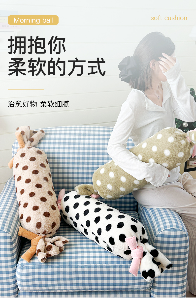 商品名称:美茉家居 2025新款波点兔毛绒糖果抱枕 黑白波点