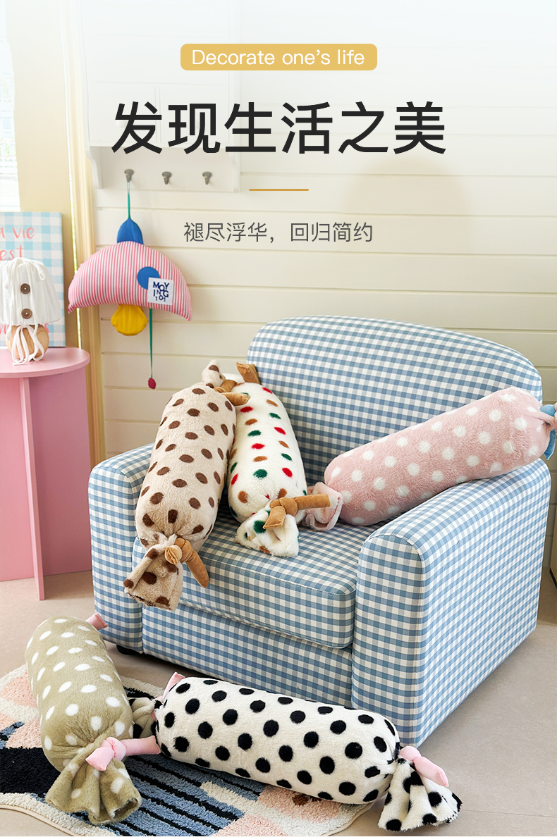 美茉家居 2025新款波点兔毛绒糖果抱枕 黑白波点