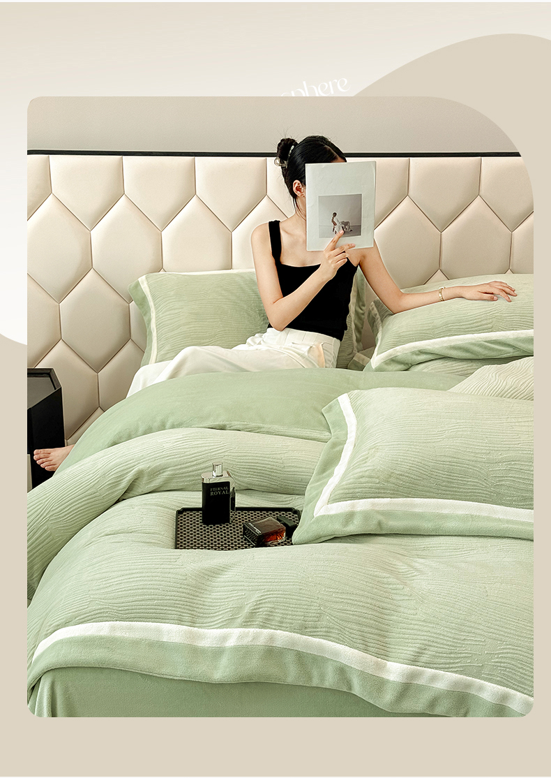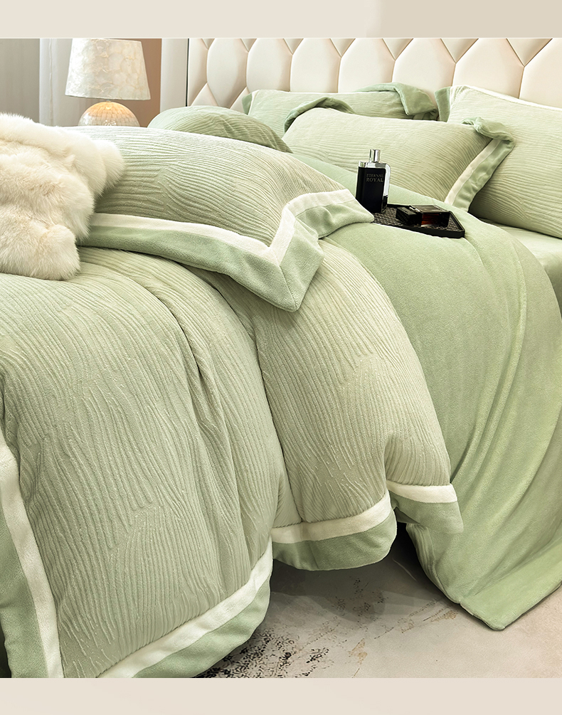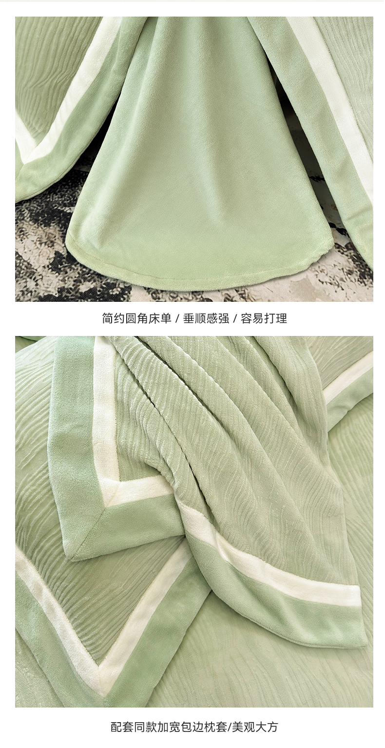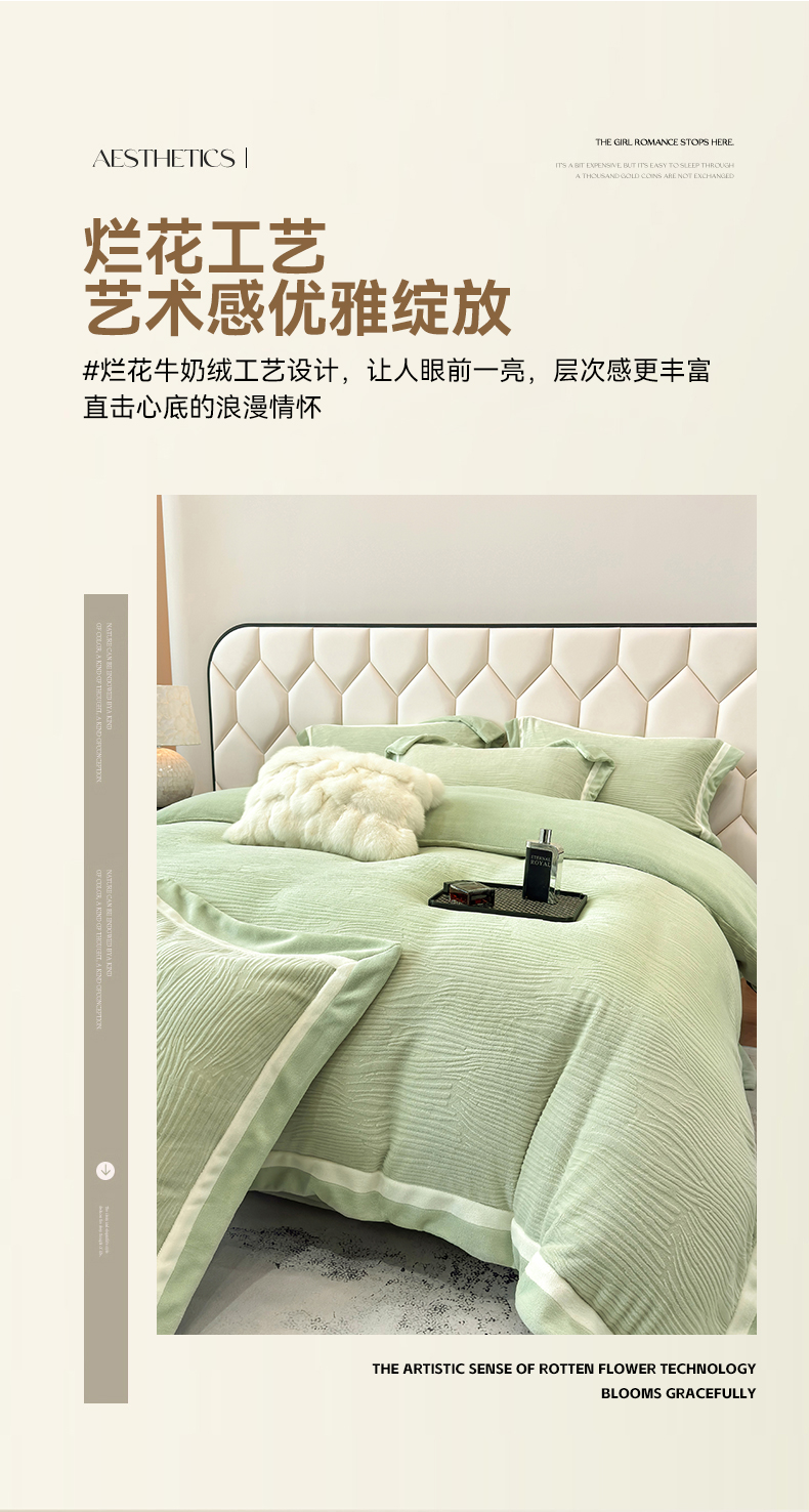 商品名称:家居1号家纺 2025新款230克全消光瑞丽牛奶绒烂花四件套(控价标准258加大278 会员优惠10元) 瑞丽-苹果绿