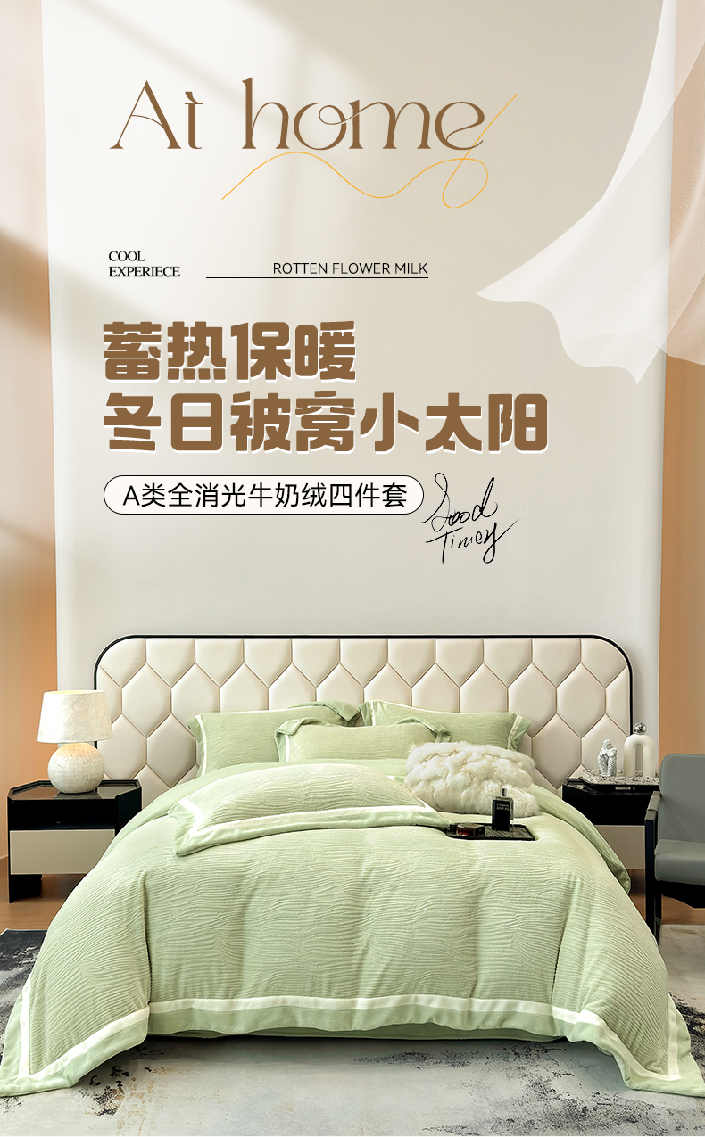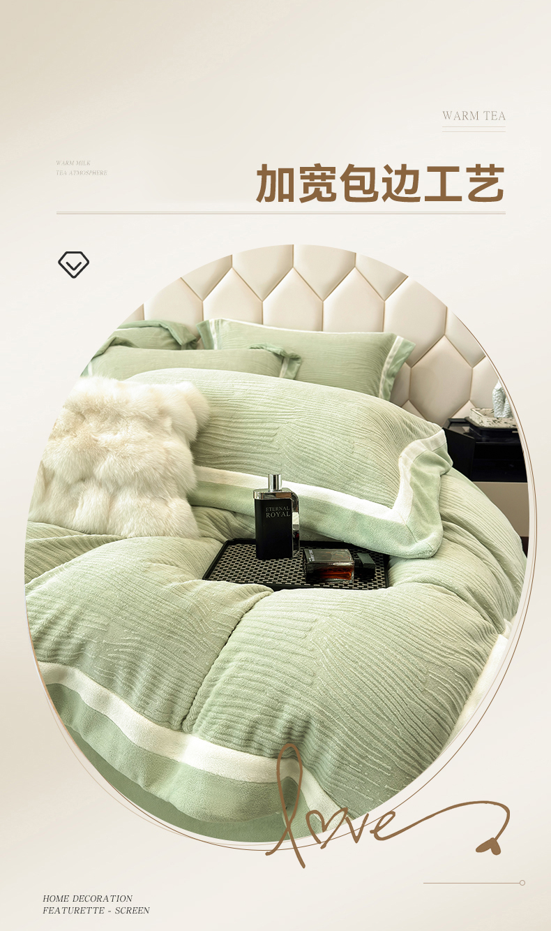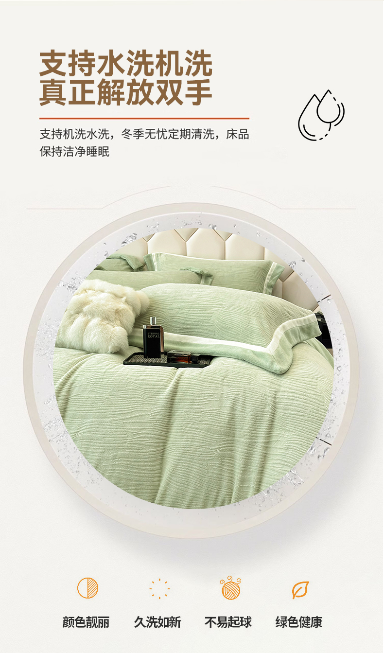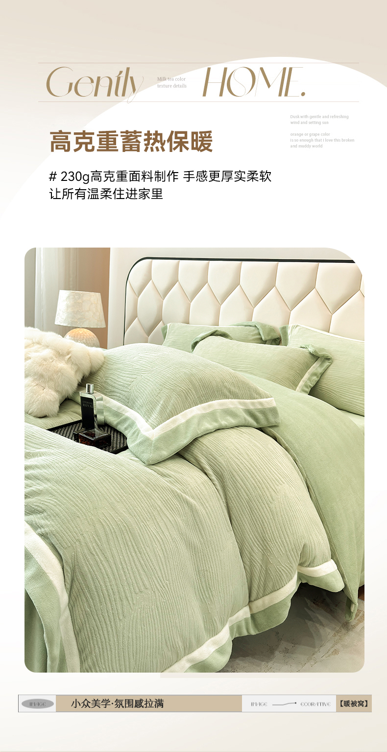 商品名称:家居1号家纺 2025新款230克全消光瑞丽牛奶绒烂花四件套(控价标准258加大278 会员优惠10元) 瑞丽-苹果绿