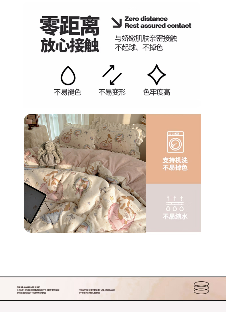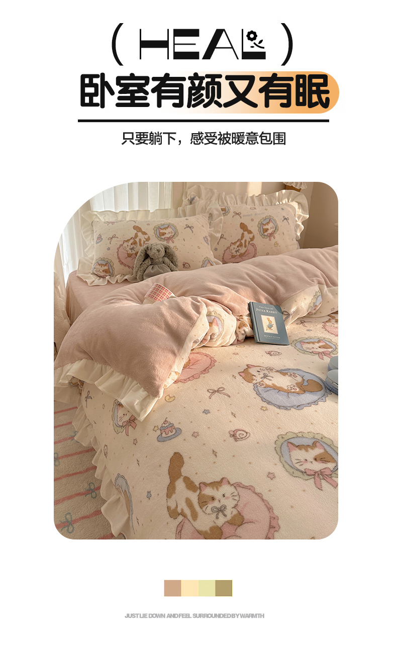 (总)萝莉家纺 2025秋冬新品韩版花边款加厚牛奶绒四件套,猫狗,花粉,花绿,可爱猫,甜品店,小肥猫,心心,熊熊