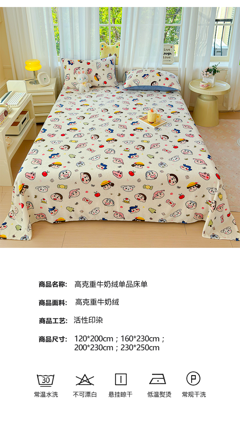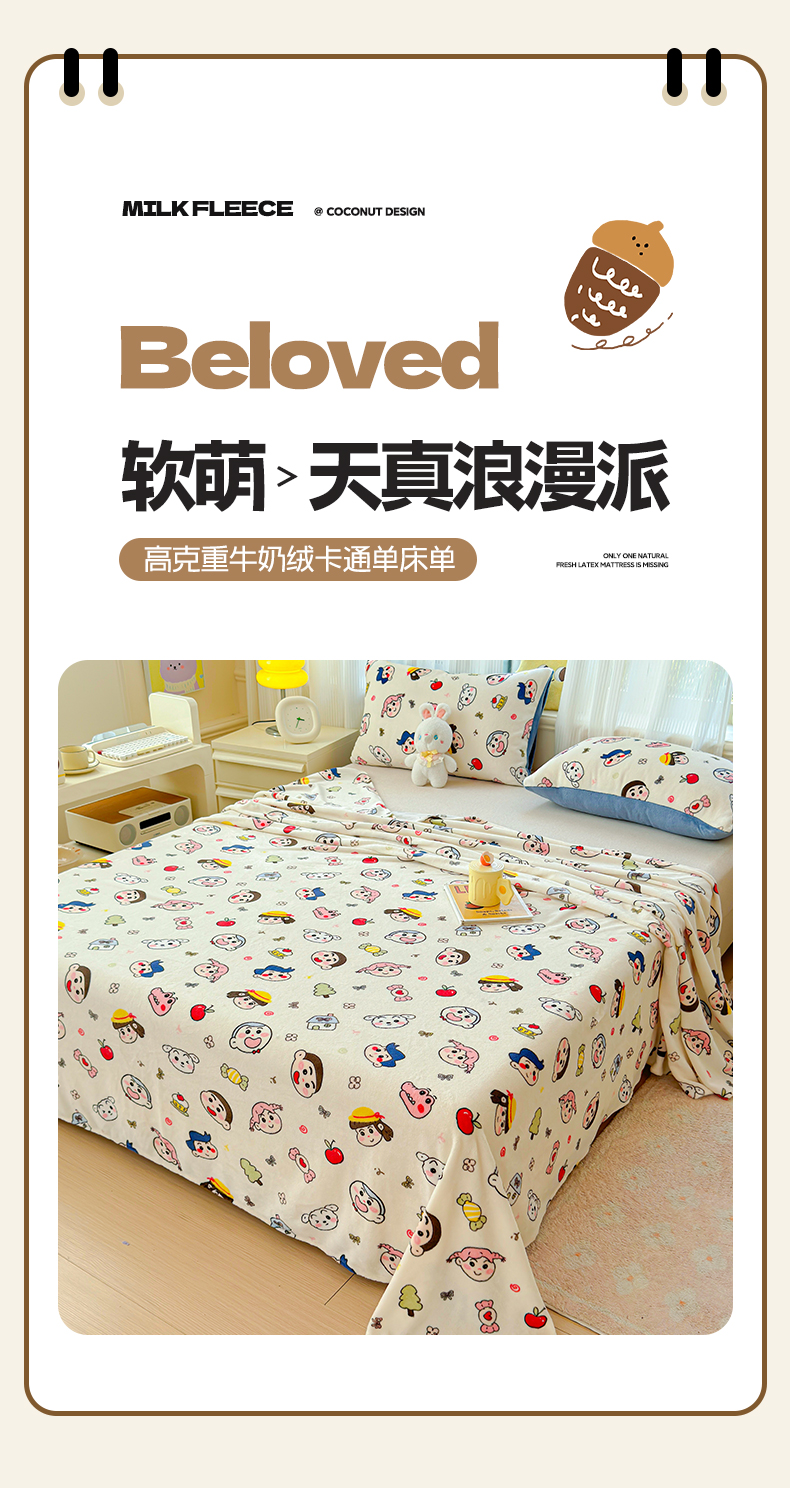 澜妃 2025新款高克重软软糯糯牛奶绒单床单CD系列(小红书推荐) CD-小小新