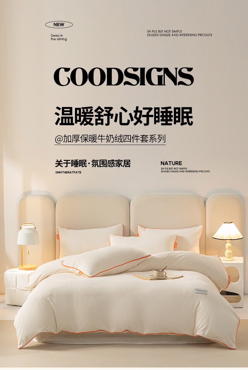 当前位置: 91家纺网 > 商品网购 > 床品套件 > 四件套 > 牛奶绒四件套 > 绒城 2025秋冬新款简约撞色边滚绳牛奶绒四件套-浅爱 浅爱-象牙白