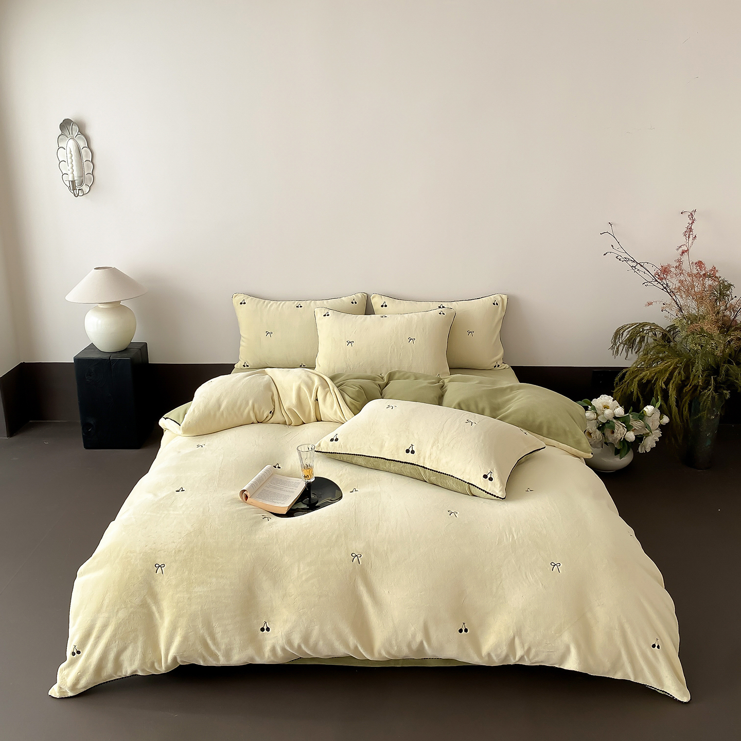 (总)时亿 2023新款加厚保暖獭兔绒四件套,抹茶绿,肉肉粉