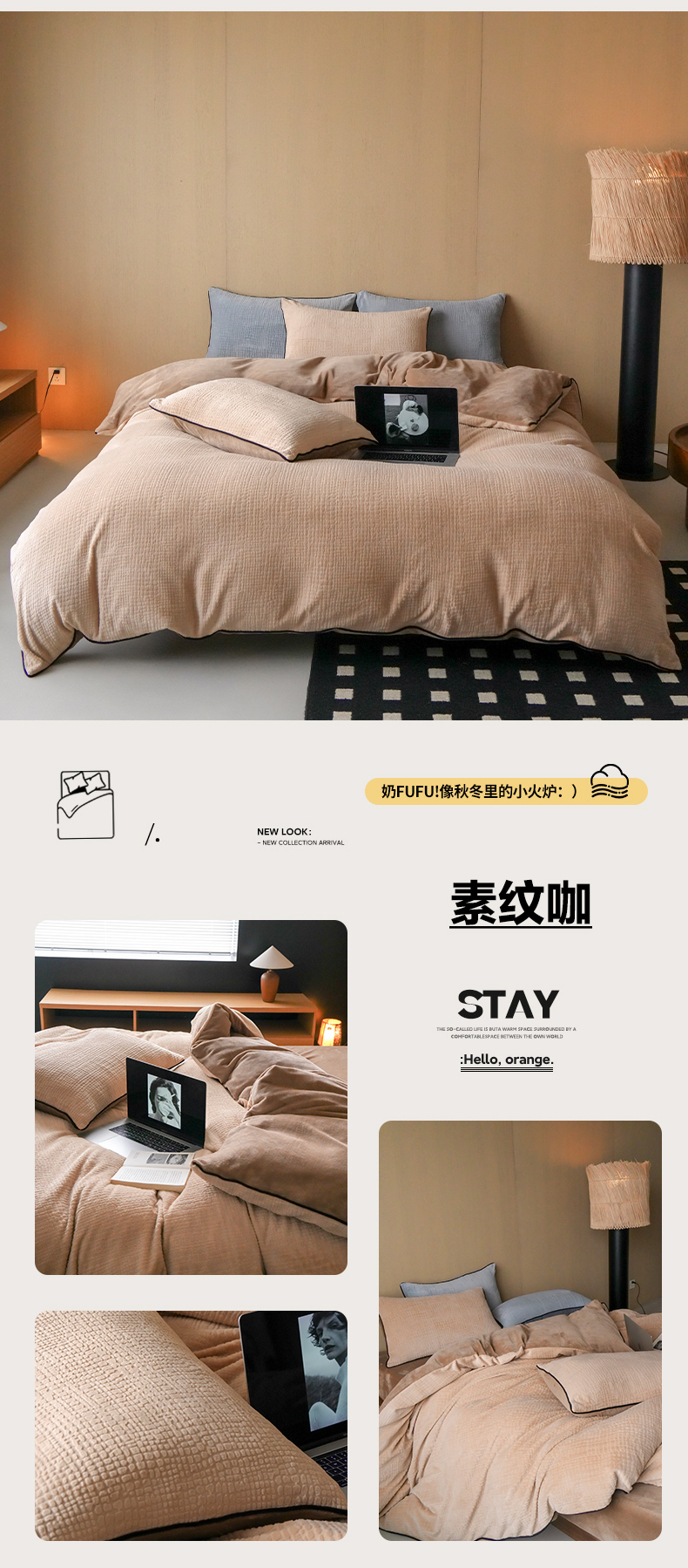 当前位置: 91家纺网 > 商品网购 > 床品套件 > 四件套 > 牛奶绒四件套 > (总)三味舒屋 2025新款230克高克重雕花牛奶绒麻绳款四件套-素纹