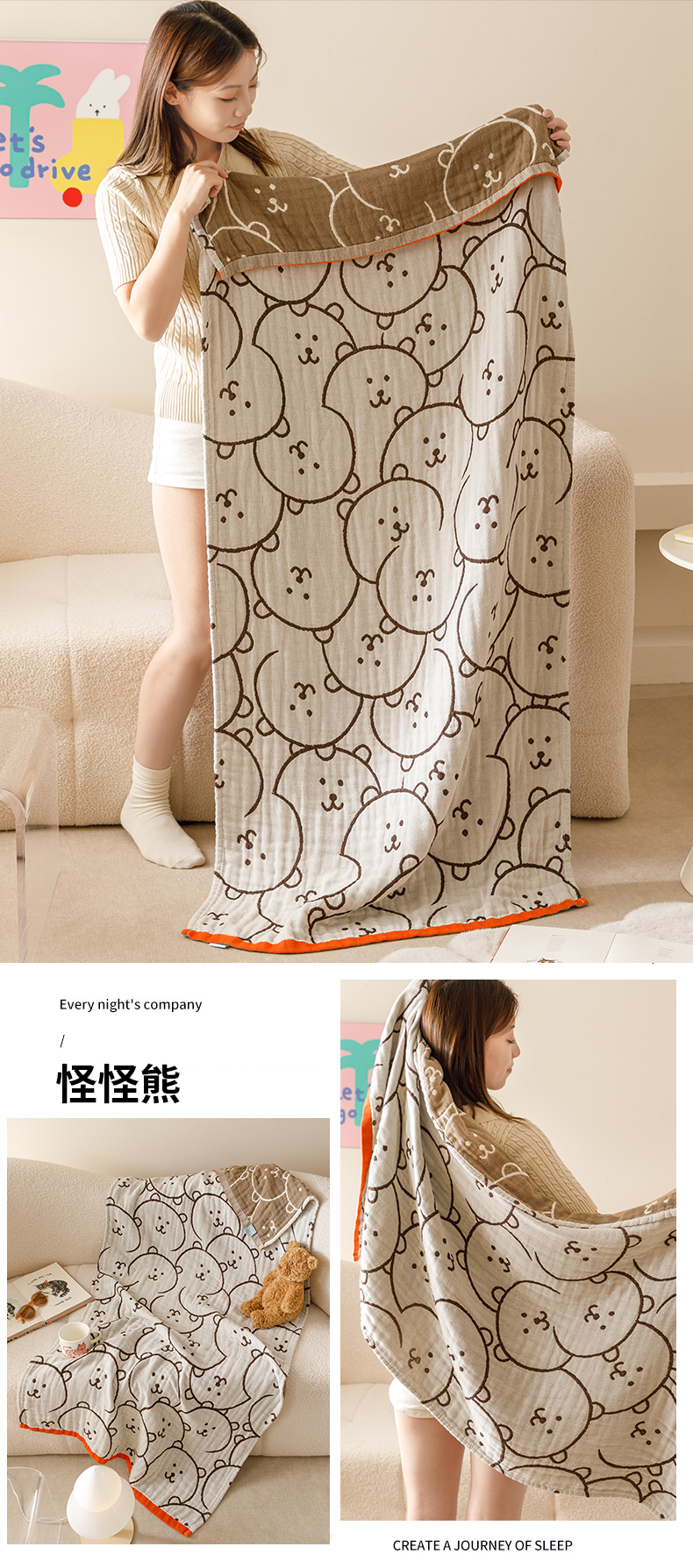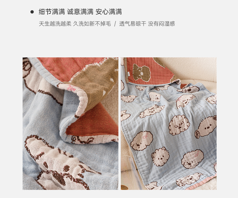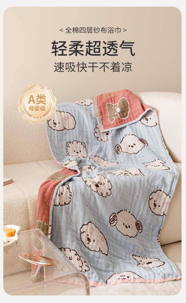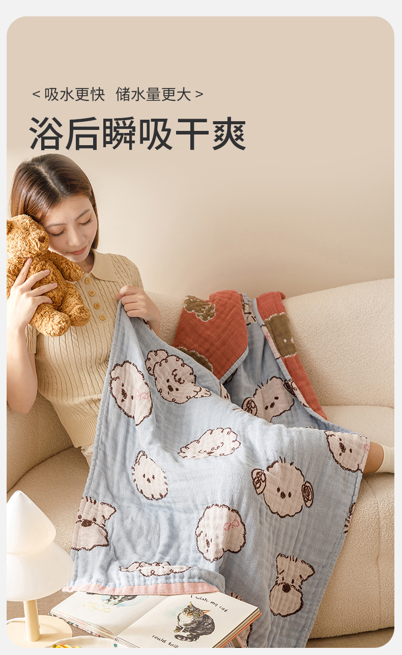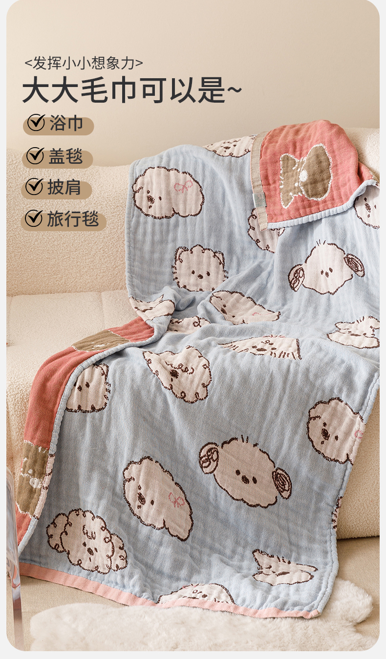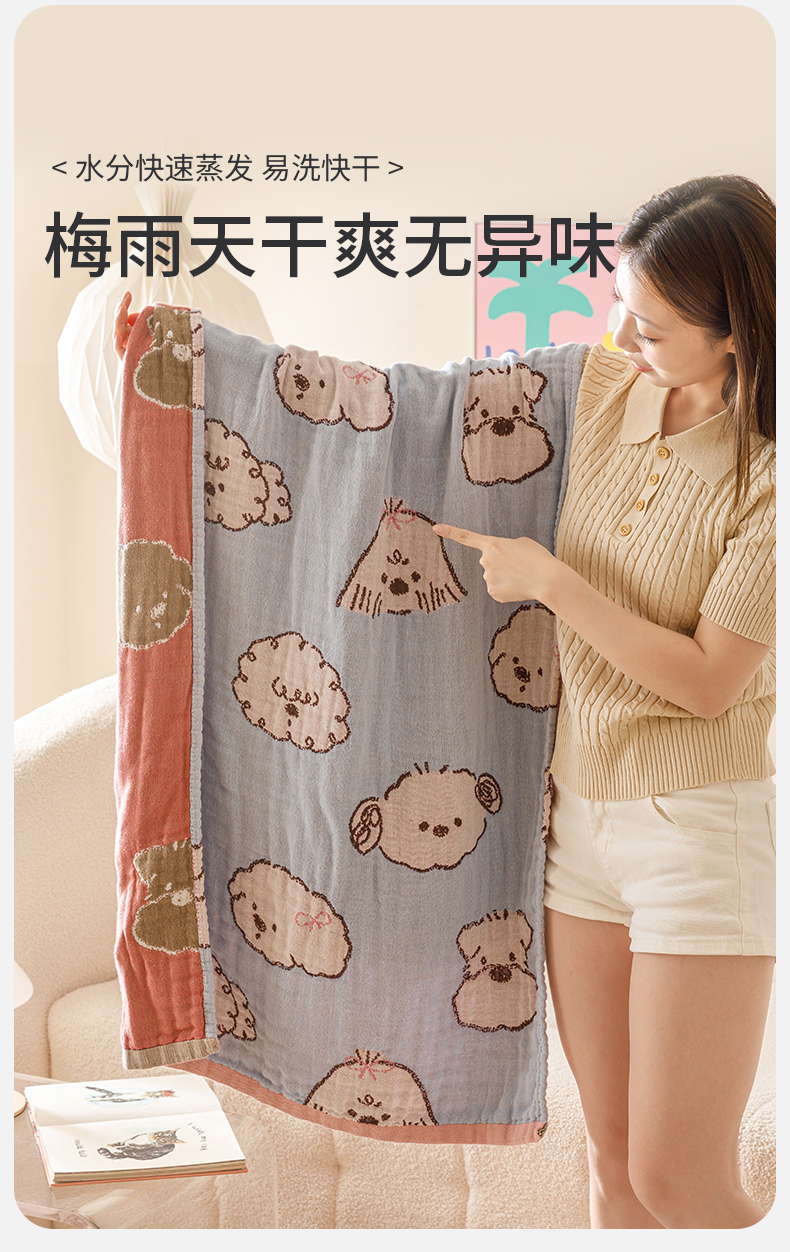 商品名称:麻依 2025新款全棉四层纱布浴巾披肩旅行毯 线条狗狗