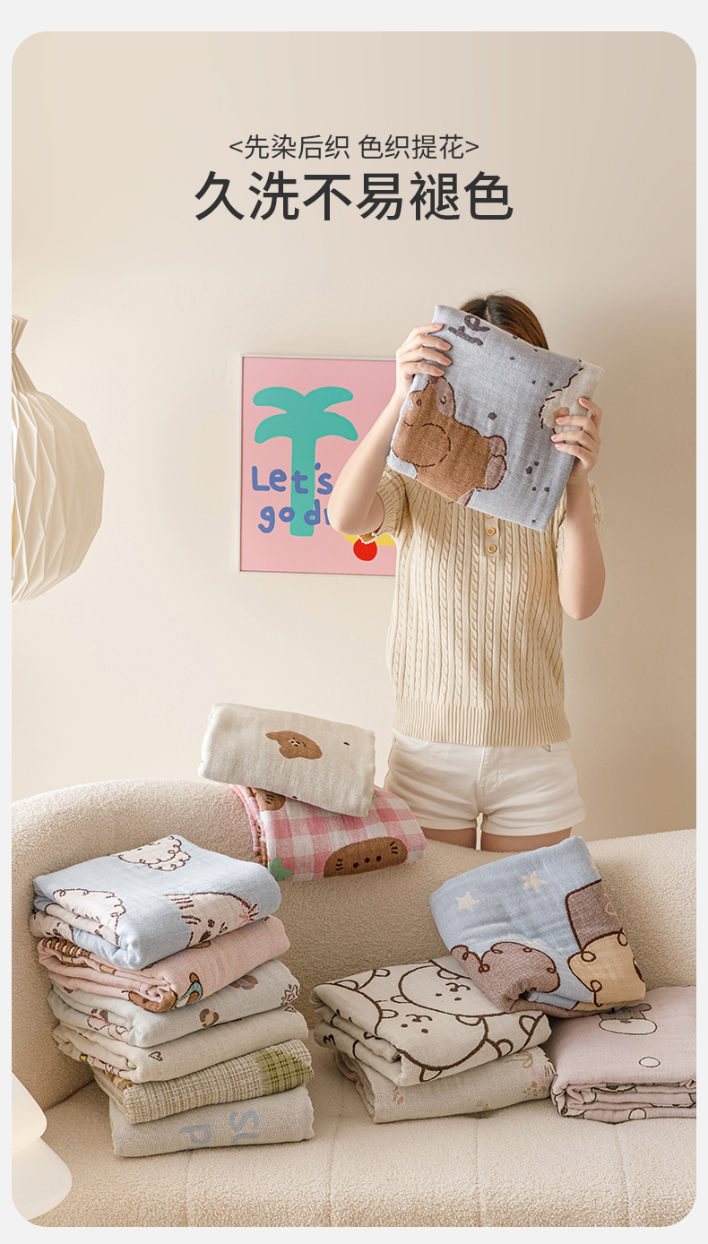 (总)麻依 2025新款四层全棉纱布毯盖毯毛巾被子被芯,白小兔,布偶熊,格子熊,考拉宝宝,咩咩羊,平安果,软萌小狗,甜点熊,甜甜圈,小猫崽,熊仔,总动员,KT日记