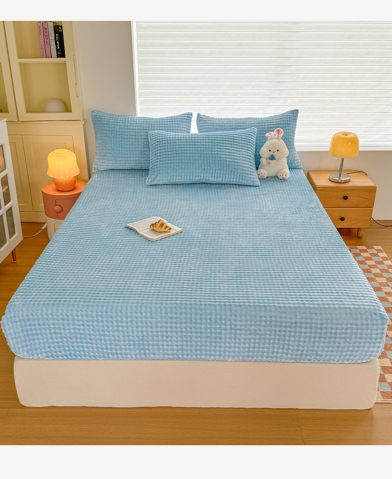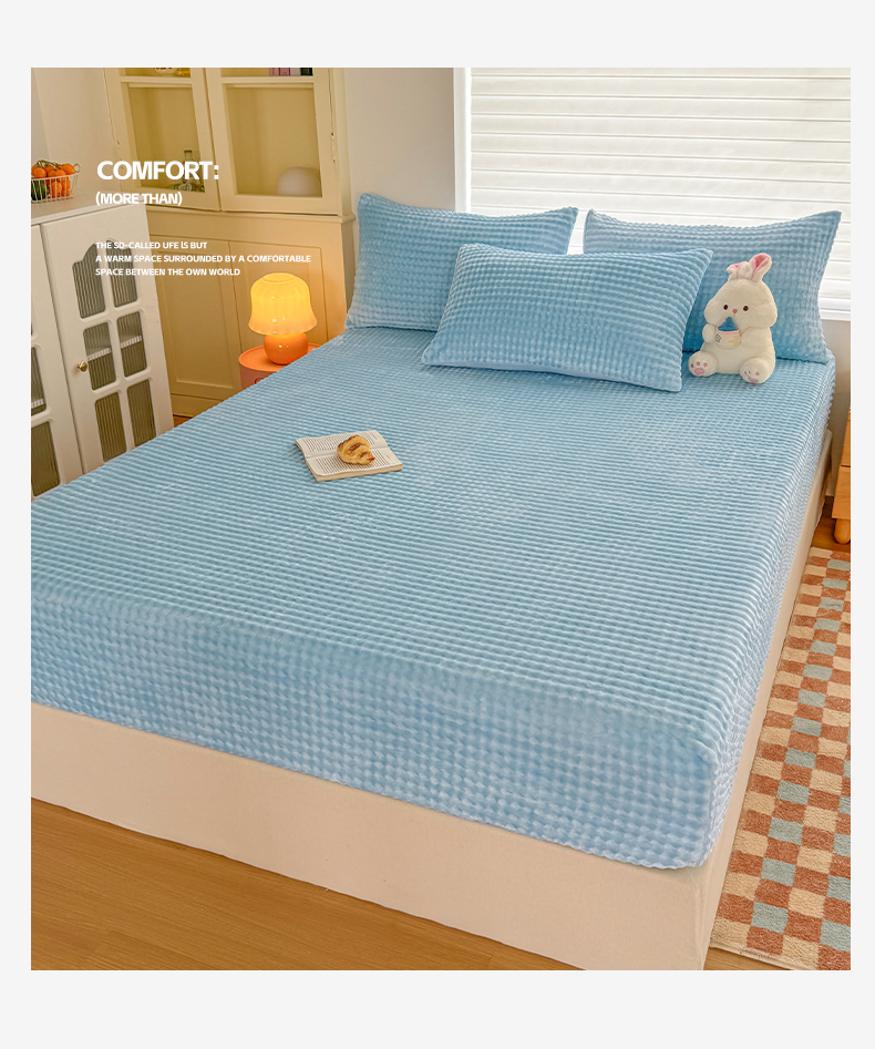• 91家纺网 家纺一手货源 找家纺 (总)十一家居 2025年新款A类高克重仿兔毛泡泡绒单床笠单品床笠床笠单件,组合图仅供参考不可下单,典雅蓝,浅咖驼,青草绿,清雅紫,樱花粉