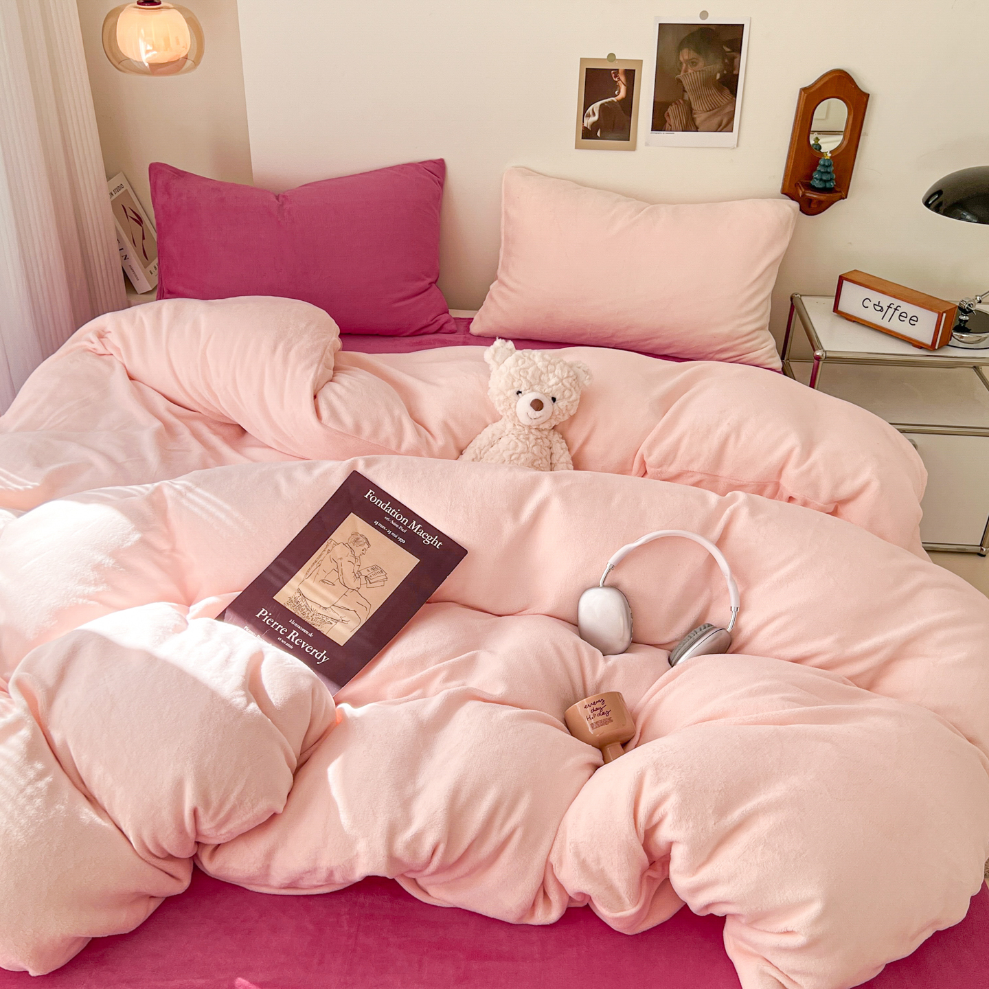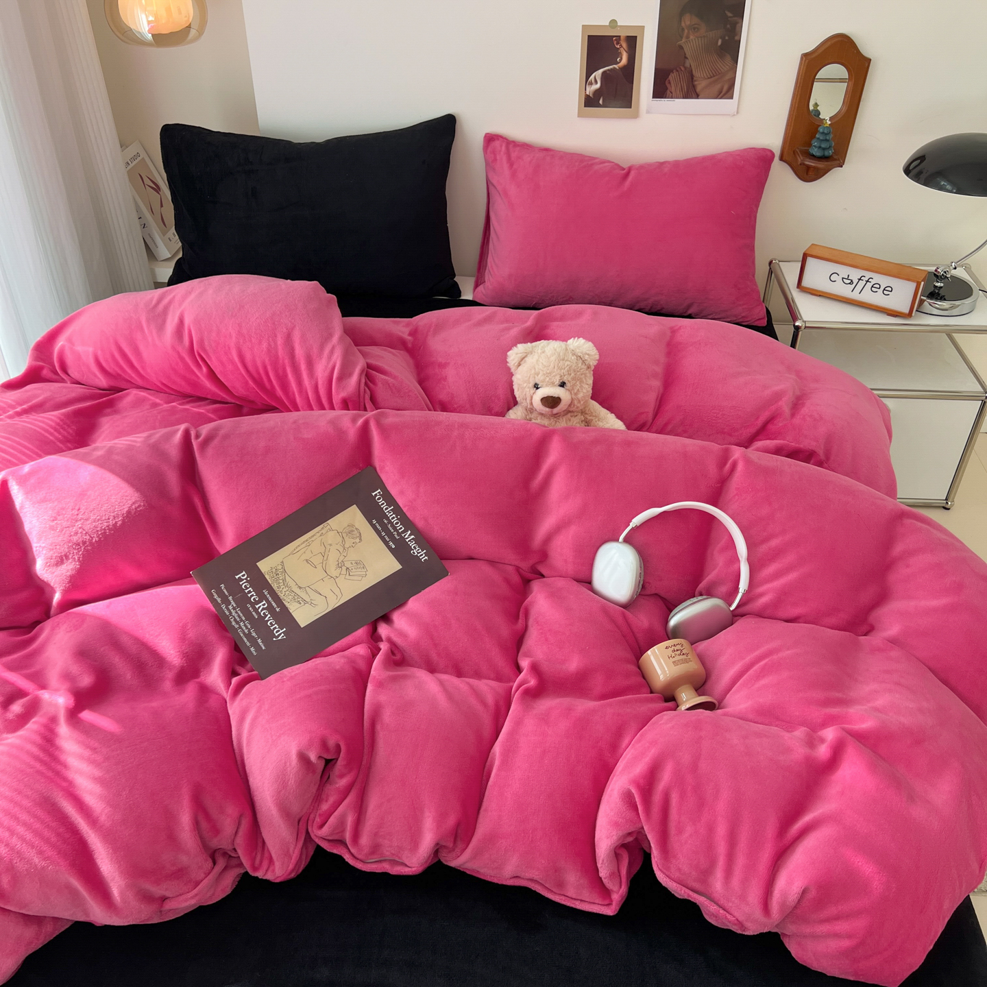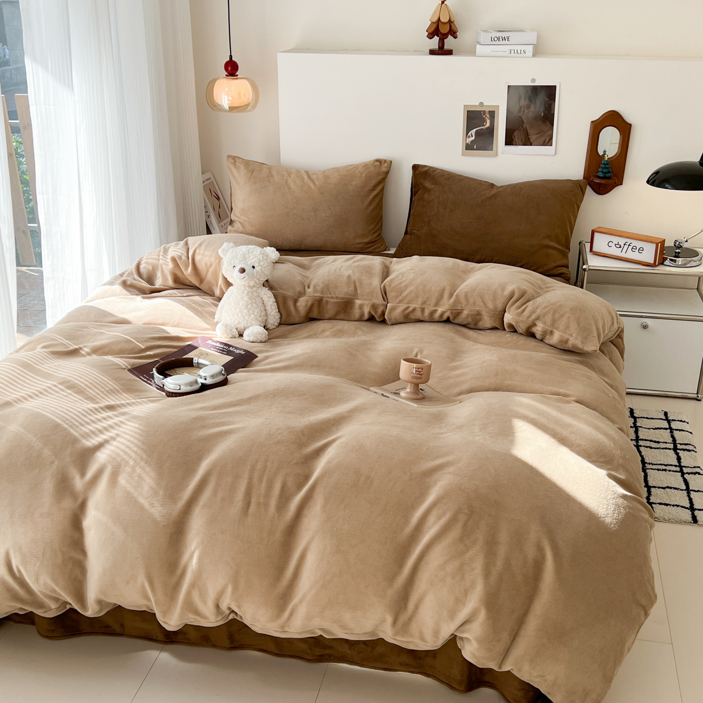 当前位置: 91家纺网 > 商品网购 > 床品套件 > 四件套 > 牛奶绒四件套 > 童颜 2025新款高克重拼色保暖牛奶绒四件套-场景二 酒红黑
