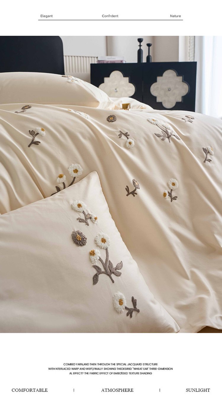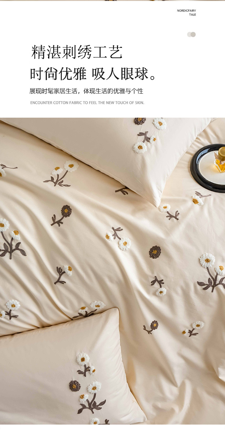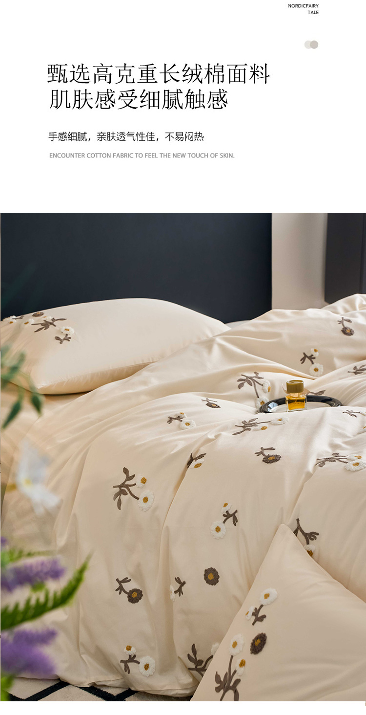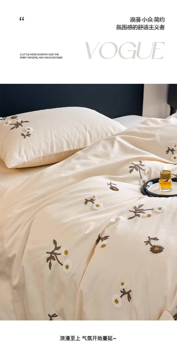 商品名称:悦然毛巾被 2025新款全棉纯棉斜纹毛巾绣四件套 花样年华奶白