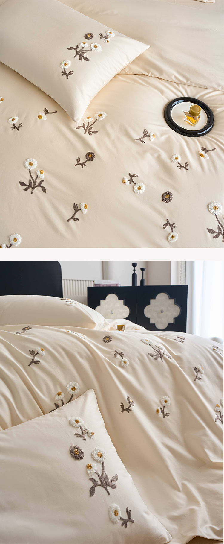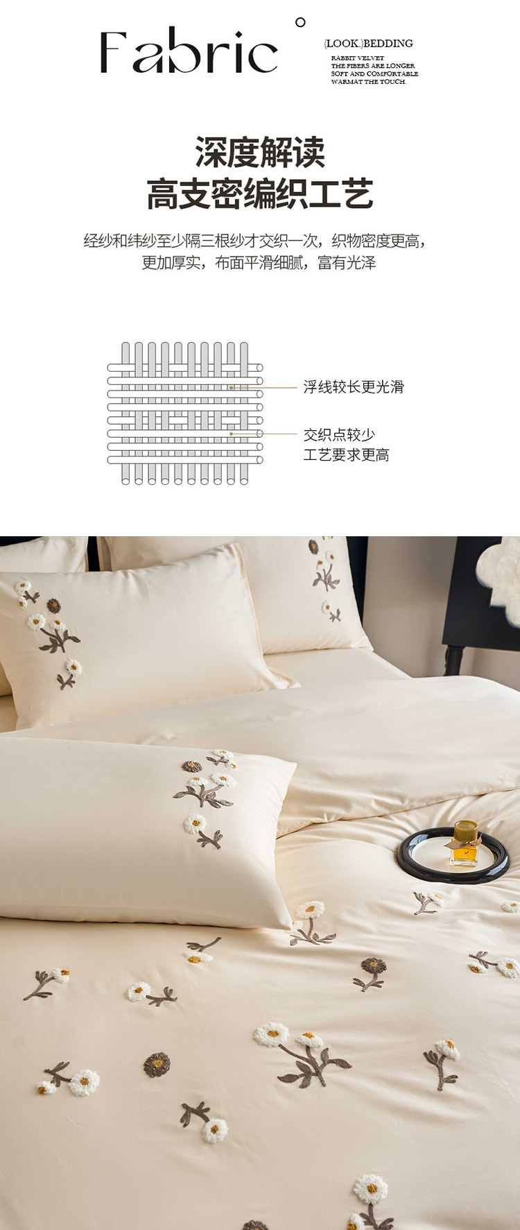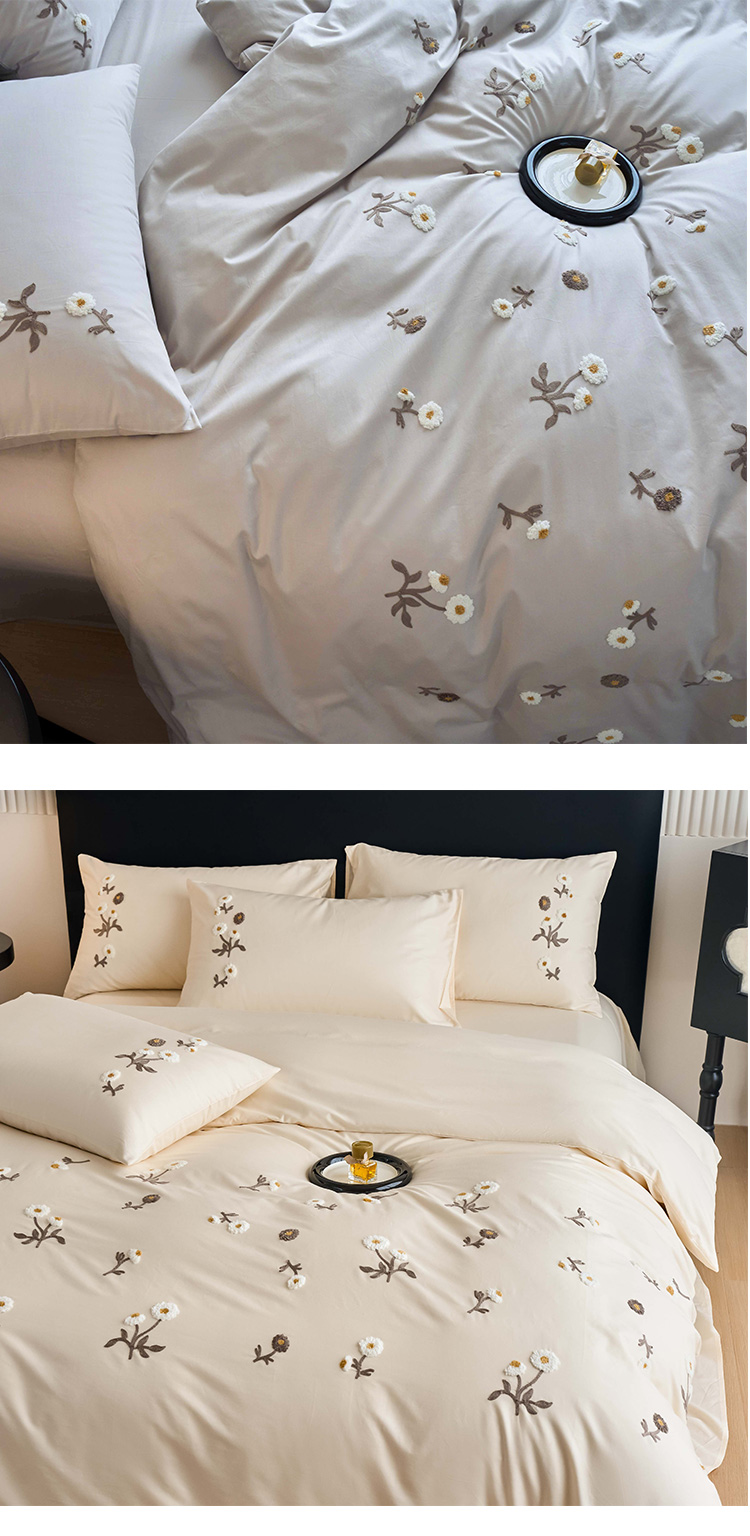 商品名称:悦然毛巾被 2025新款全棉纯棉斜纹毛巾绣四件套 花样年华奶白