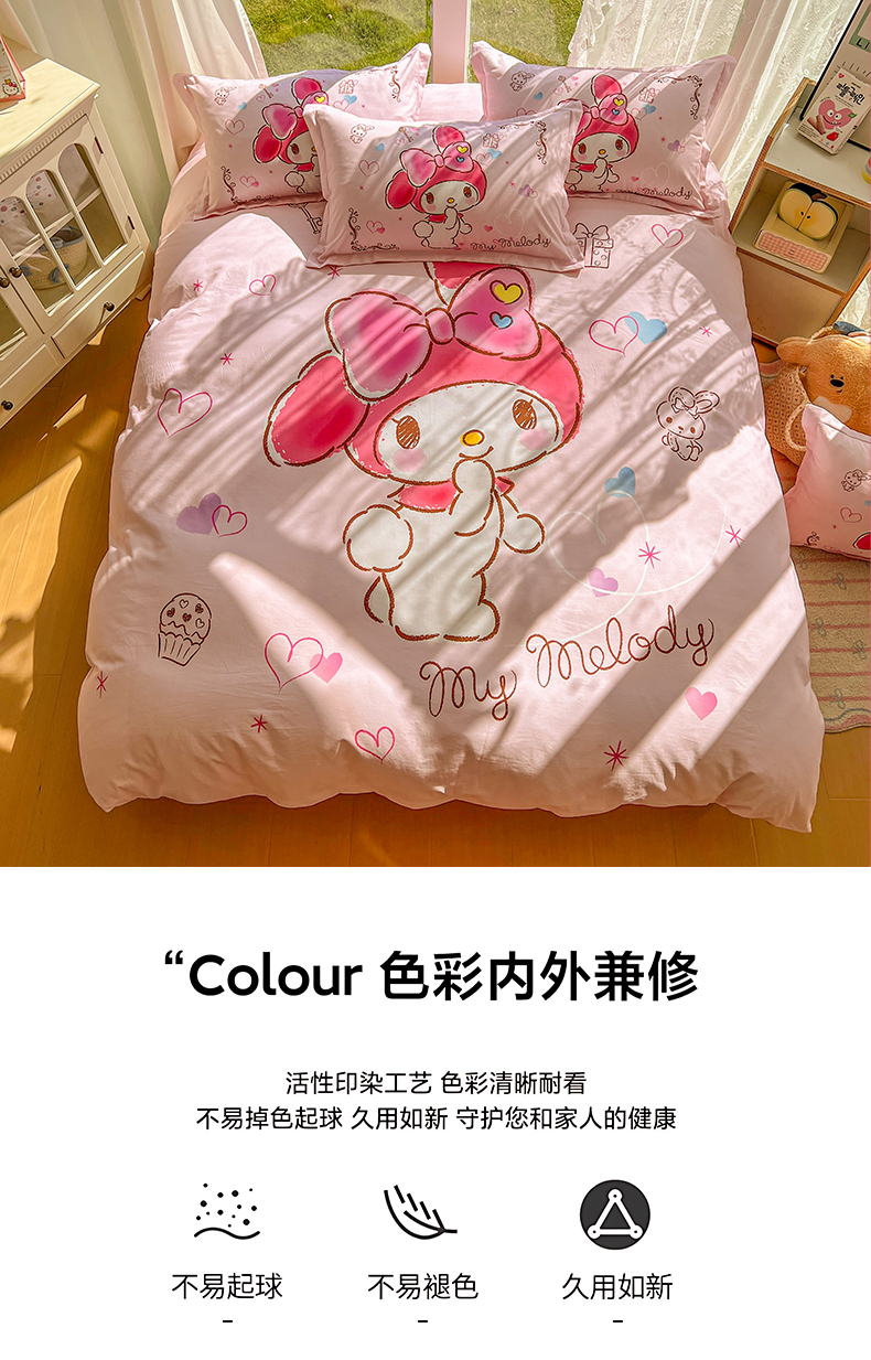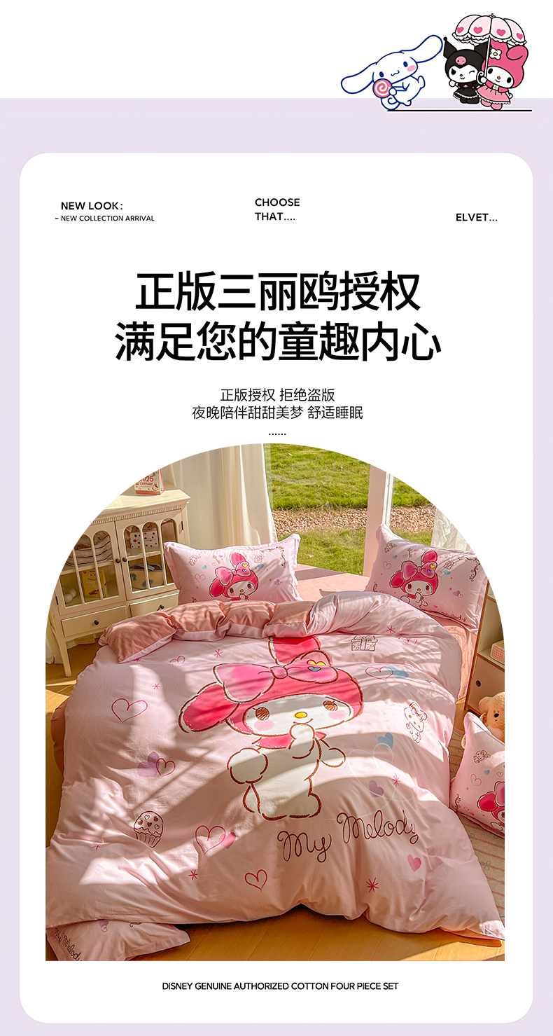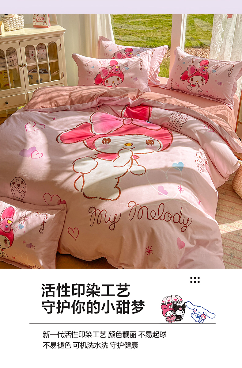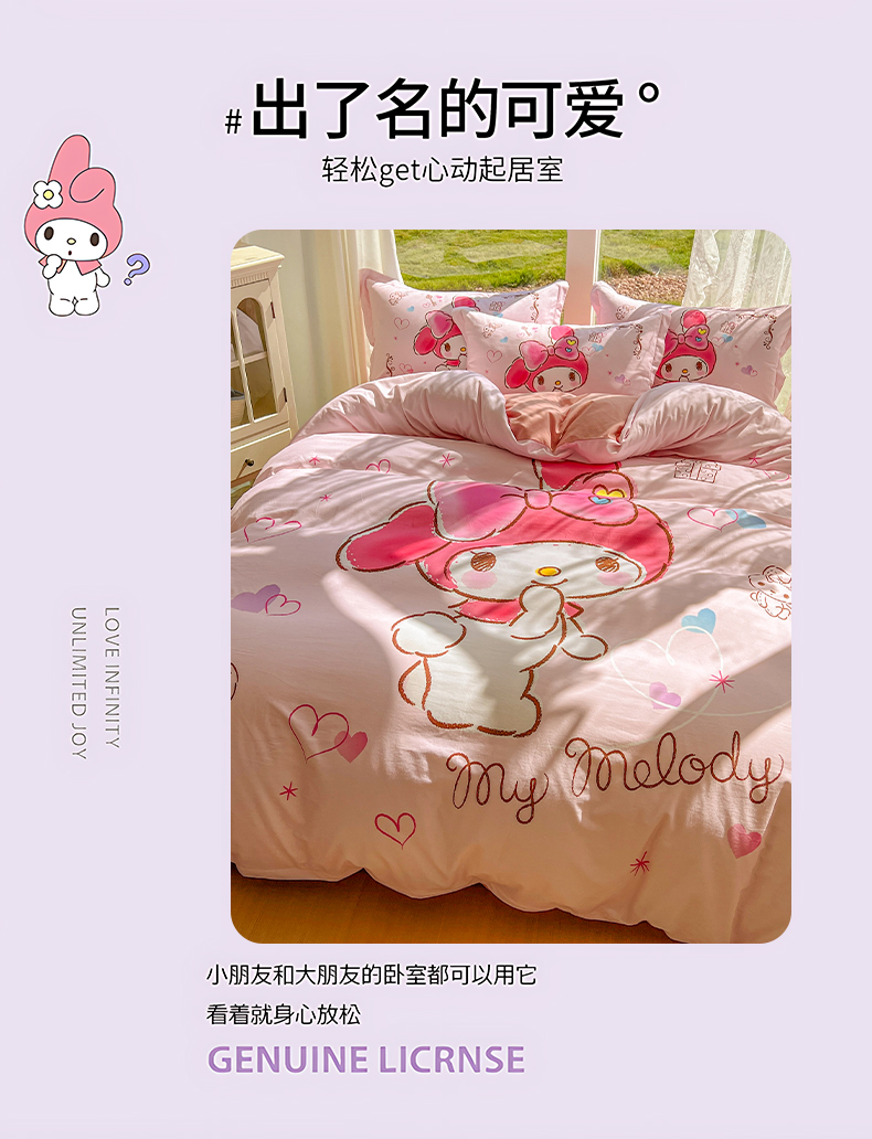 商品名称:浩诚 2025新款三丽鸥专版全棉磨毛纯棉四件套 幸福美乐蒂