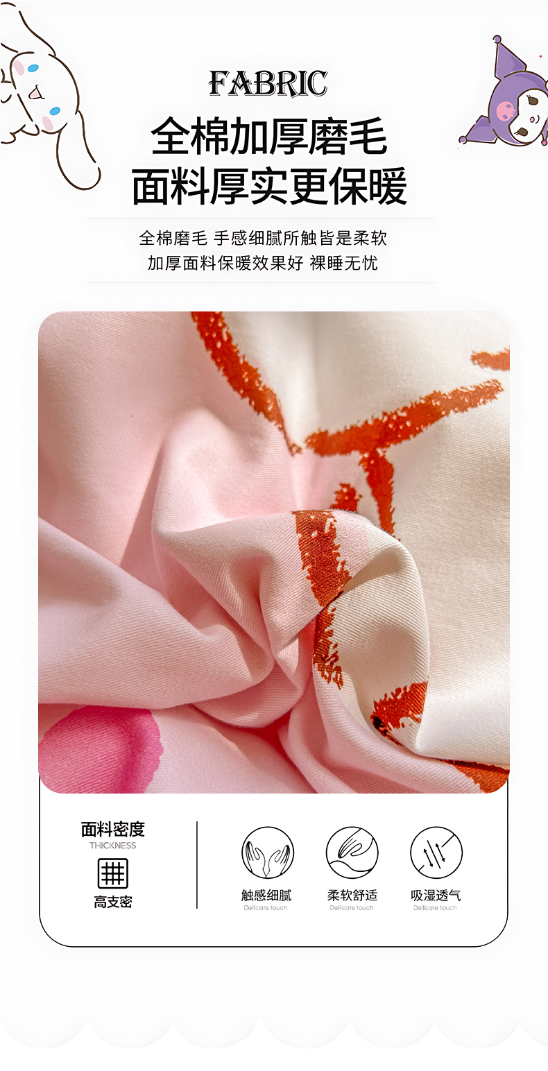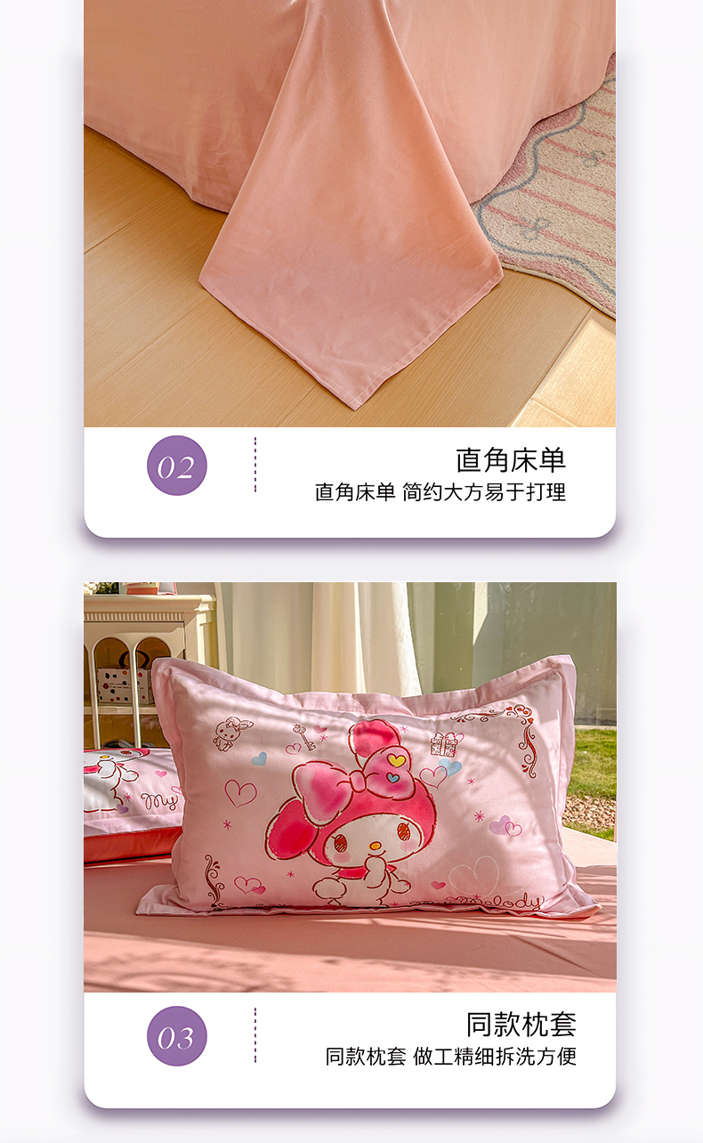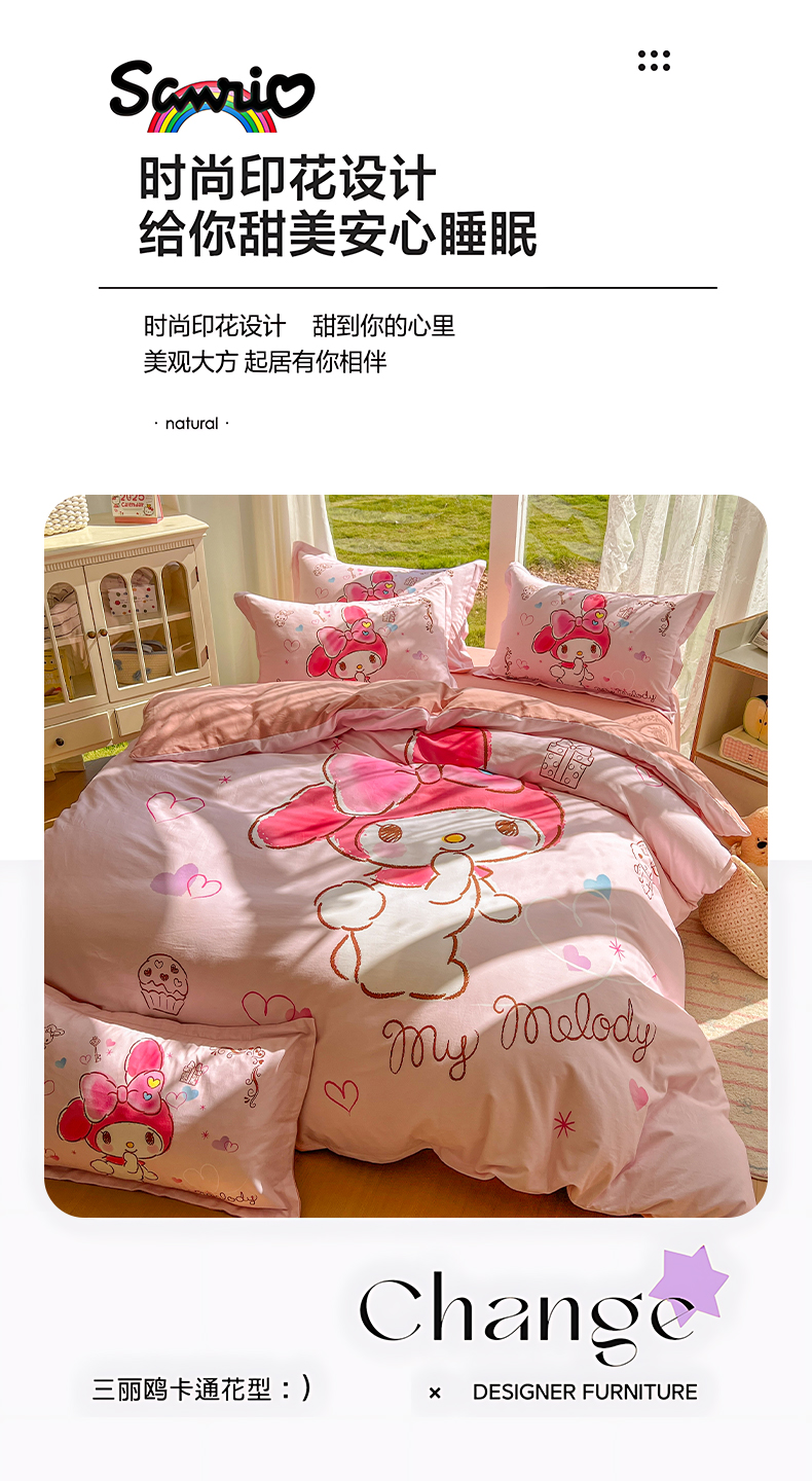 商品名称:浩诚 2025新款三丽鸥专版全棉磨毛纯棉四件套 幸福美乐蒂
