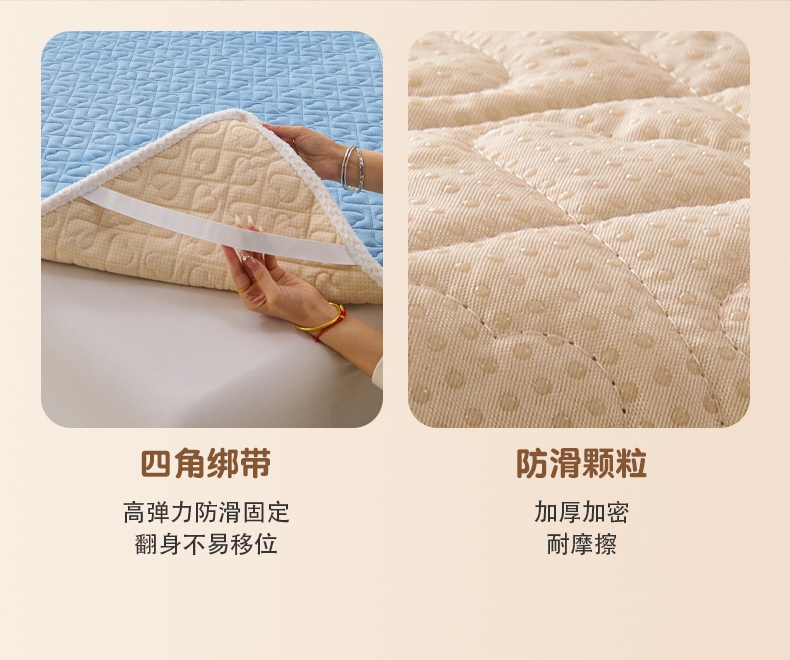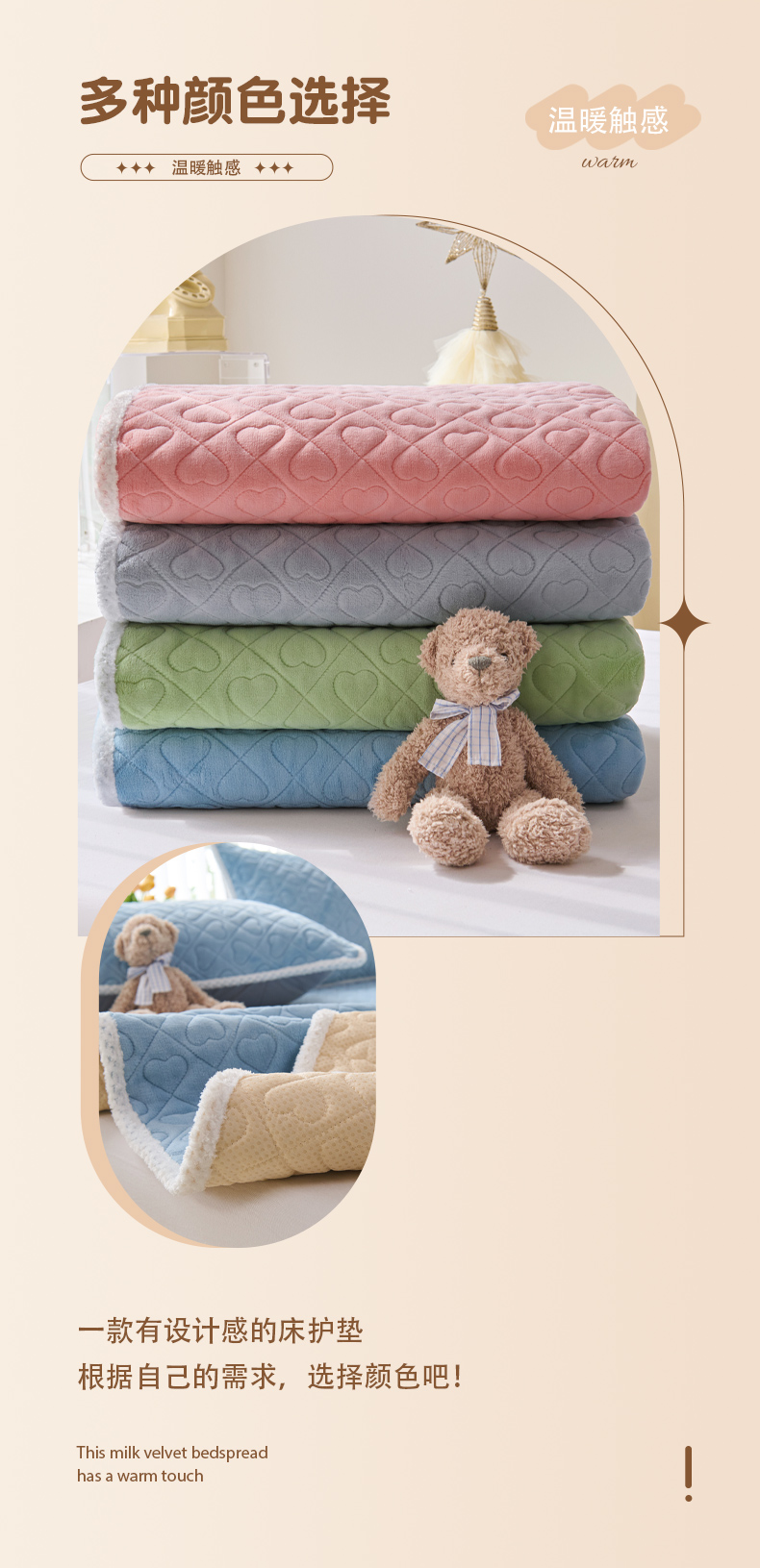 (总)拾小柒 2025年新款牛奶绒防滑床护垫加厚床垫隔脏垫冬季褥子床盖三件套,淡绿,浅粉,浅灰,浅水兰