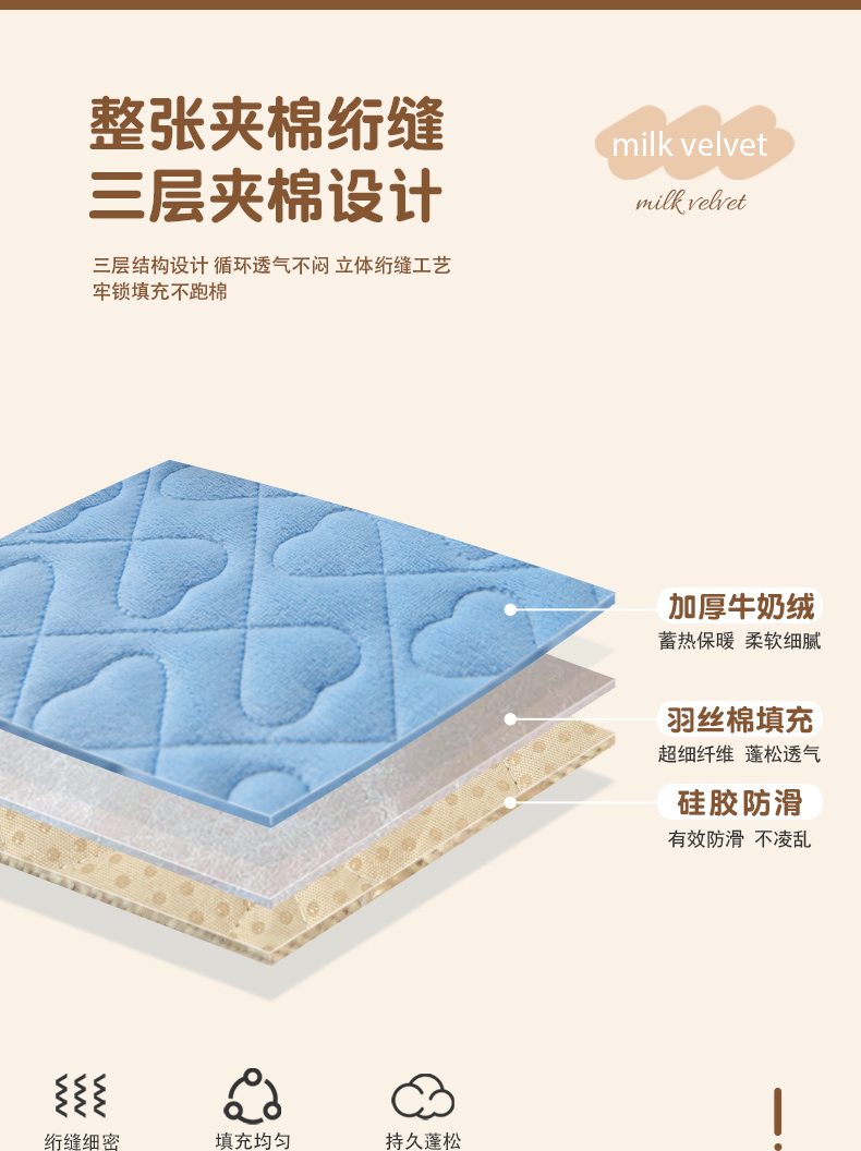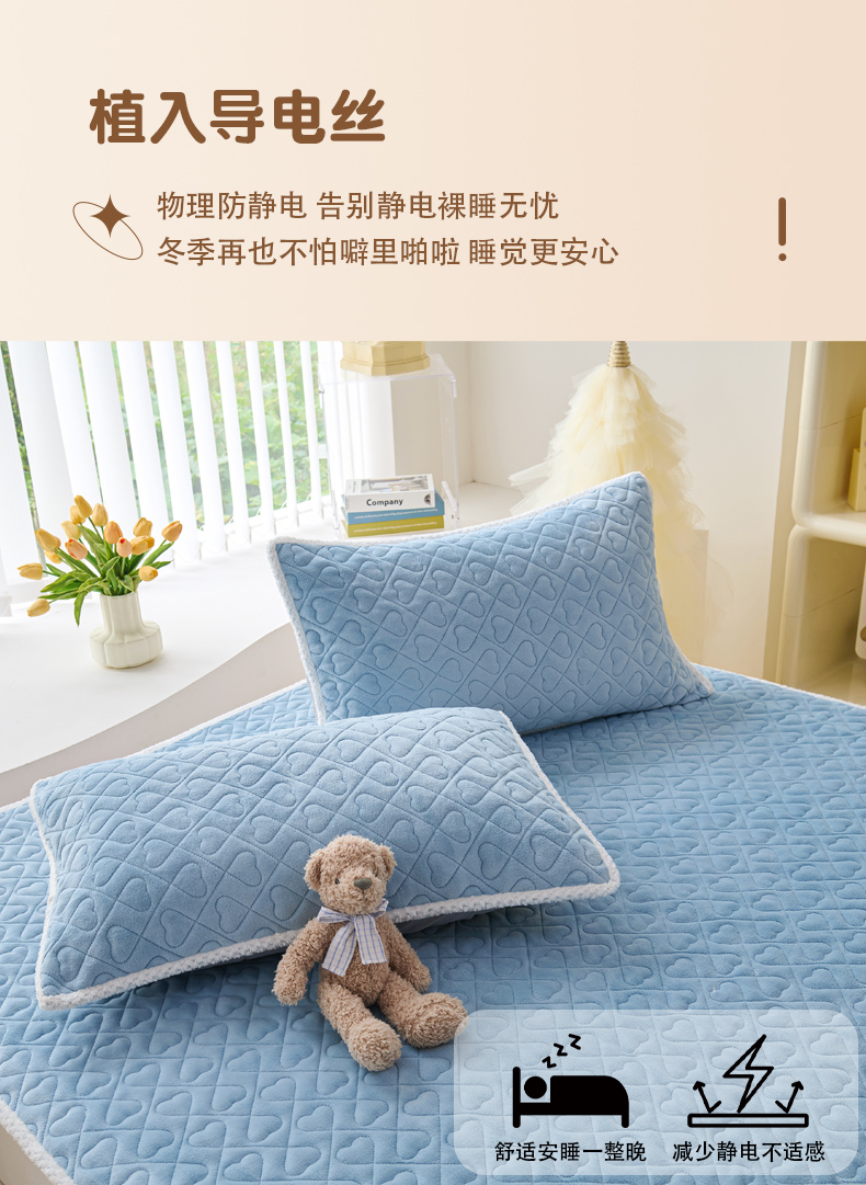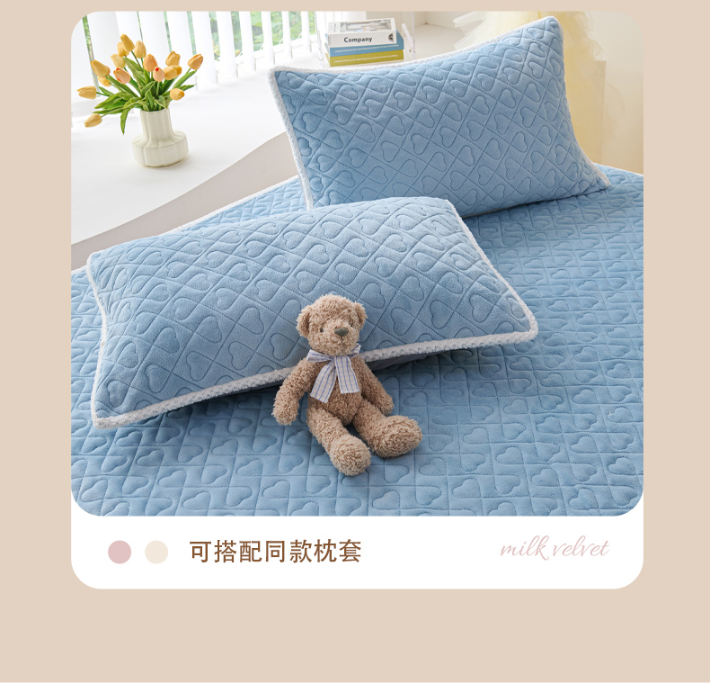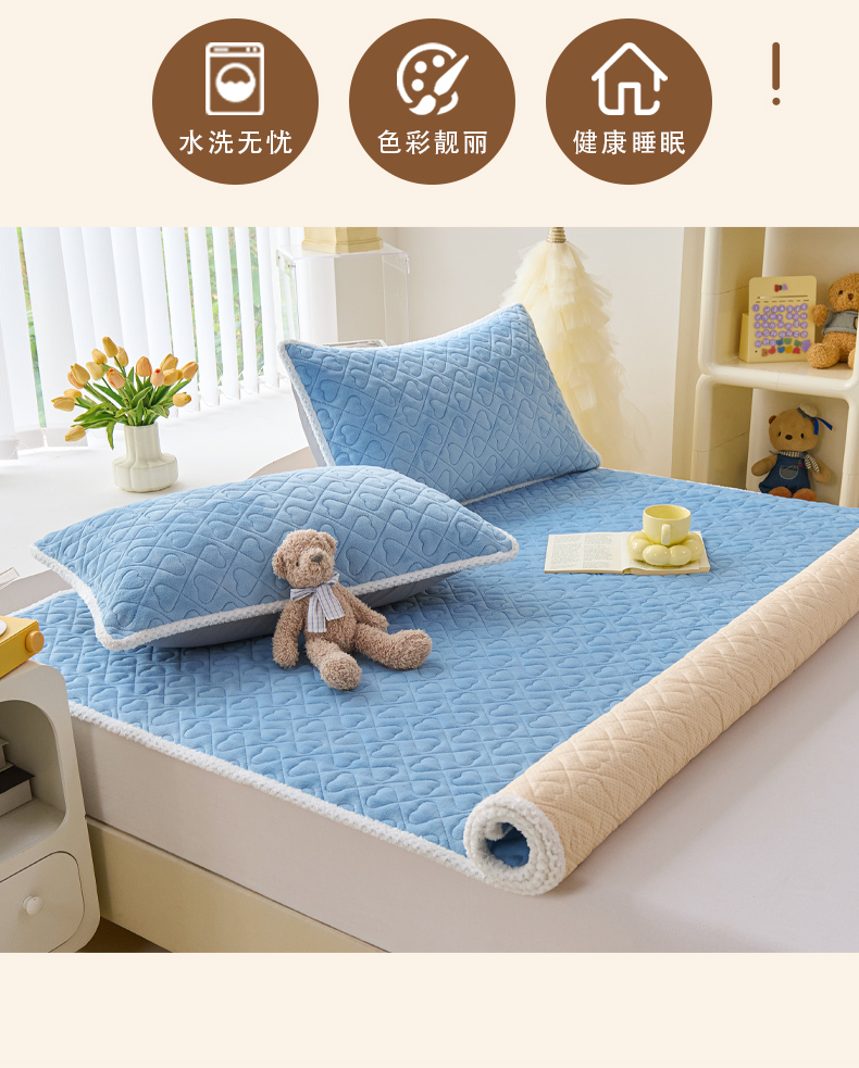 • 91家纺网 家纺一手货源 找家纺 拾小柒 2025年新款牛奶绒防滑床护垫加厚床垫隔脏垫冬季褥子床盖三件套 浅水兰