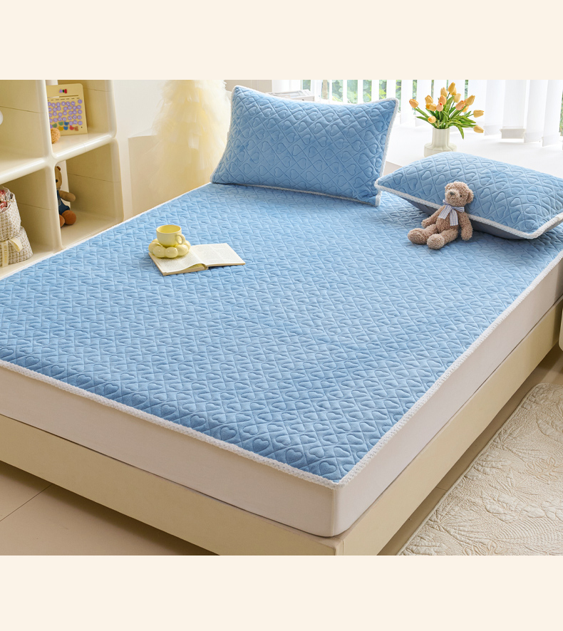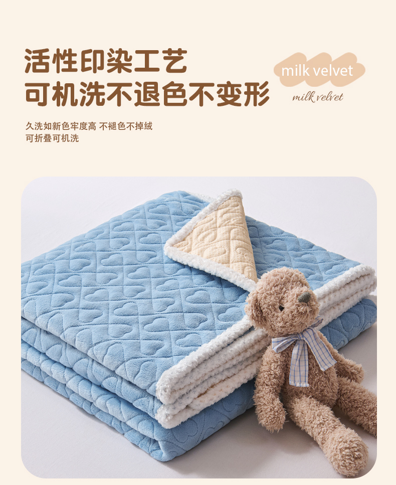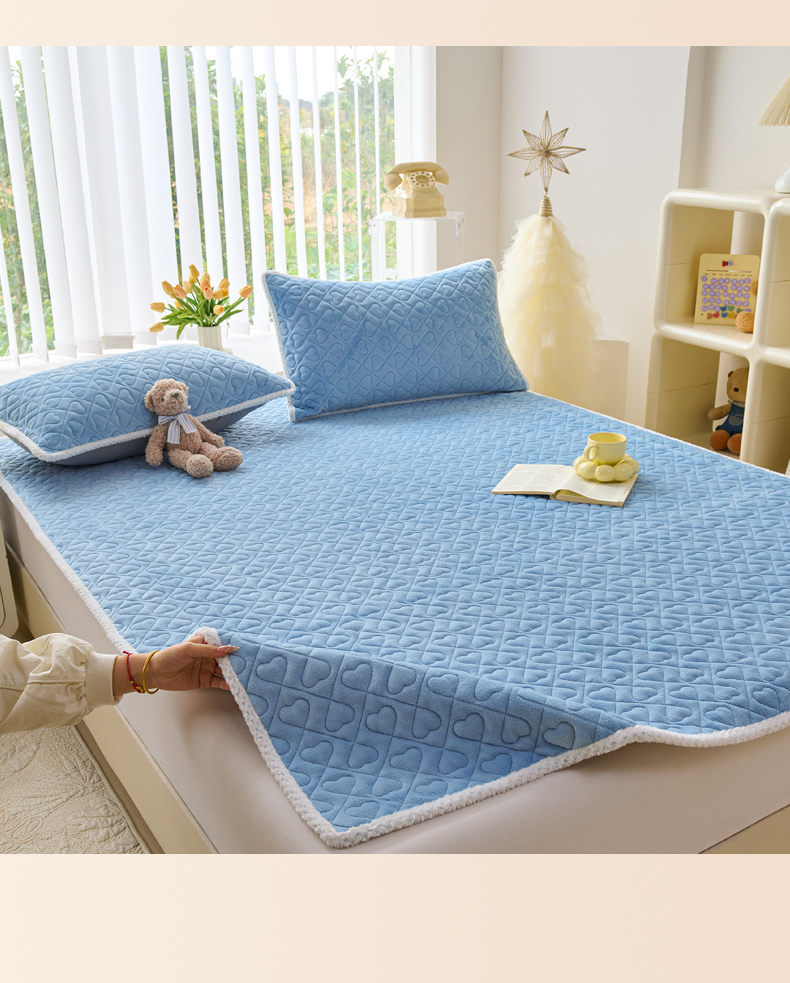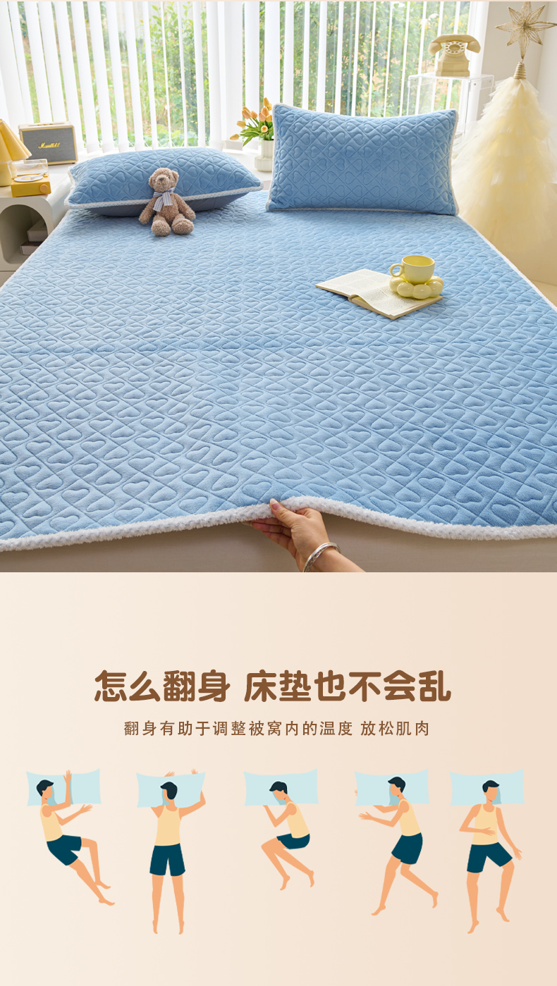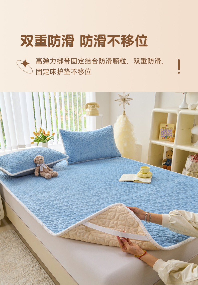 拾小柒 2025年新款牛奶绒防滑床护垫加厚床垫隔脏垫冬季褥子床盖三件套 浅水兰