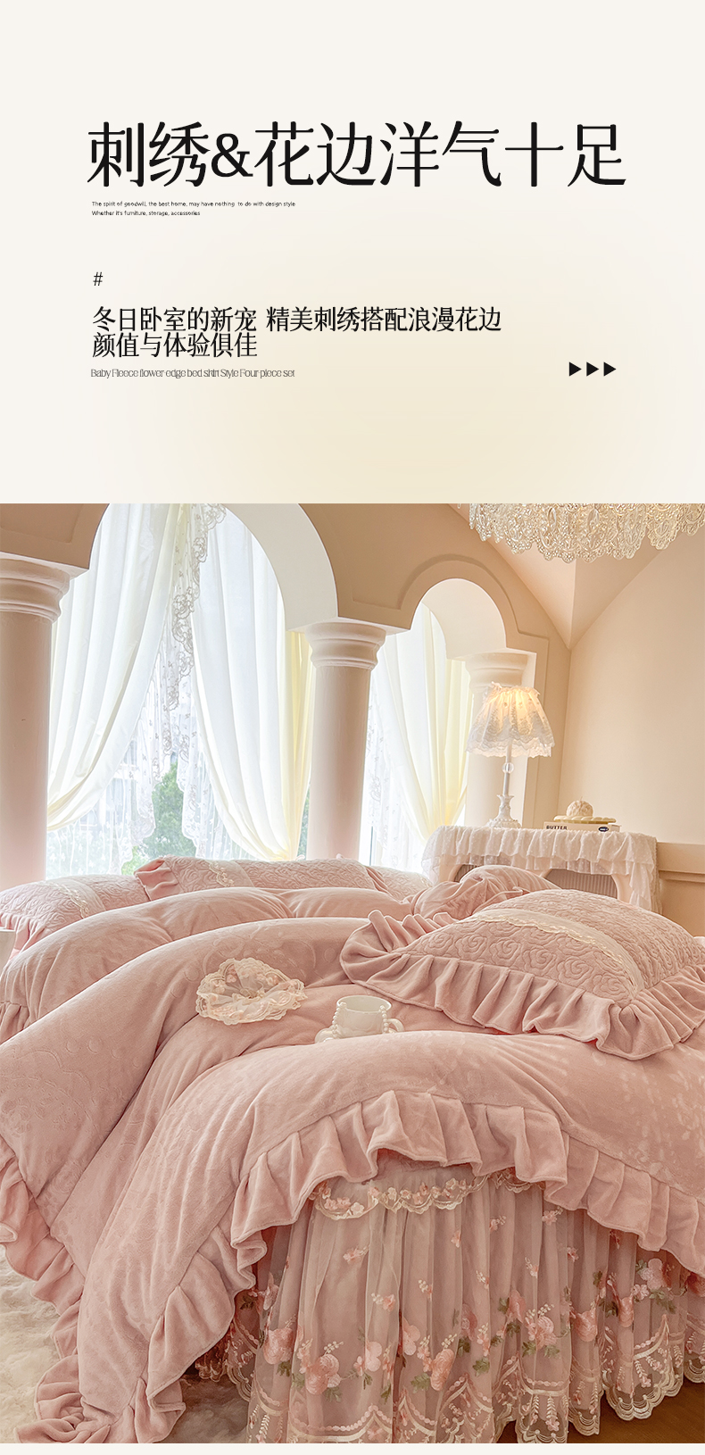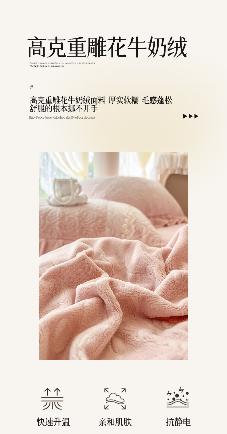 (总)瑞宝 2025新款雕花牛奶绒夹棉床裙四件套-花有约