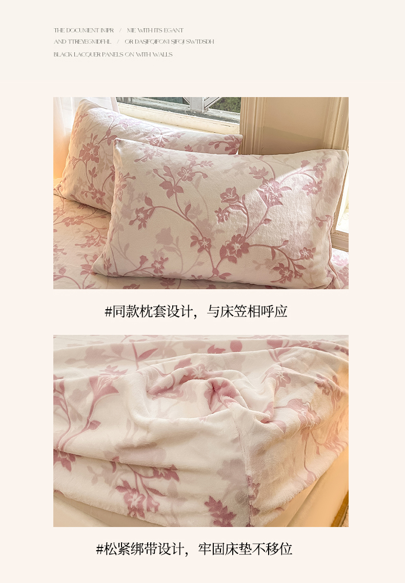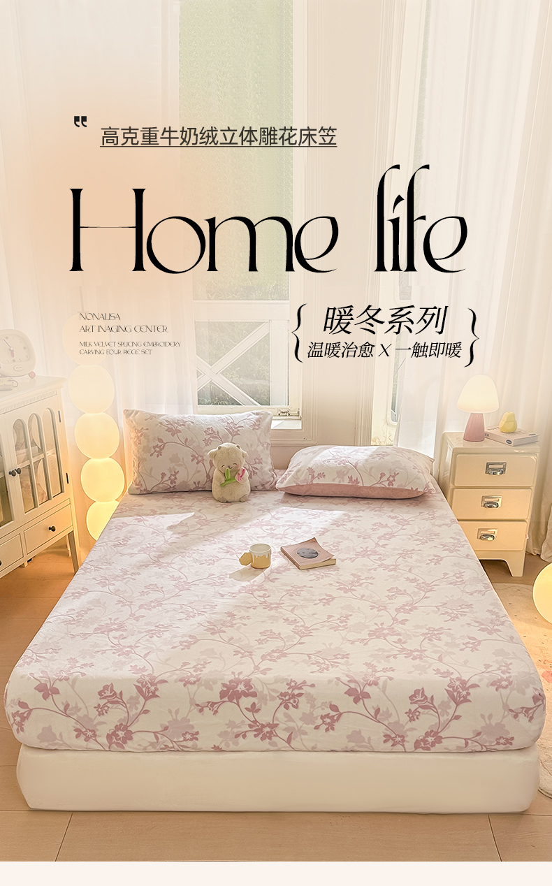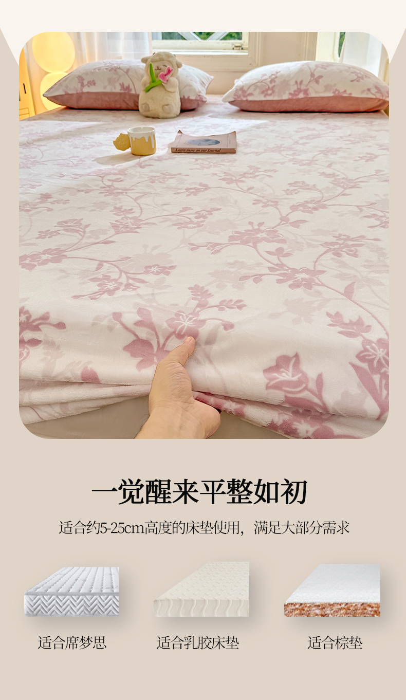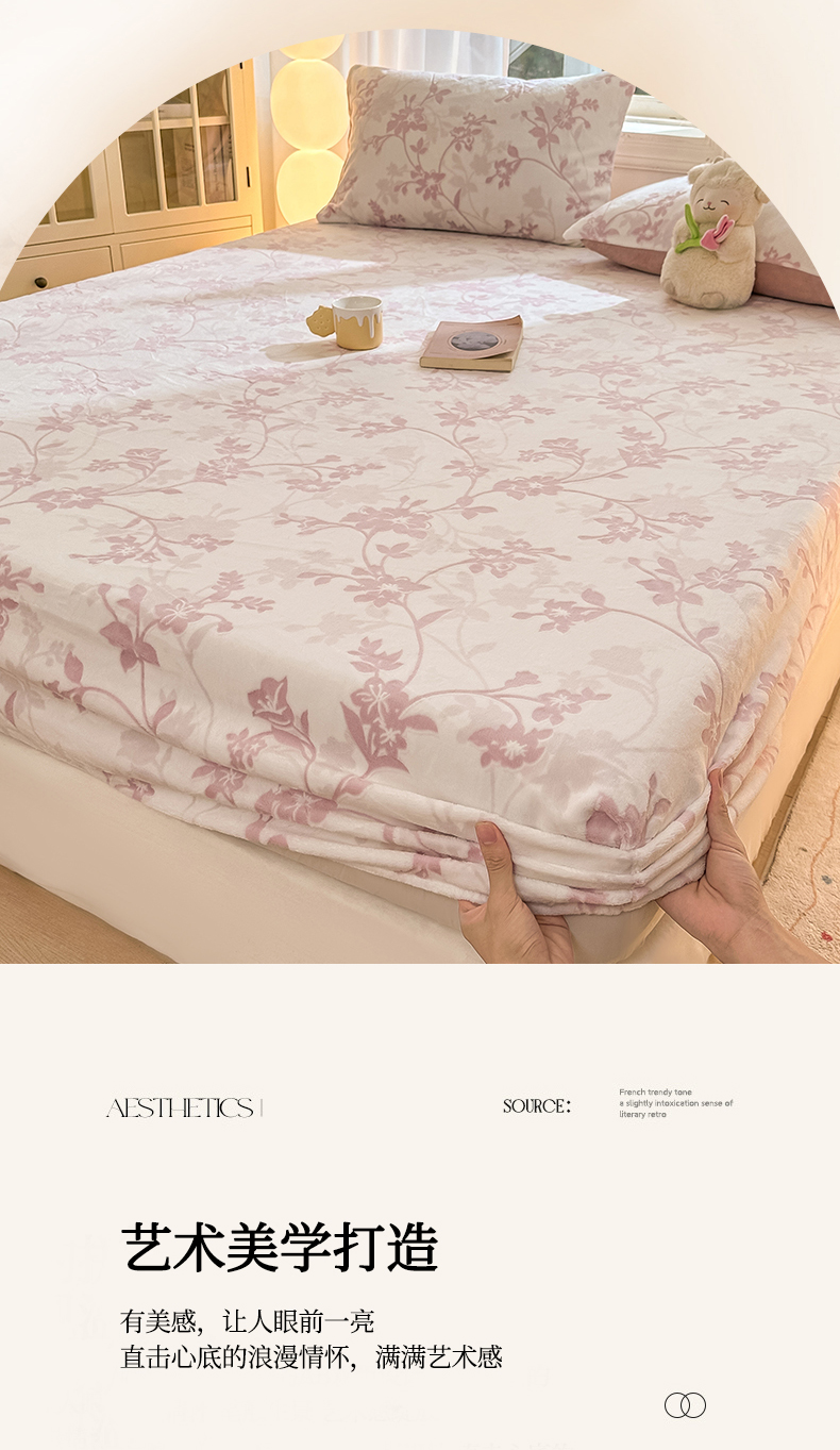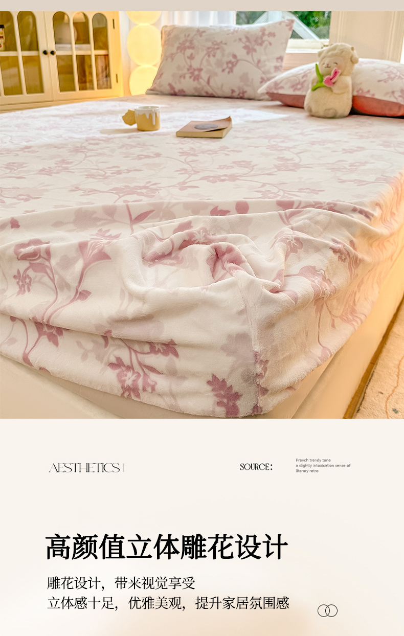 • 91家纺网 家纺一手货源 找家纺 灰鲸 2025新款立体雕花牛奶绒床笠 繁花-粉