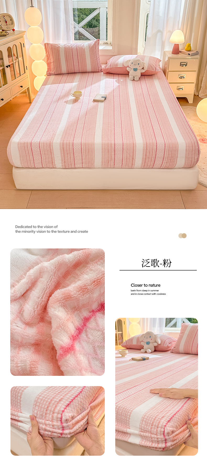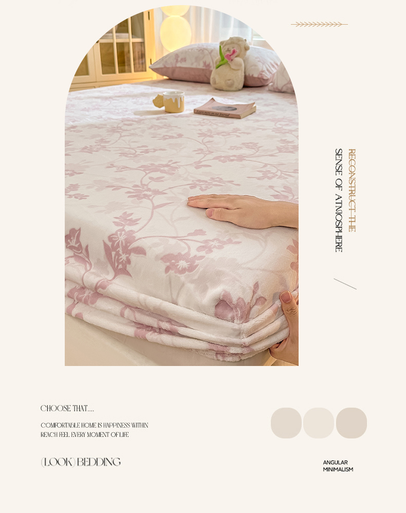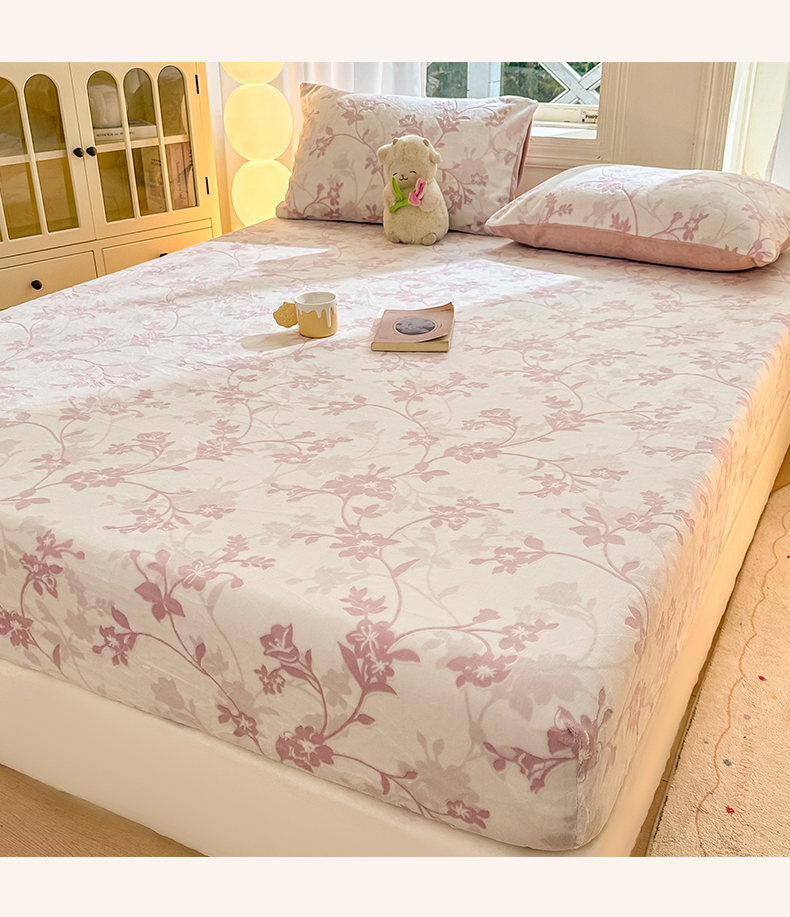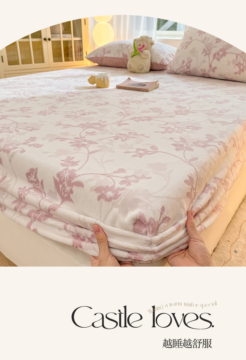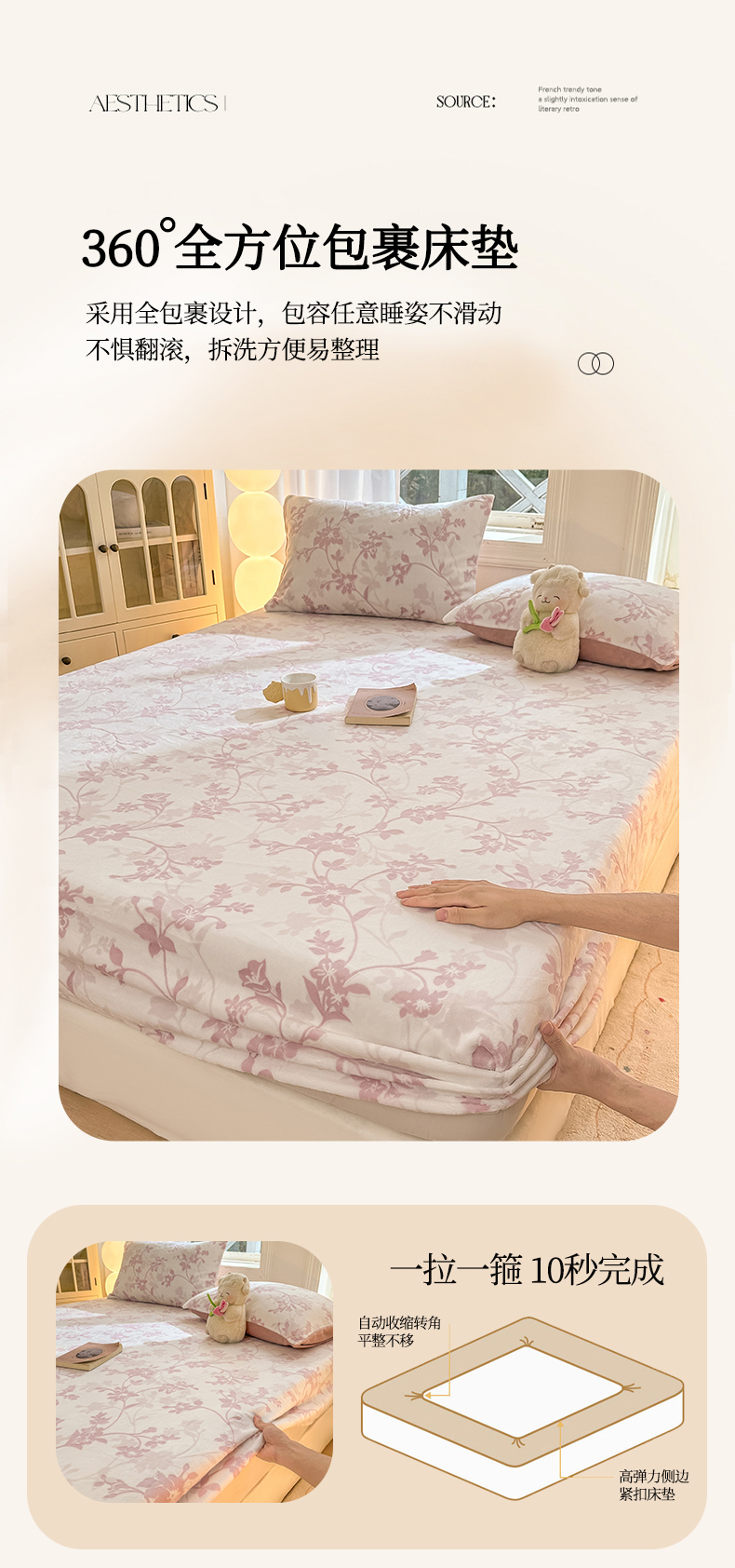 • 91家纺网 家纺一手货源 找家纺 灰鲸 2025新款立体雕花牛奶绒床笠 繁花-粉