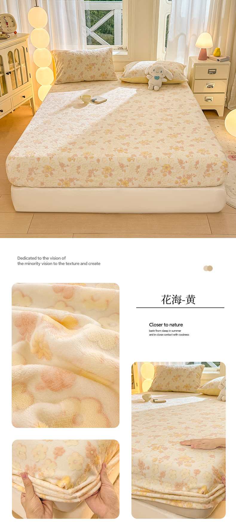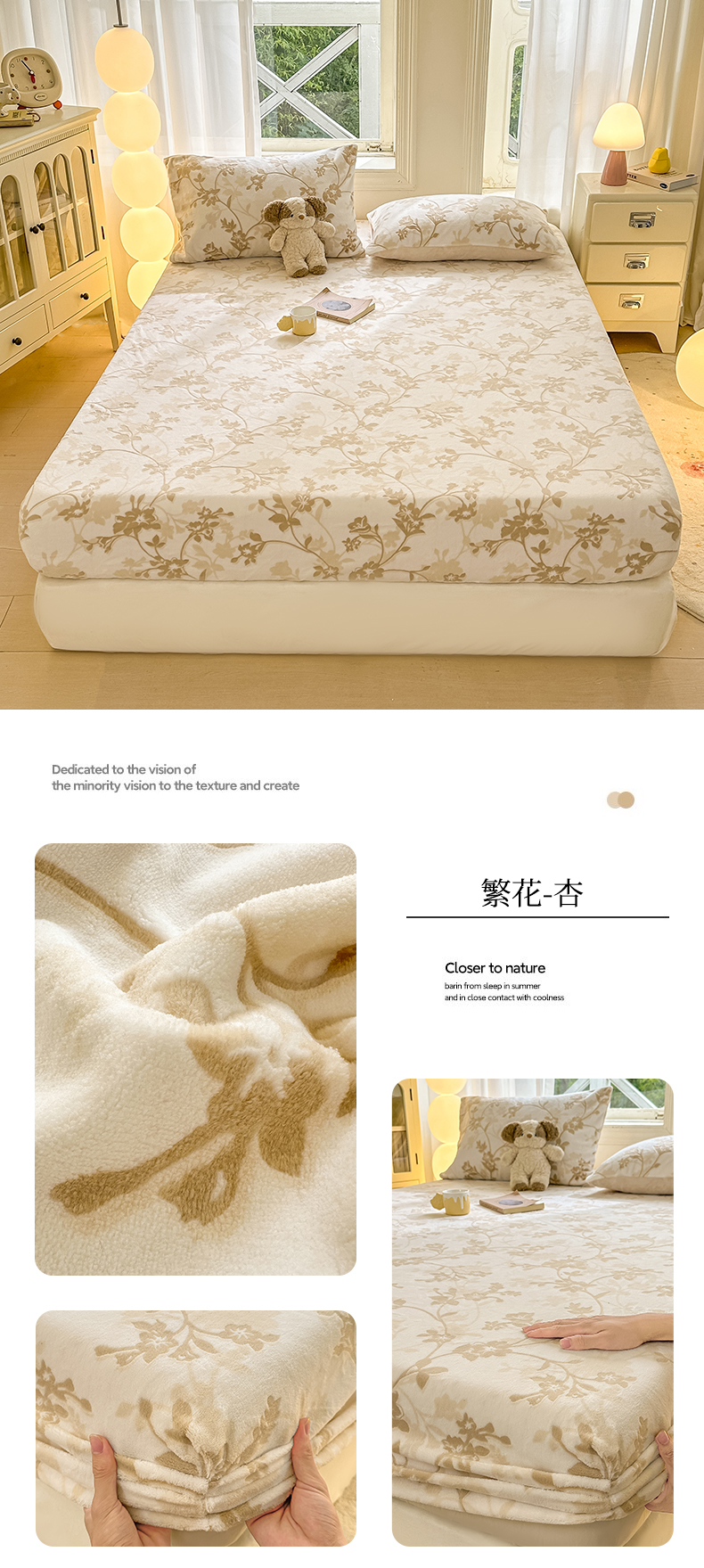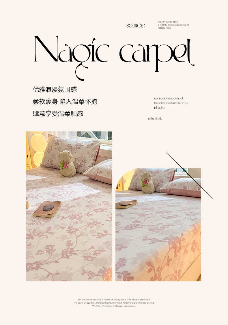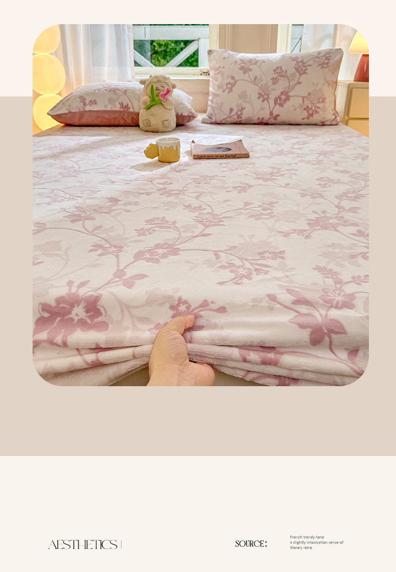 • 91家纺网 家纺一手货源 找家纺 灰鲸 2025新款立体雕花牛奶绒床笠 繁花-粉