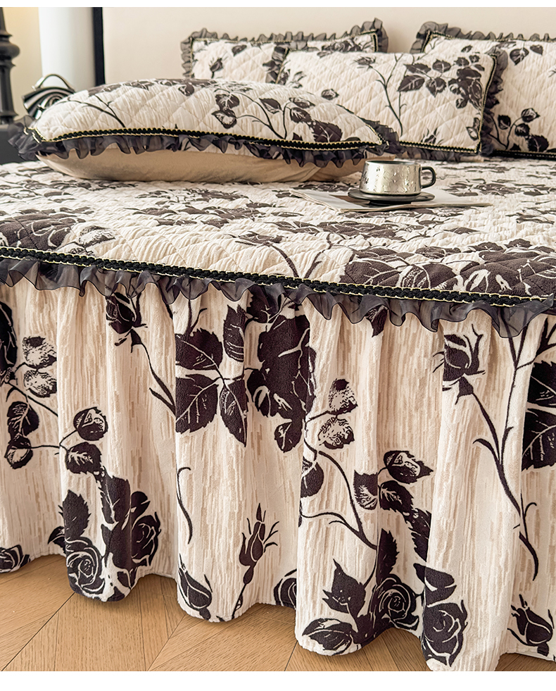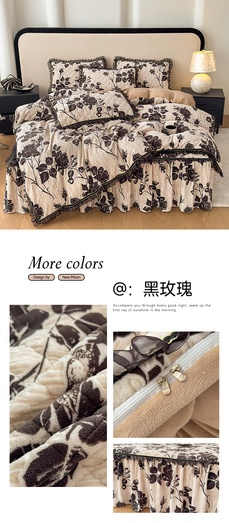 当前位置: 91家纺网 > 商品网购 > 床品套件 > 四件套 > 牛奶绒四件套 > 家之硕家纺 2025新款雕花牛奶绒床裙款四件套 蔓延之境 -咖