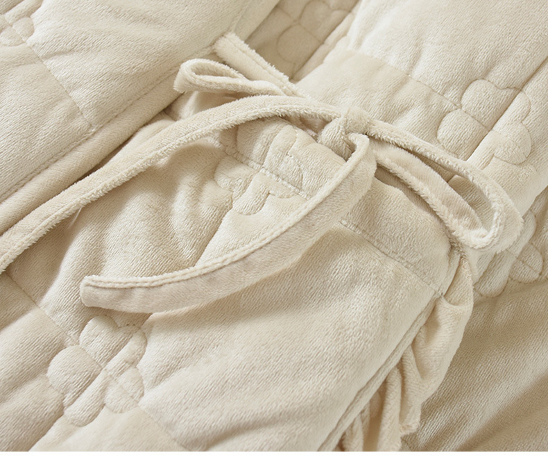 商品名称:洛兰沙家居馆 2025新款只代发娃娃领睡衣女冬季珊瑚绒三层夹棉加厚中长款睡袍加裤子家居服套装 米色