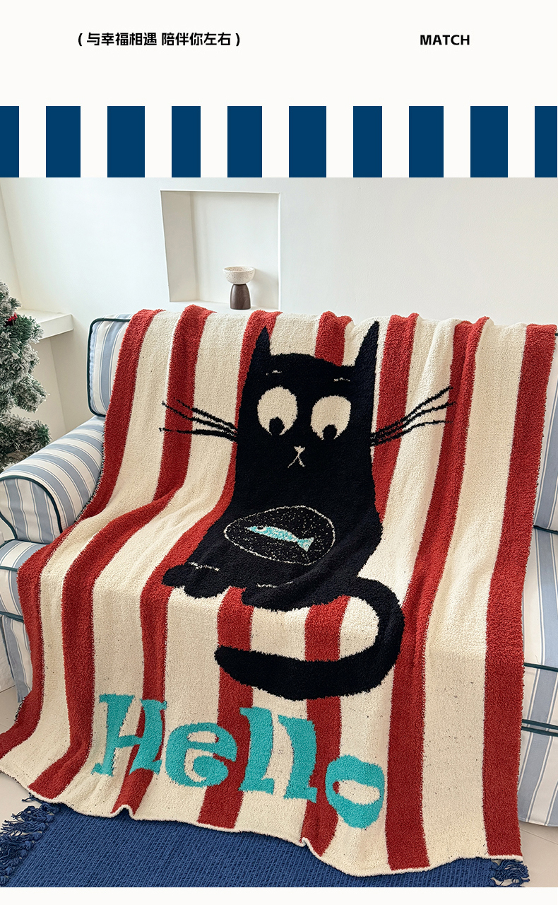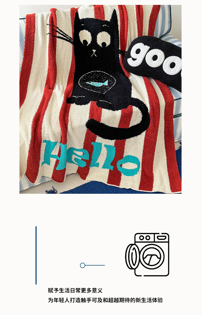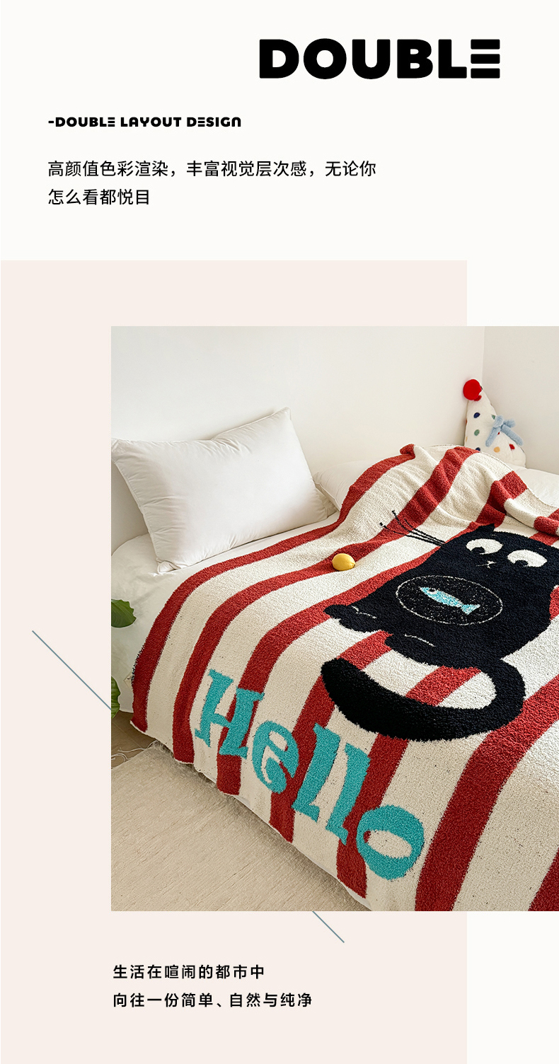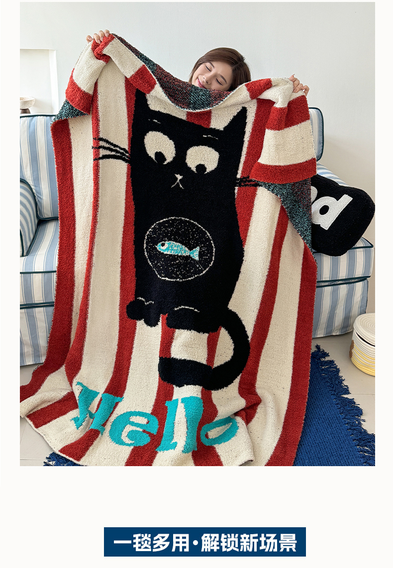 商品名称:丹本家纺 2025新款设计师原创多功能针织半边绒毛毯午休毯盖毯加厚毯子 你好猫先生