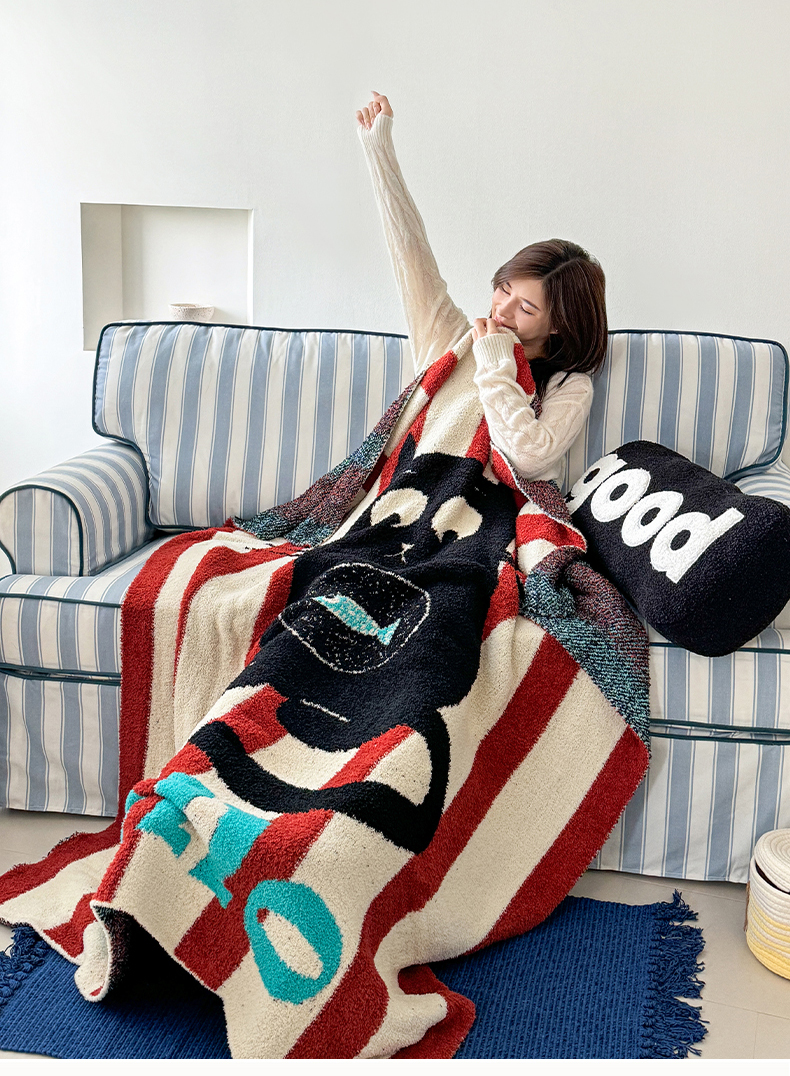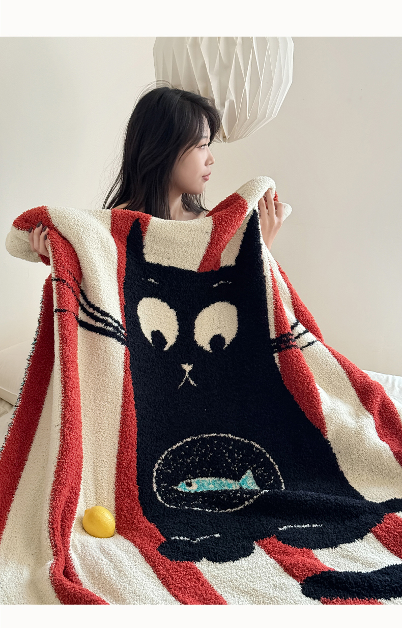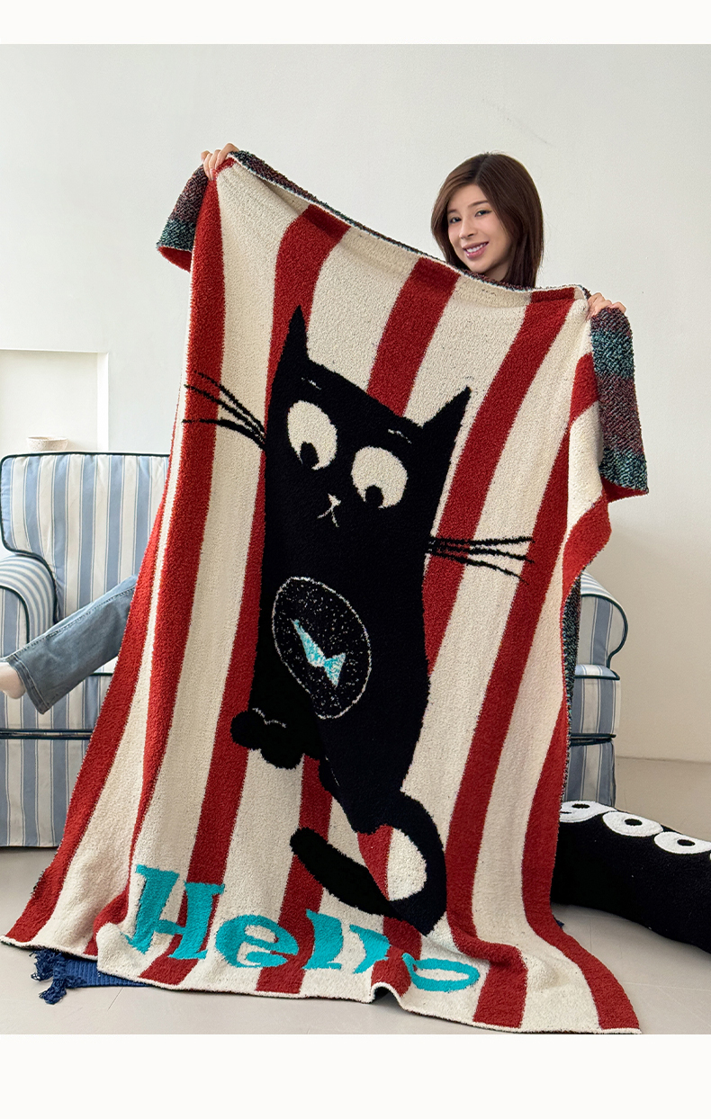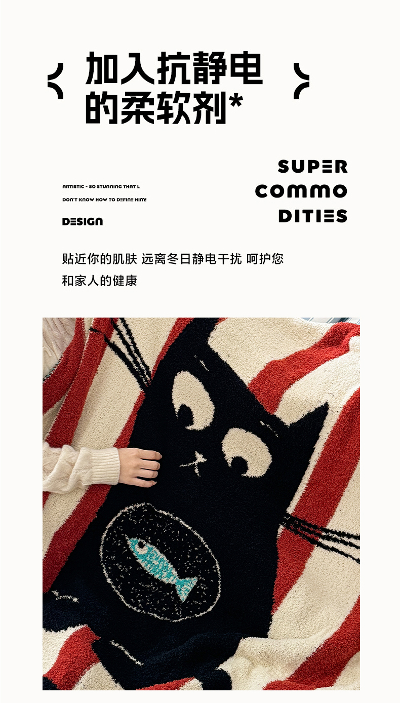 商品名称:丹本家纺 2025新款设计师原创多功能针织半边绒毛毯午休毯盖毯加厚毯子 你好猫先生