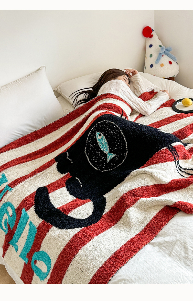 丹本家纺 2025新款设计师原创多功能针织半边绒毛毯午休毯盖毯加厚毯子 你好猫先生