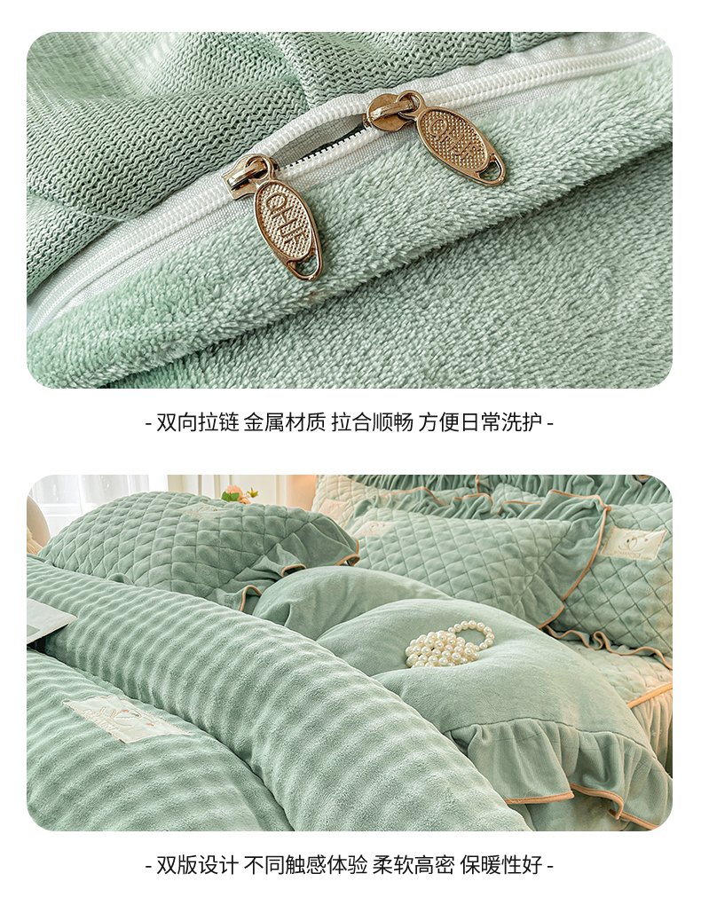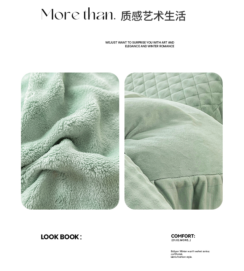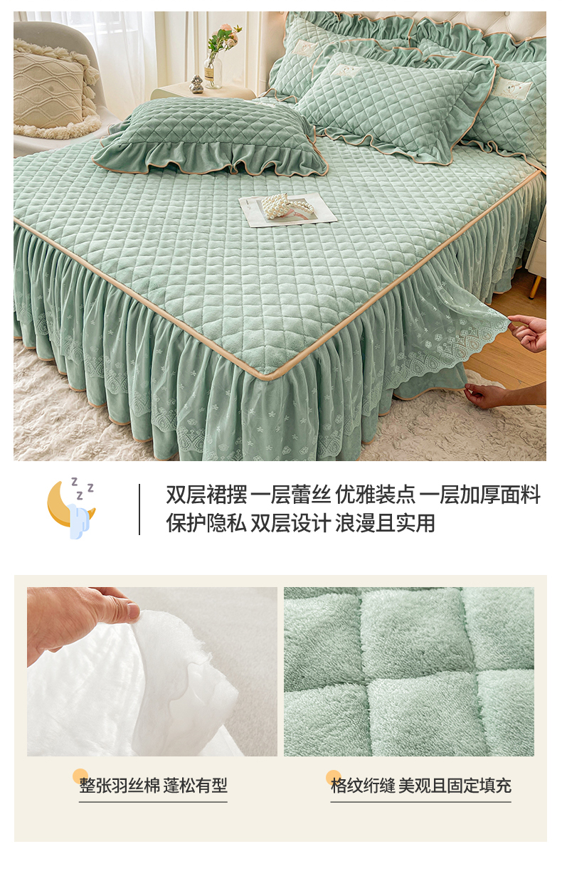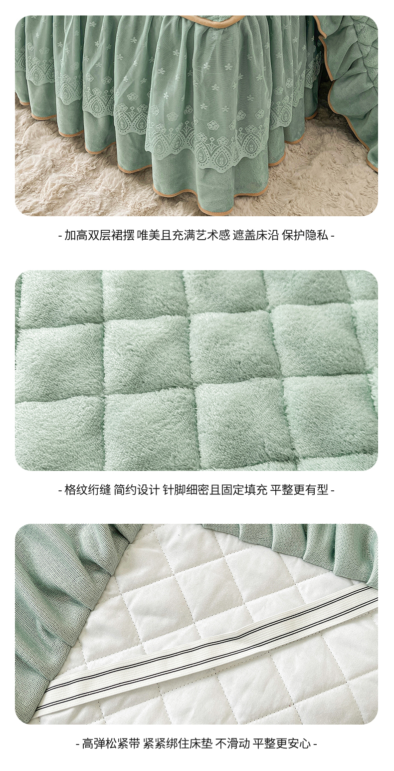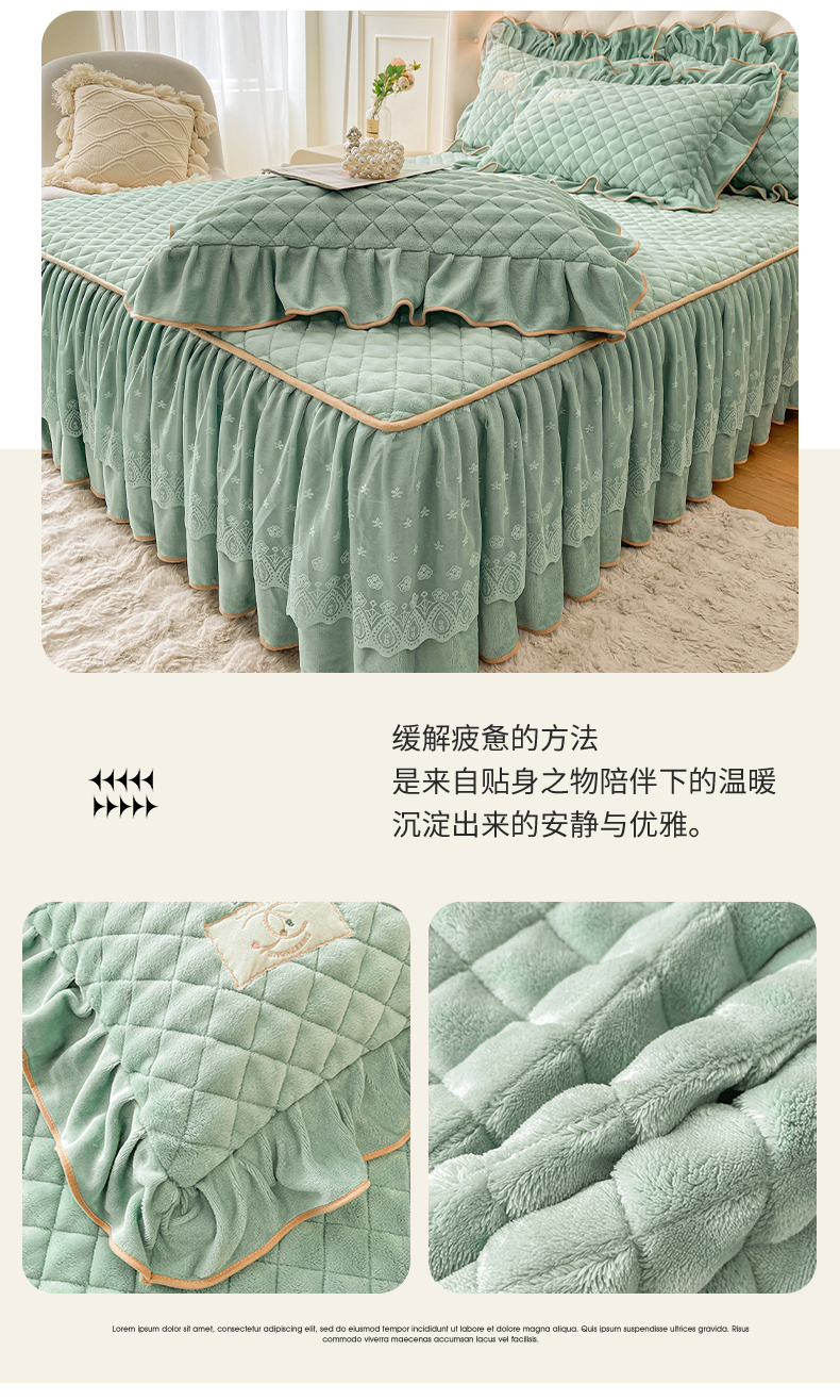 当前位置: 91家纺网 > 商品网购 > 床品套件 > 四件套 > 牛奶绒四件套 > 情恒家纺 2025新款立体泡泡牛奶绒夹棉床裙四件套系列-浅语光年 浅语光年-水绿