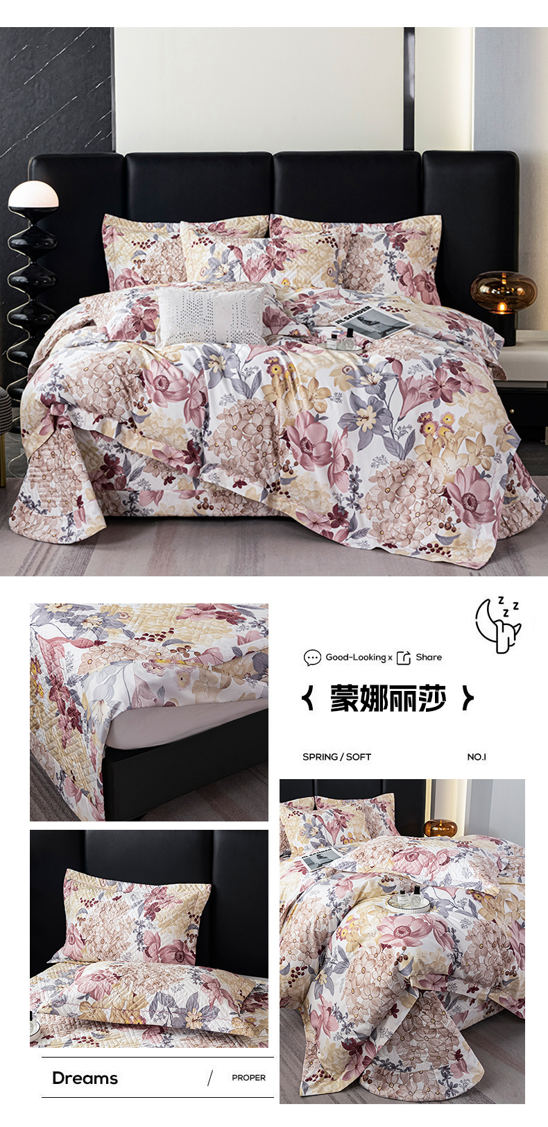 (总)OL家纺 2025新款13376全棉印花床盖三件套,伊利亚,丹尼尔-粉,伊香,蒙娜丽莎,丽斐,盛唐牡丹,豹纹-咖,丹尼尔-兰,本草纲目-黄,波西米亚,春晓粉,富丽堂皇,兰博斯卡,魅资,欧风丽影-橙黄,欧风丽影-豆沙,欧风丽影-黄,欧风丽影-灰,欧式风情,普罗旺斯,时光映画,伊丽莎白,蝶影香浓,来梦,落木静-红,莫奈,舜华,桃枝夭夭-粉,桃枝夭夭-绿,月色,逐梦,春晓-兰,花溪寻梦,麦田印画