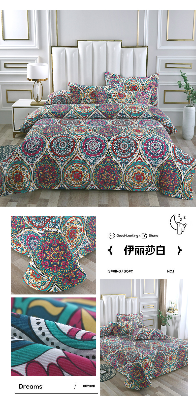 OL家纺 2025新款13376全棉印花床盖四件套 波西米亚