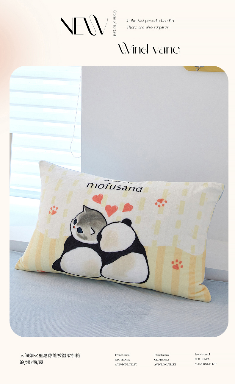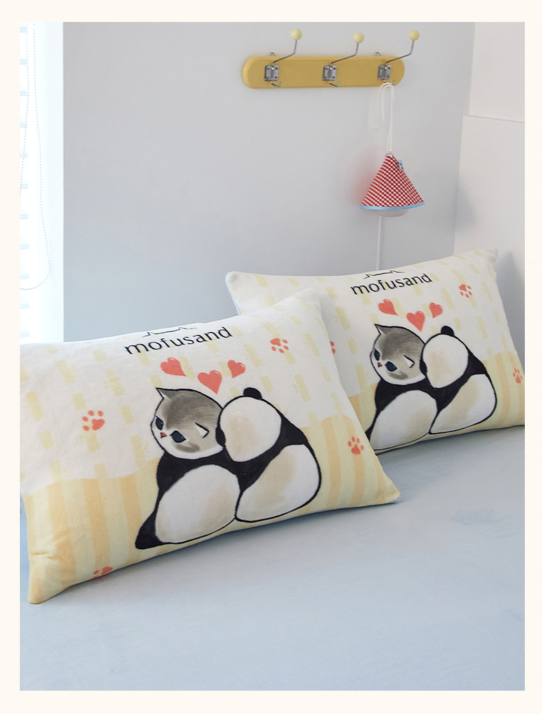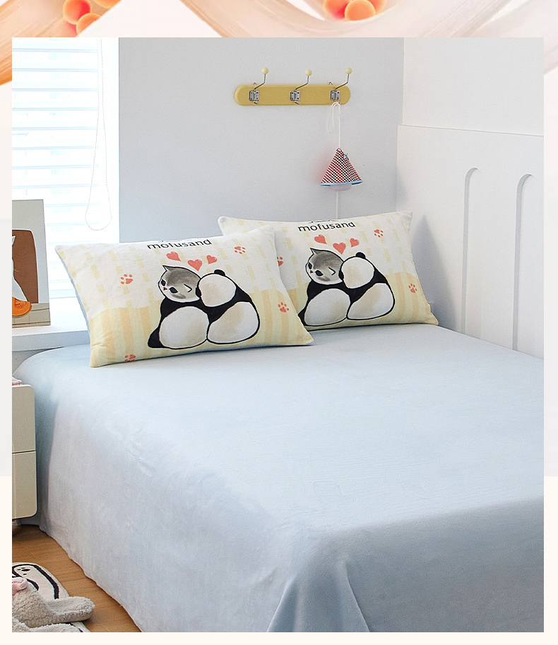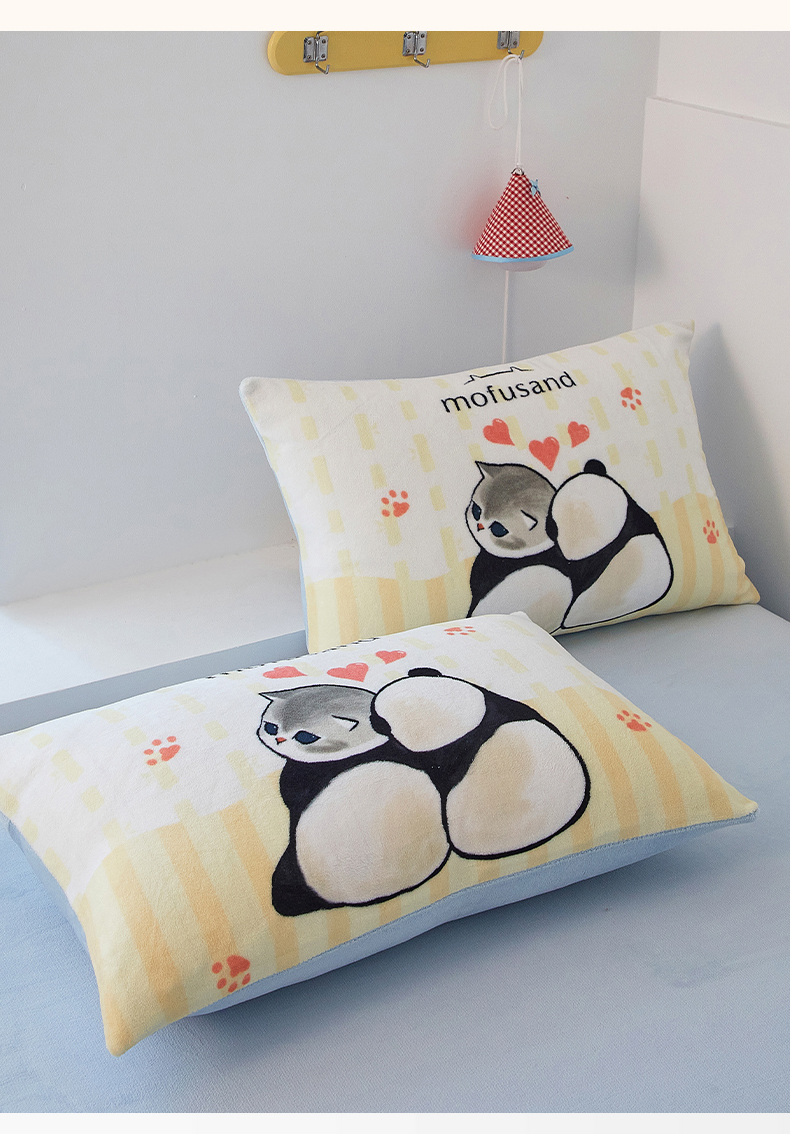 蘭菲家纺 2025新款高克重牛奶绒正版鲨鱼猫系列单品枕套 珊迪熊-猫福