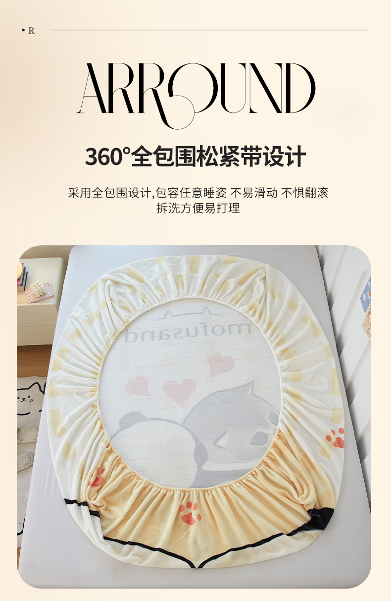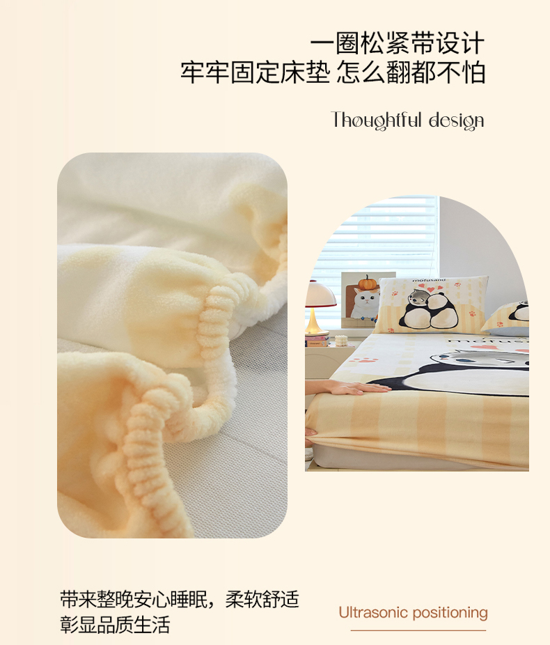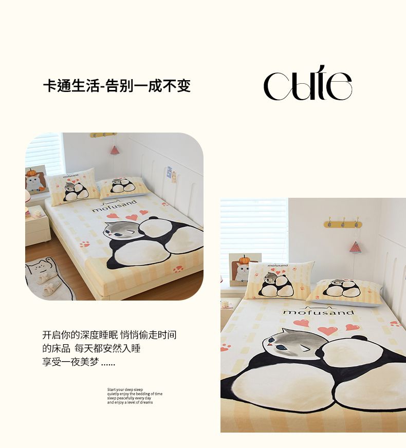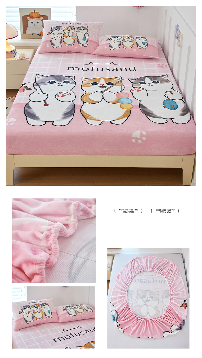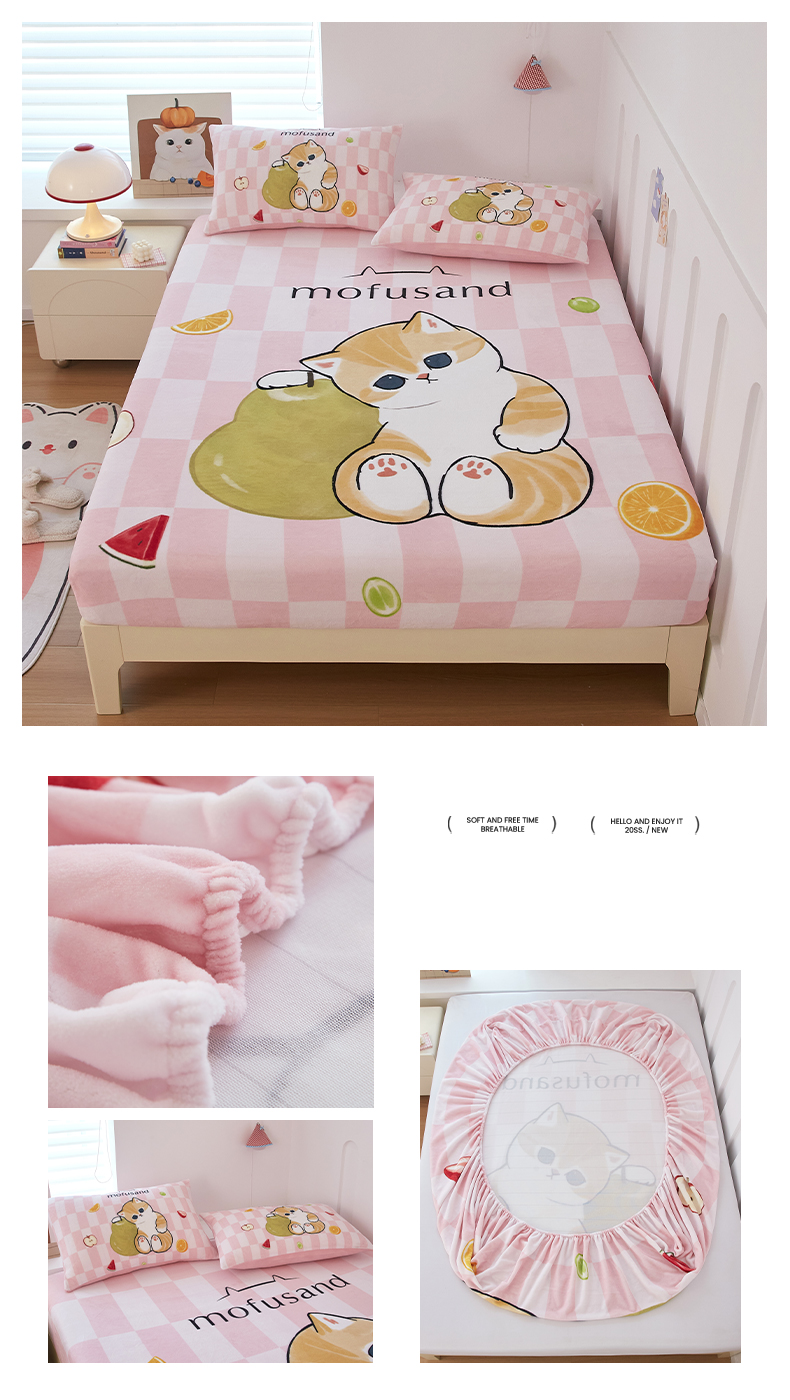蘭菲家纺 2025新款高克重牛奶绒正版鲨鱼猫系列单品床笠 珊迪熊-猫福