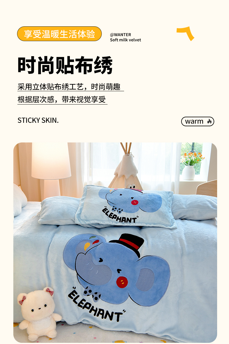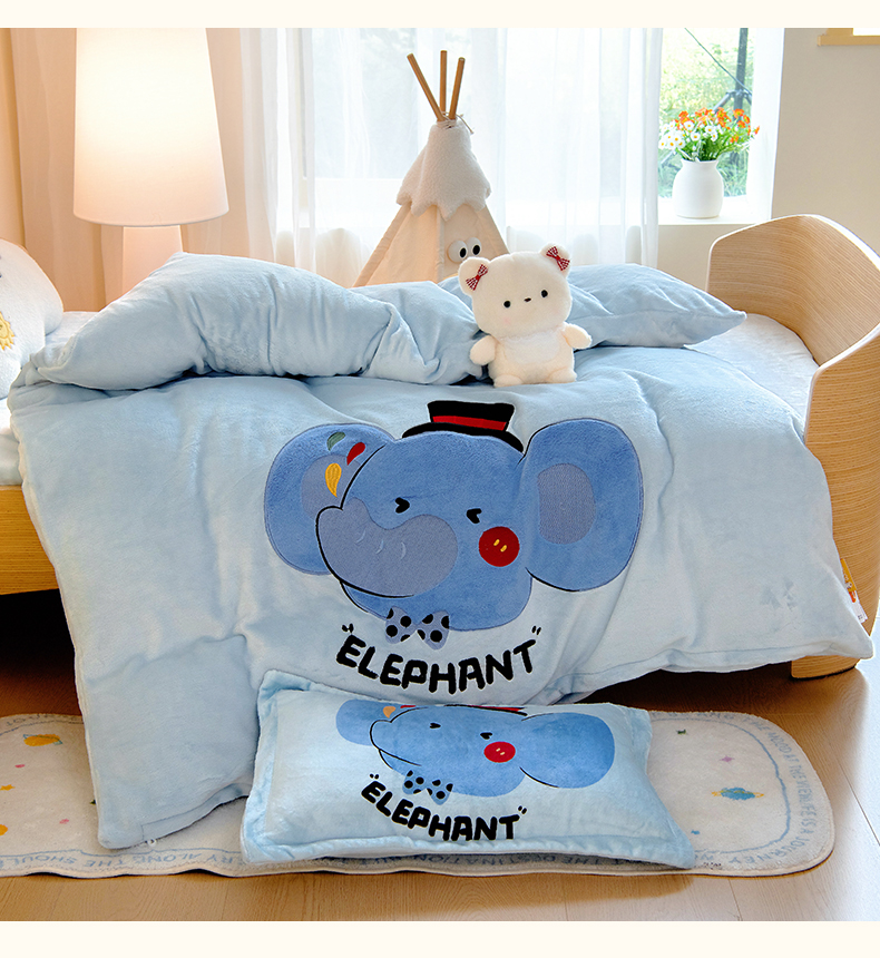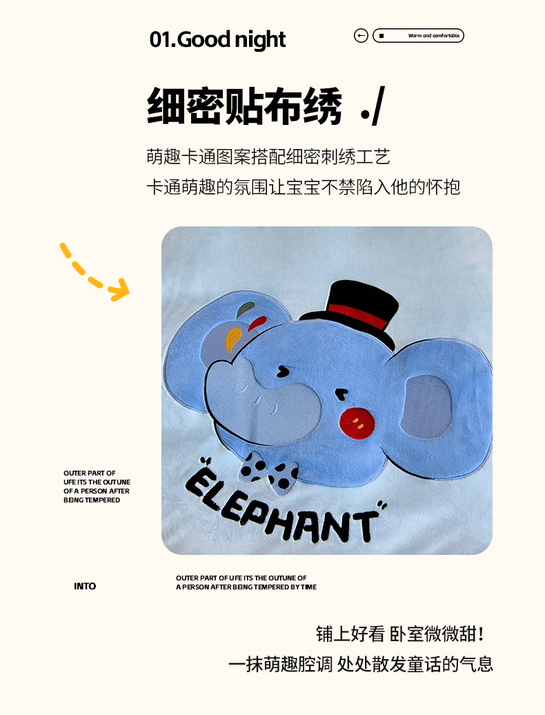 • 91家纺网 家纺一手货源 找家纺 梵赫 2025新款秋冬牛奶绒原创贴布绣儿童幼儿园被套被芯盖毯 大象先生