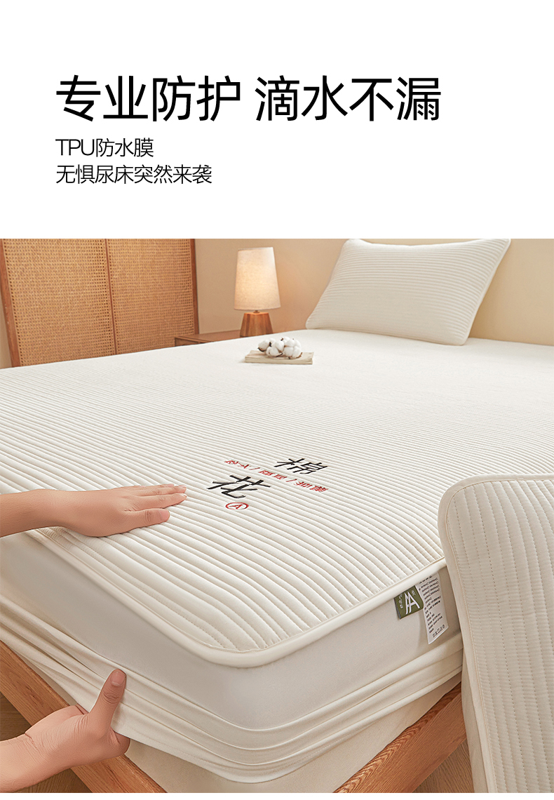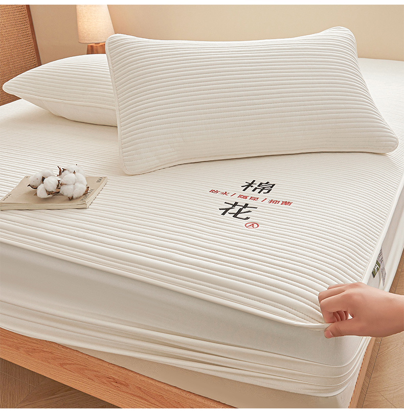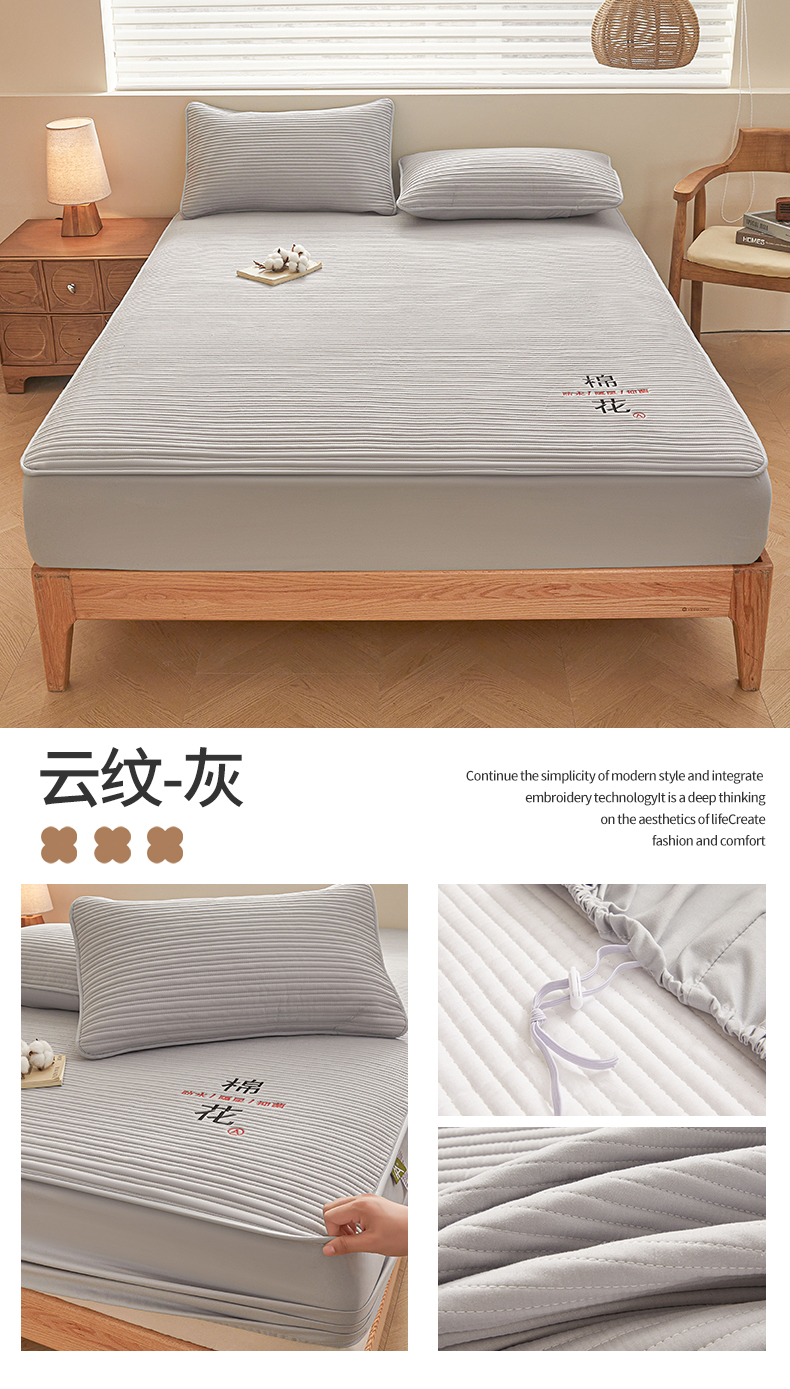 居眠 2025新款云纹刺绣棉花防水床笠 床笠单件-云纹 云纹-粉