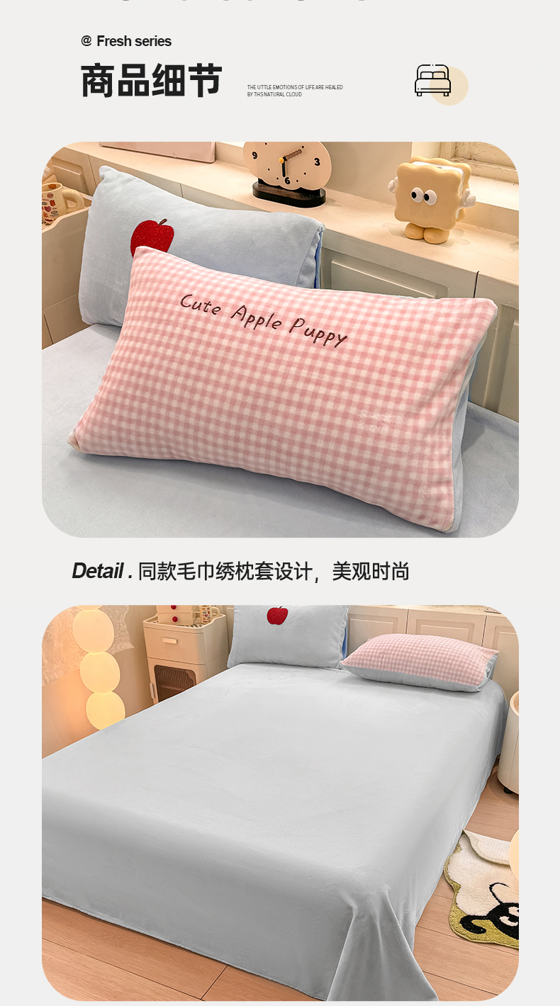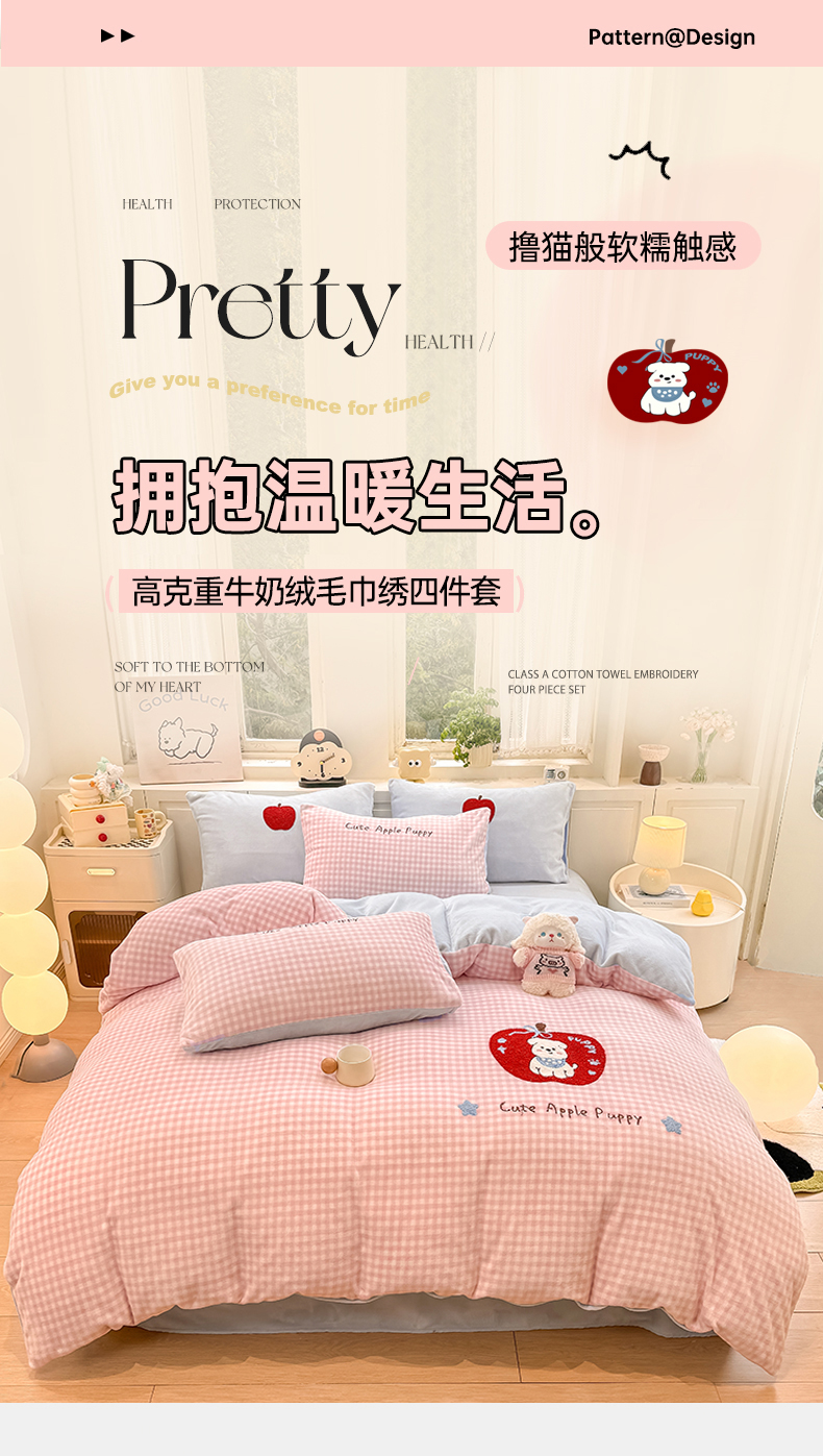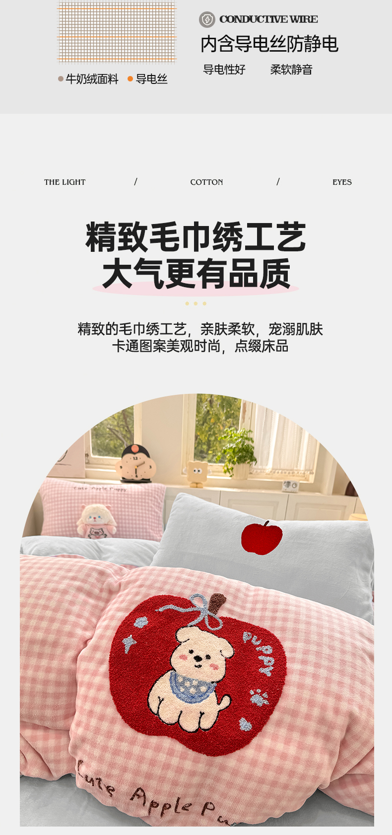 当前位置: 91家纺网 > 商品网购 > 床品套件 > 四件套 > 牛奶绒四件套 > 灰鲸 2025新款牛奶绒毛巾绣苹果狗、蛋糕喵系列四件套 苹果狗-粉格+繁星蓝