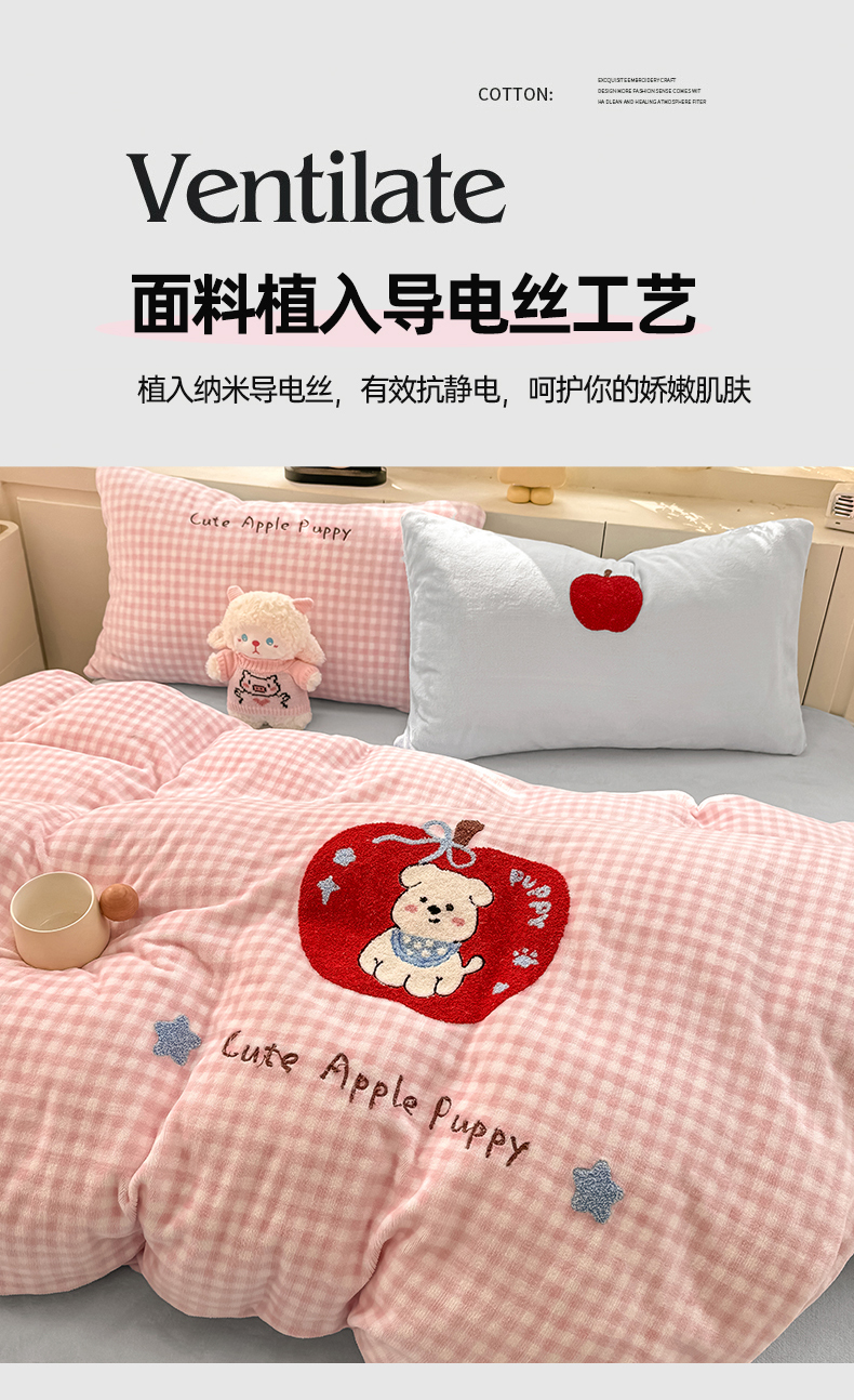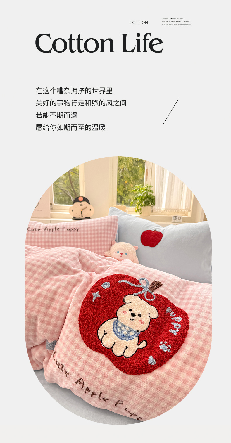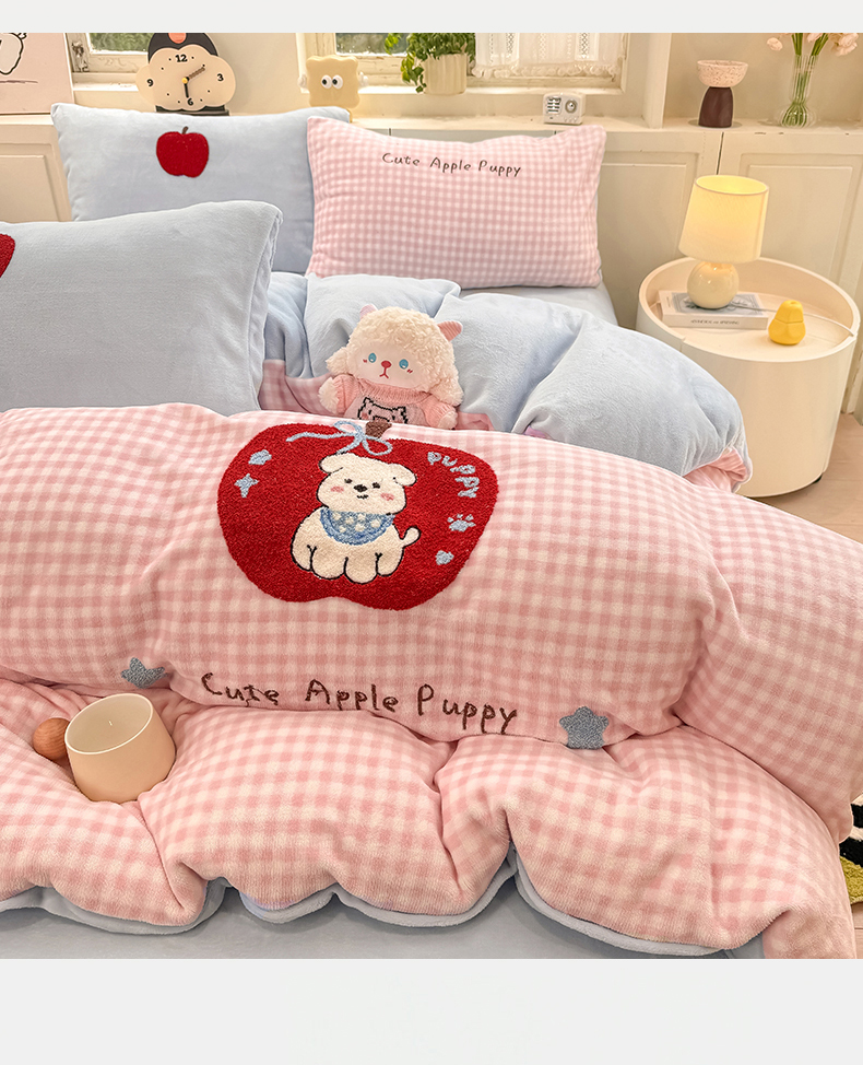 当前位置: 91家纺网 > 商品网购 > 床品套件 > 四件套 > 牛奶绒四件套 > 灰鲸 2025新款牛奶绒毛巾绣苹果狗、蛋糕喵系列四件套 苹果狗-粉格+繁星蓝