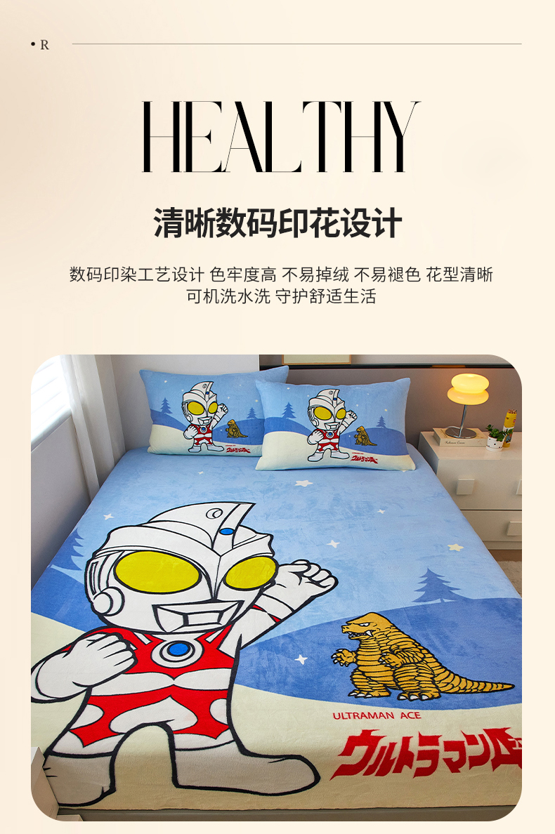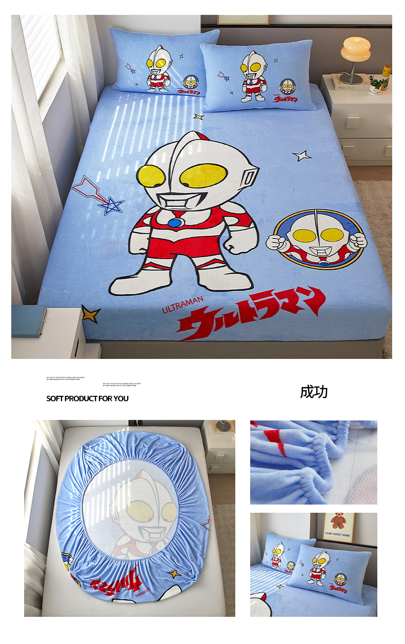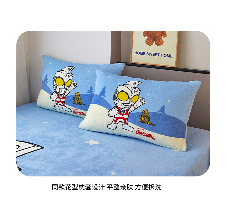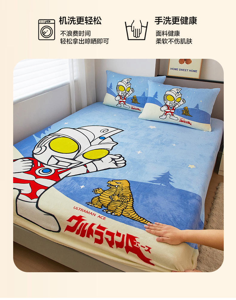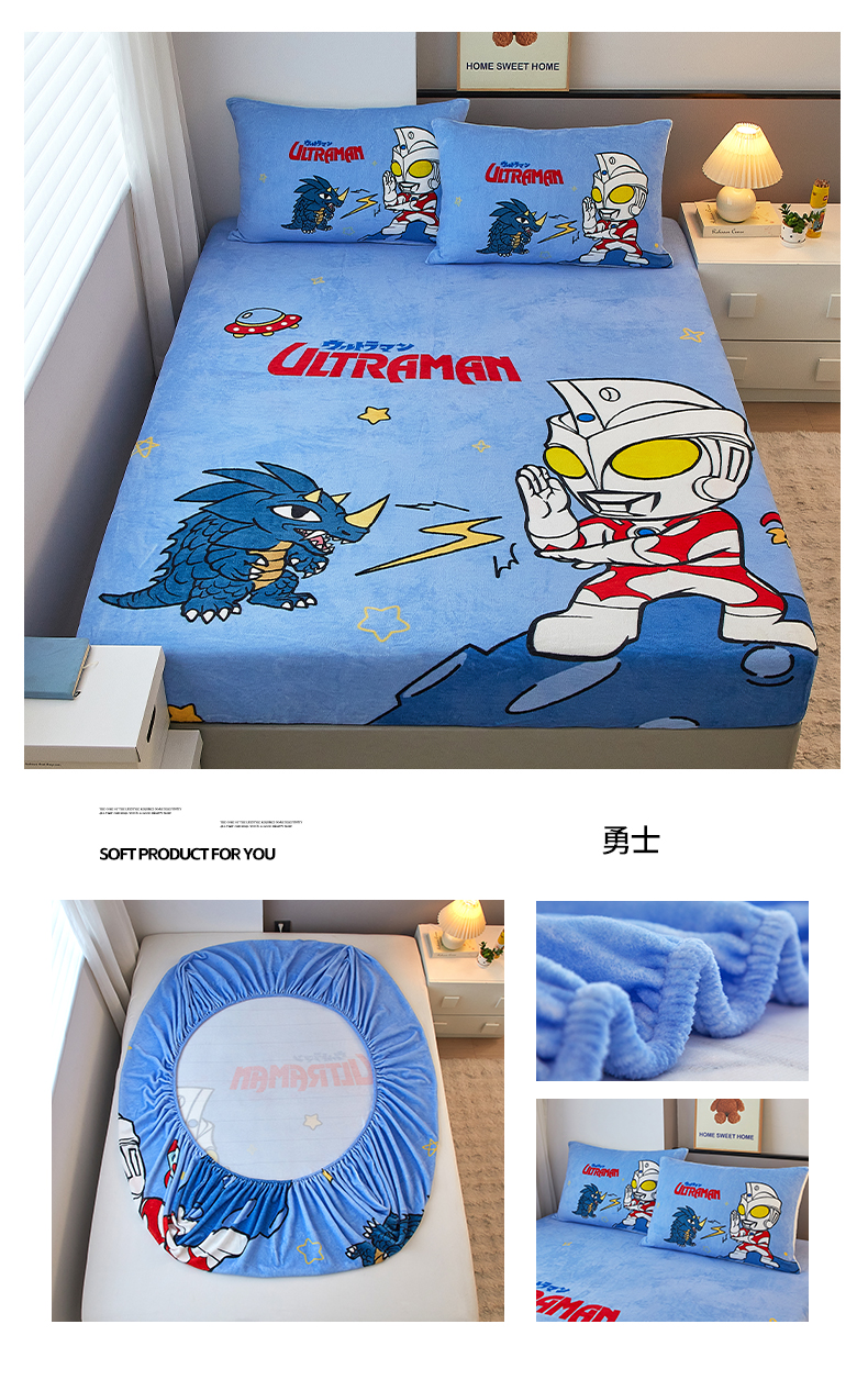 商品名称:蘭菲家纺 2025新款牛奶绒奥特曼系列单品床笠 归来