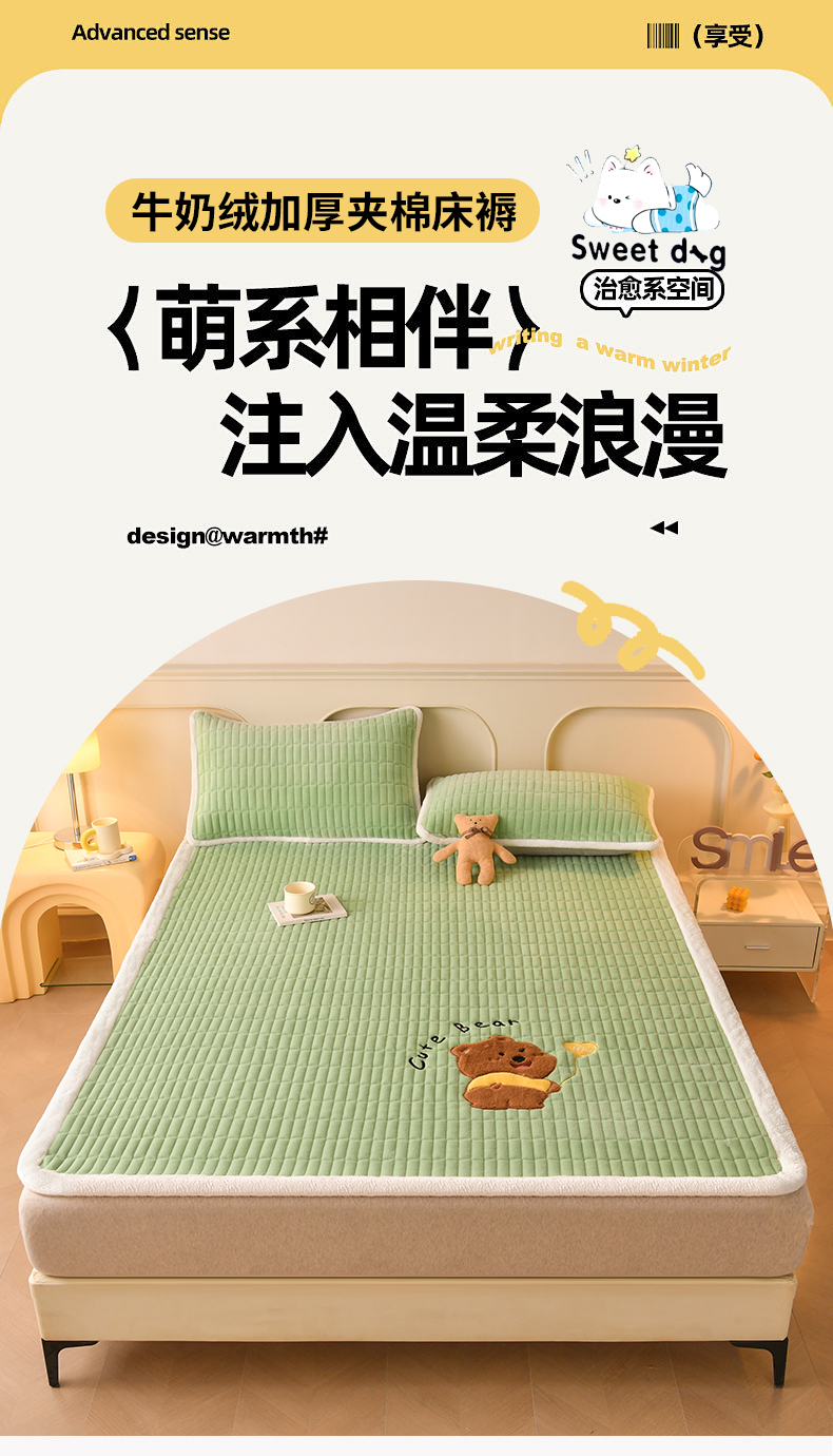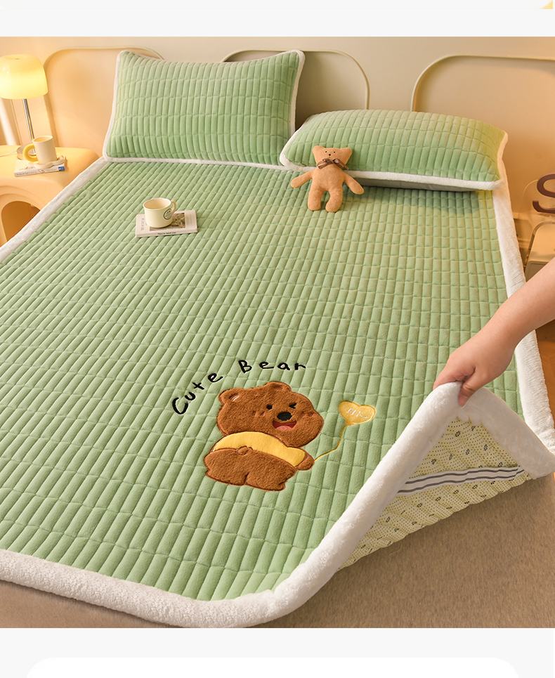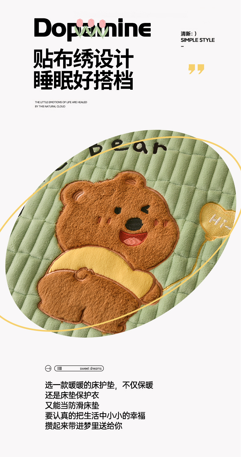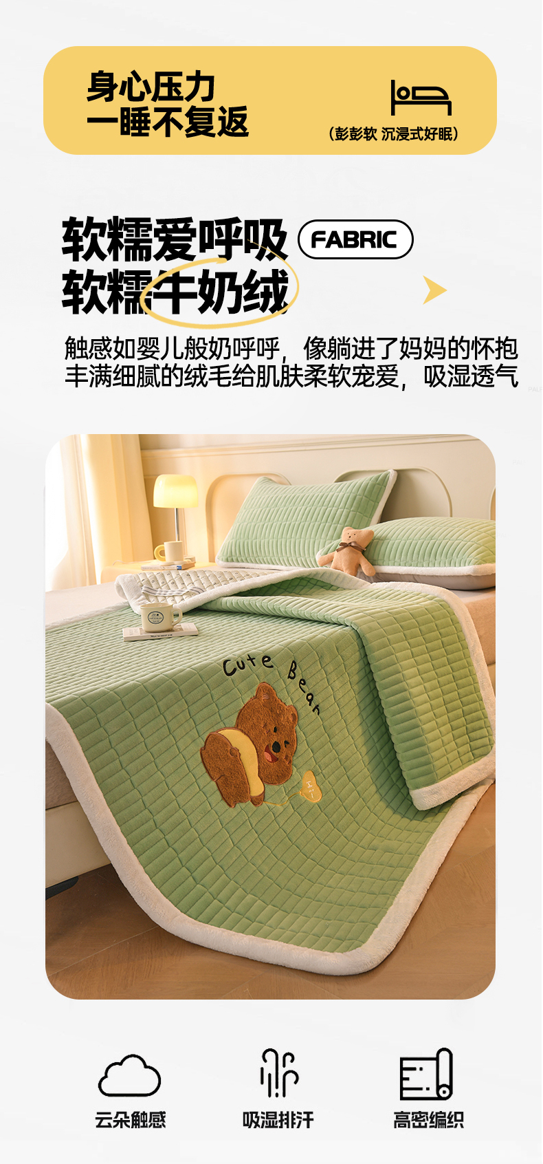 当前位置: 91家纺网 > 商品网购 > 床垫/床褥 > 普通床垫 > 悠米悠家 2025新款牛奶绒夹棉加厚床褥-小狗 小熊系列 小熊-绿色