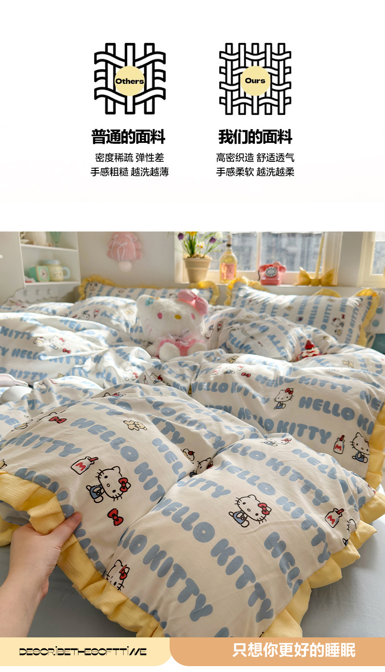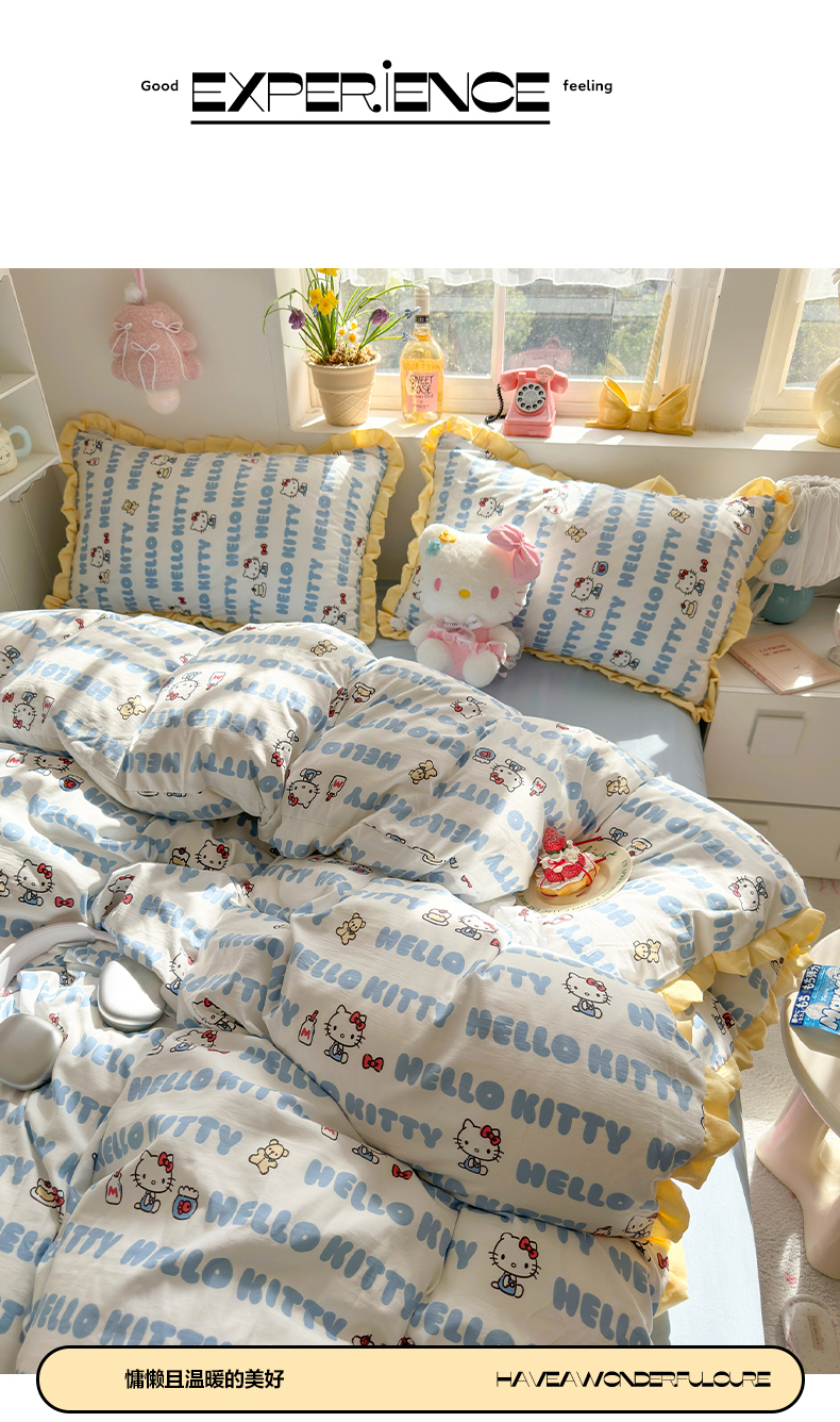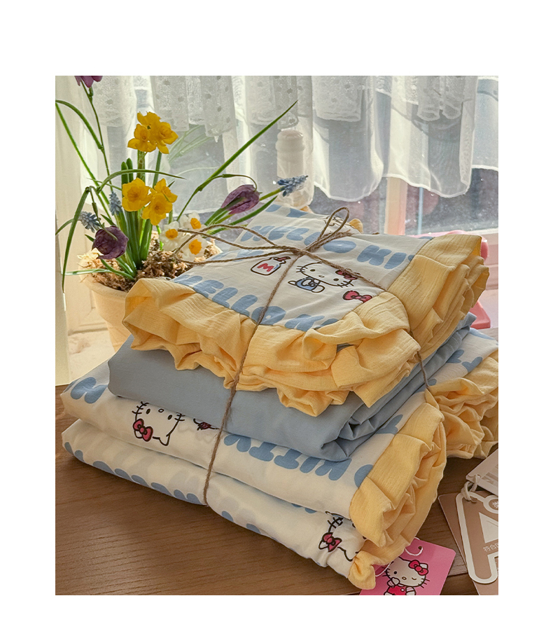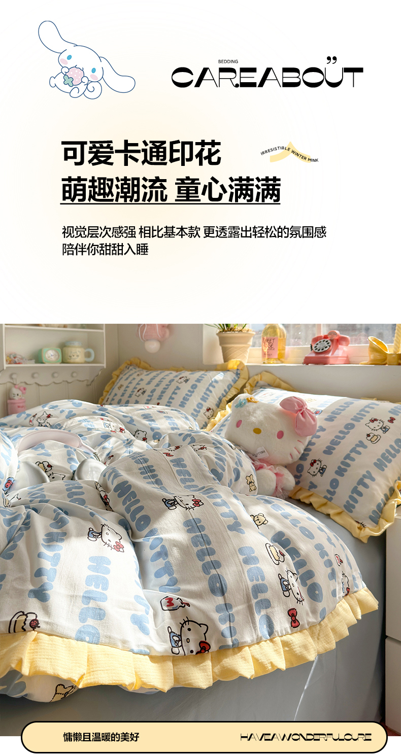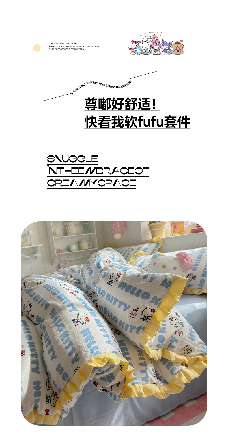 当前位置: 91家纺网 > 商品网购 > 床品套件 > 四件套 > 双层纱四件套 > 星禾优选 2025新款三丽鸥加厚水洗双层纱花边款四件套 kt酪-蓝
