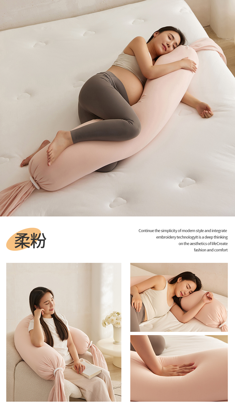 头等舱 2025新款全棉氨纶针织A类孕妇 护腰 侧睡 靠垫 安抚枕 抱抱 夹腿多功能枕(模特图)配包装 柔粉